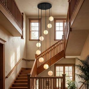 The Alabaster Cluster Balls Chandelier is a modern lighting masterpiece designed to infuse your space with a divine and elegant ambiance. With its spectacular visual proportions, this chandelier becomes a central element that redefines interior aesthetics. The multi-tiered, cascading structure perfectly fills the visual void in tall spaces, providing comprehensive, multi-layered light and shadow coverage. This clustered design is ideal for spiral staircases, high-ceilinged living rooms, hotel lobbies, or large restaurants, adding a layer of timeless modern luxury to the interior environment.