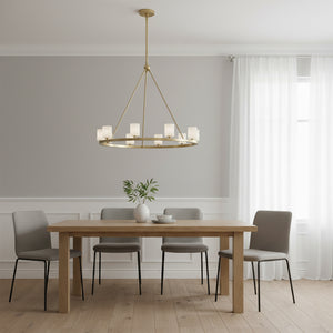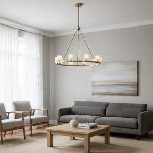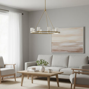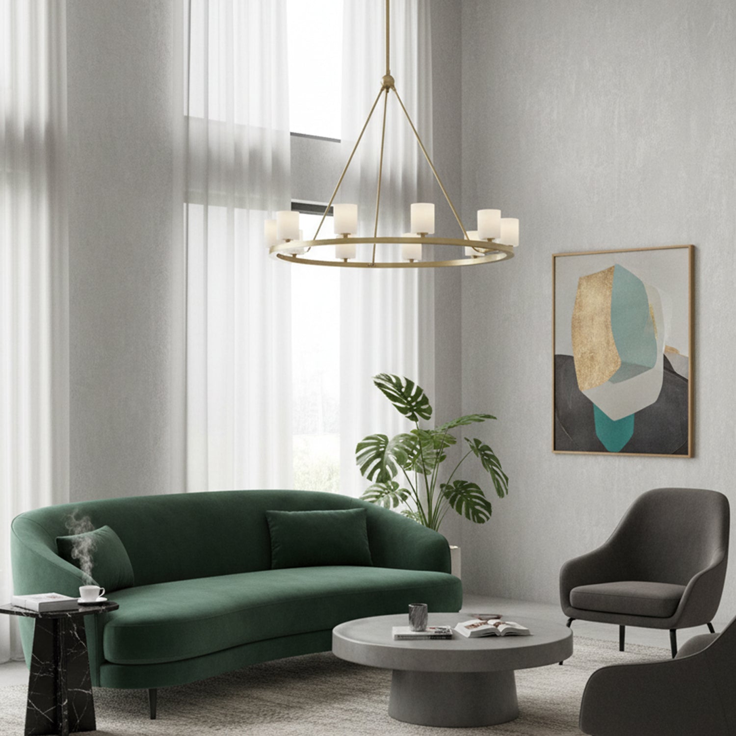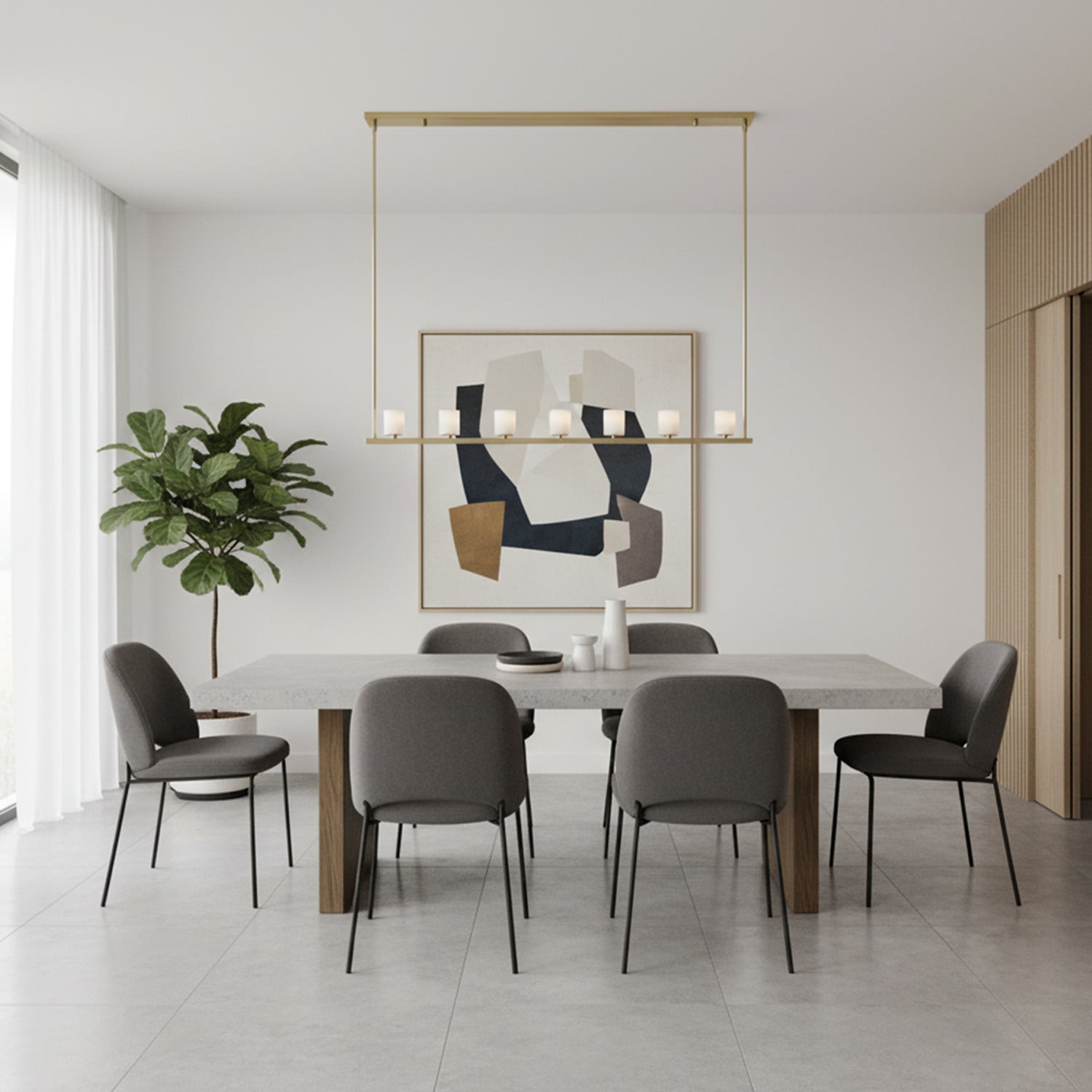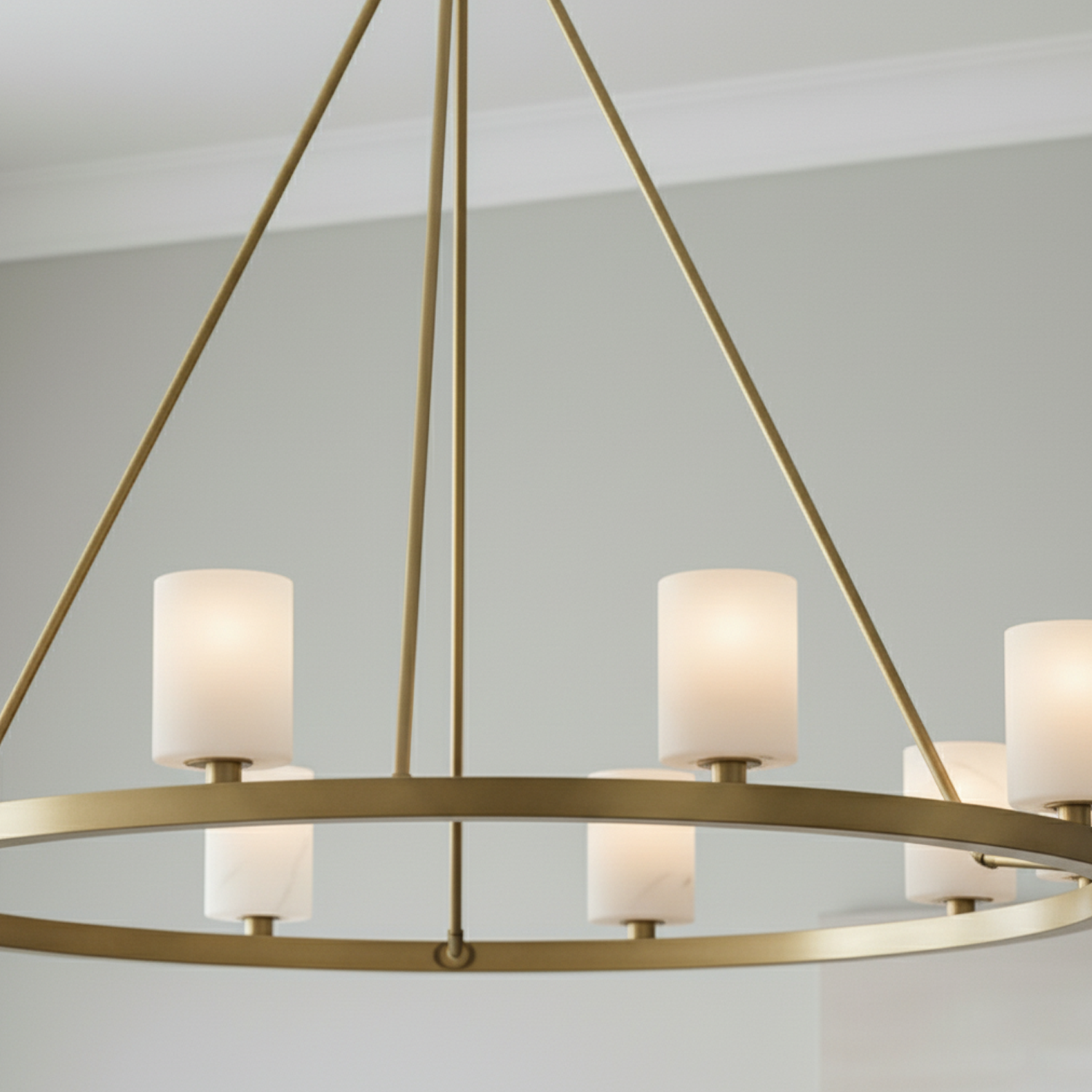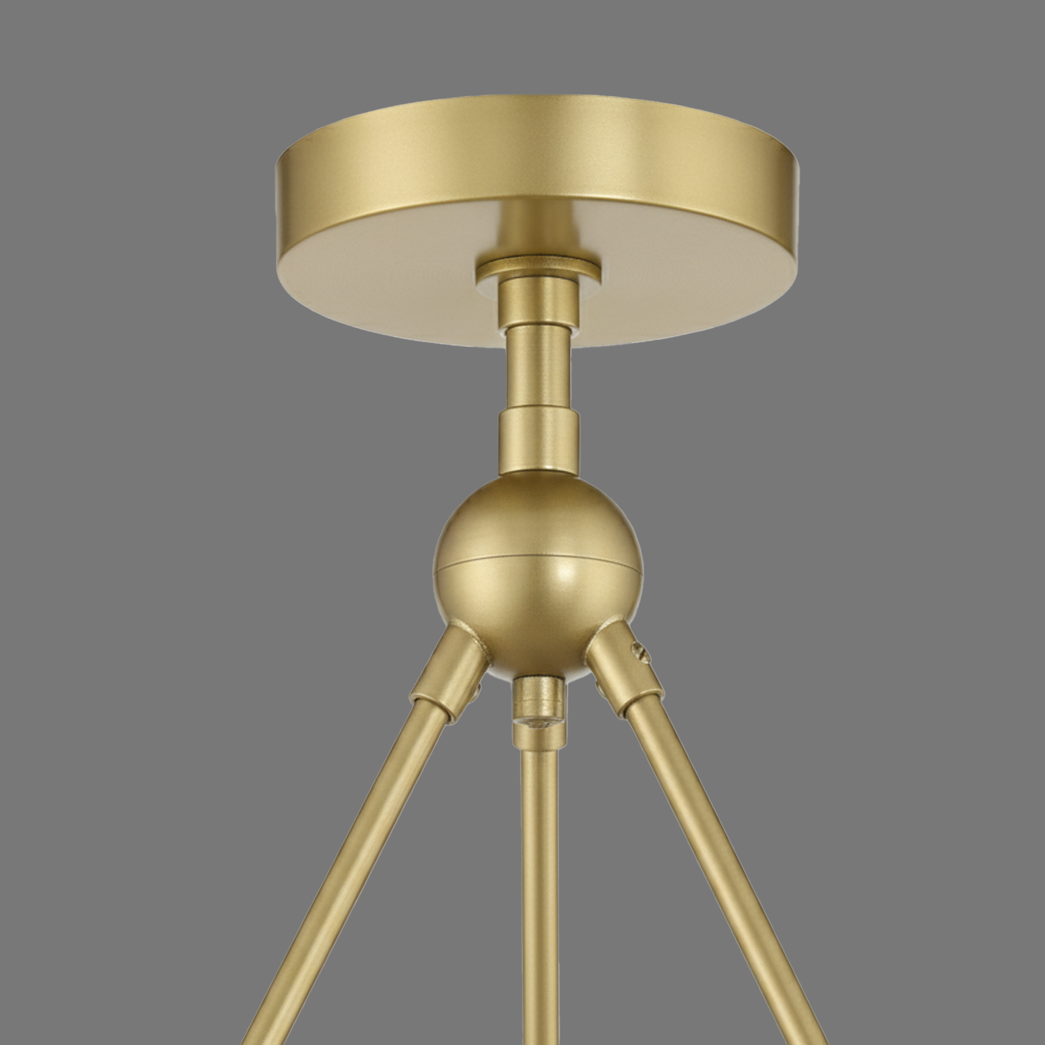 The exquisite craftsmanship of the chandelier's main body highlights its smooth brass frame, exuding modern elegance and durability.