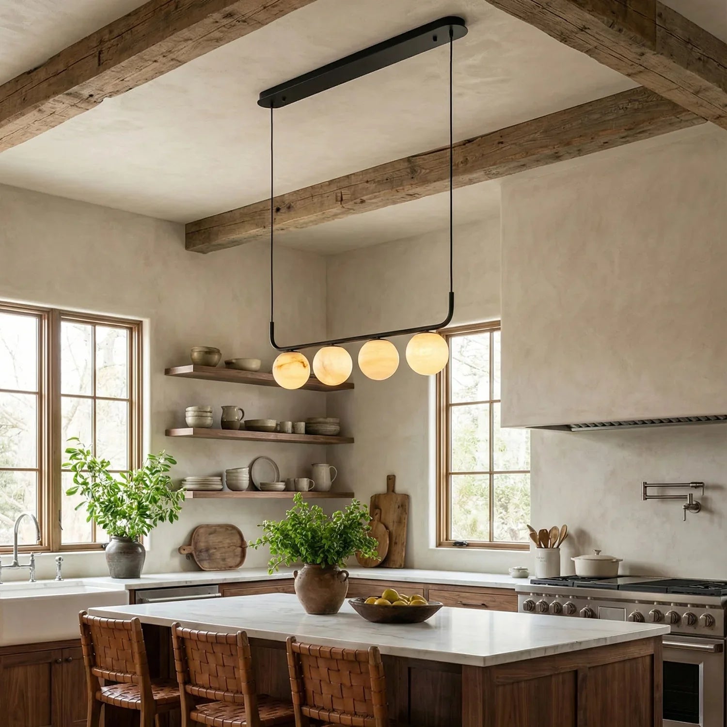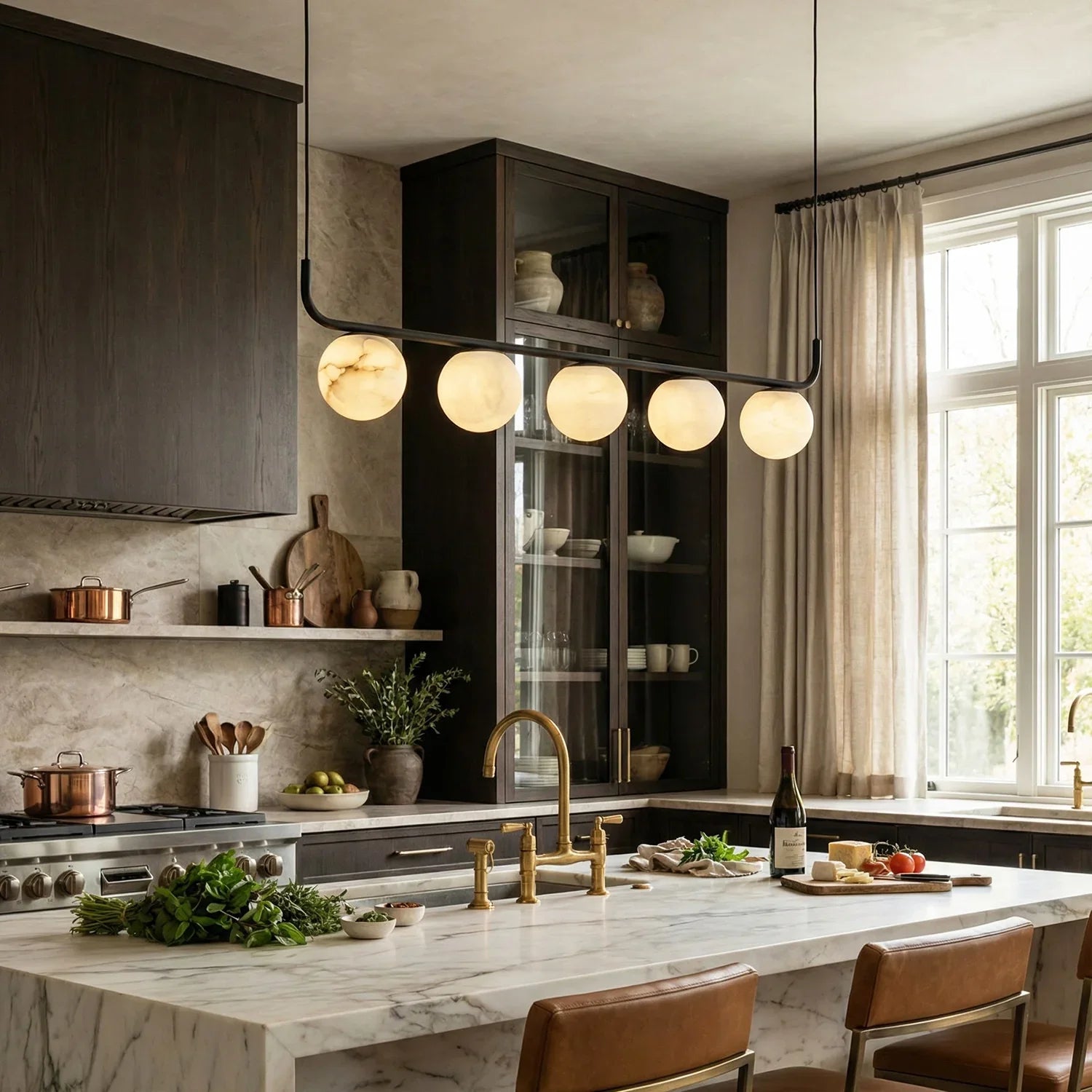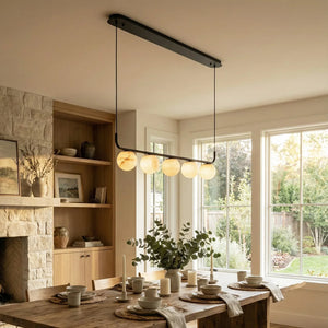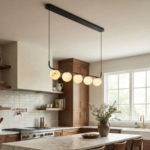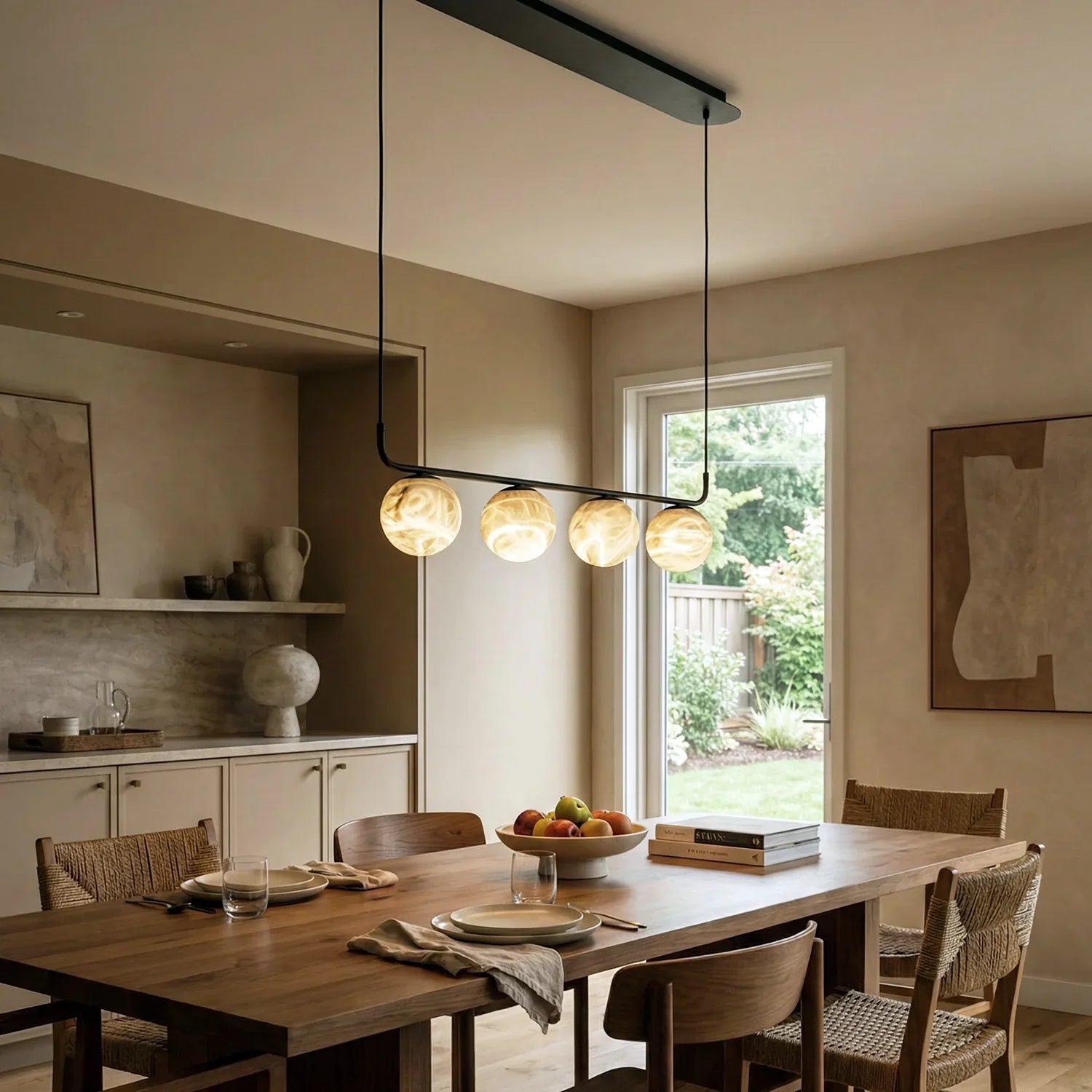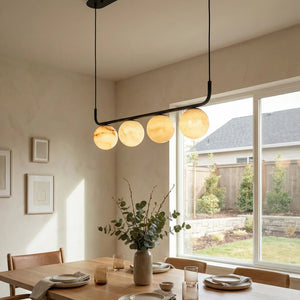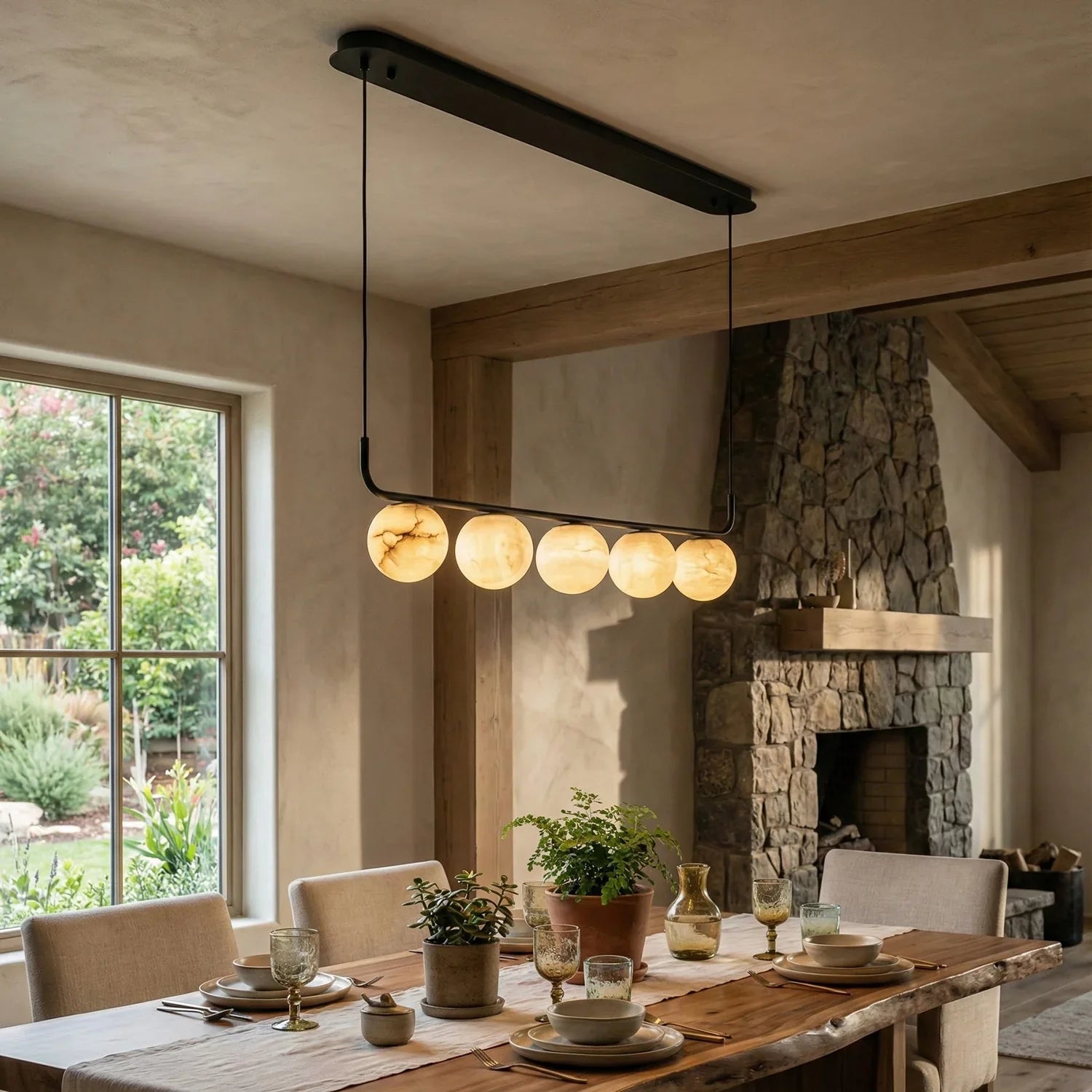 This Long Strip Alabaster Spherical Chandelier is an elegant dialogue between material and geometric proportions. It perfectly blends vintage charm with modern minimalism, instantly transforming an ordinary room into a sophisticated space filled with refined taste and timeless style. Whether suspended above a long dining table, a kitchen island, or used as sequential lighting in a hallway, its extraordinary form makes it a captivating focal point.