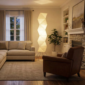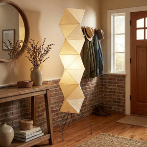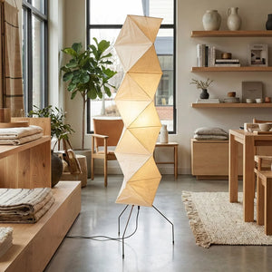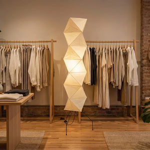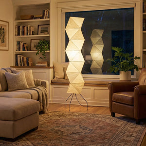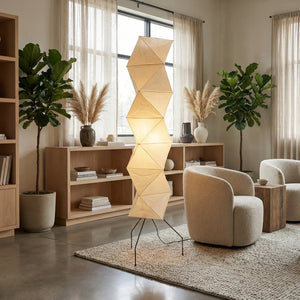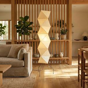 The Akari Rhombus Origami UF4-L8 Floor Lamp is a magnificent masterpiece that embodies the elegance of light and shadow and the philosophy of "weightlessness." It seamlessly blends with modern, Scandinavian, or Zen-inspired styles. Its striking, tall design makes it a visual centerpiece in any room, especially suitable for placement next to a sofa or in an empty corner. Immerse yourself in the aesthetics and practicality of this unique floor lamp; it is both a lighting fixture and a sculptural work of art.