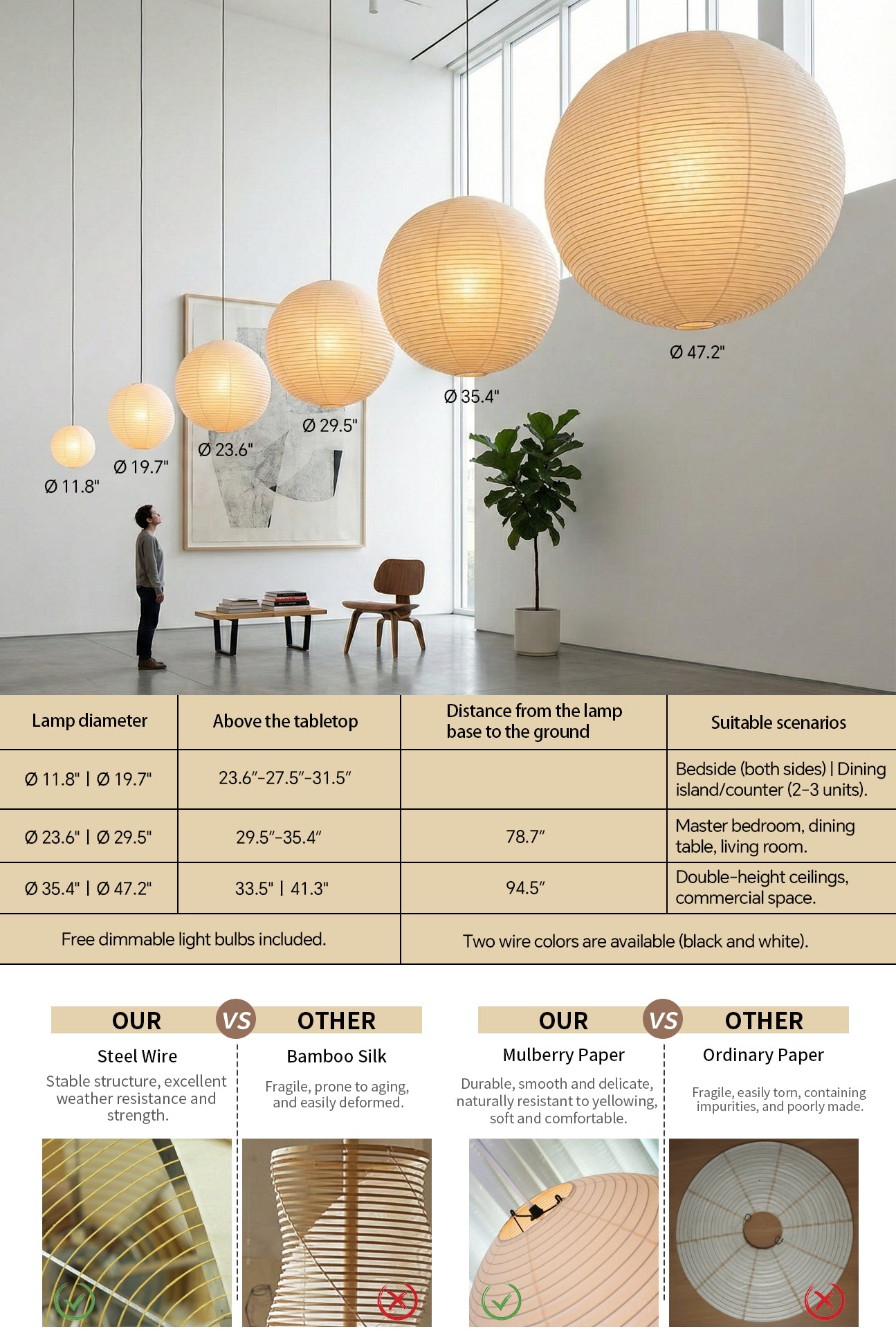 ✅ Free dimmable light bulbs included.