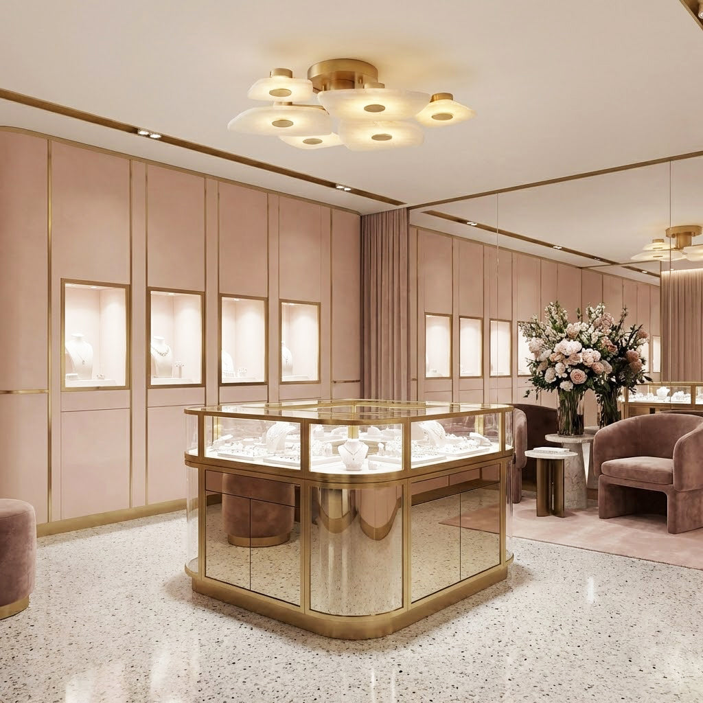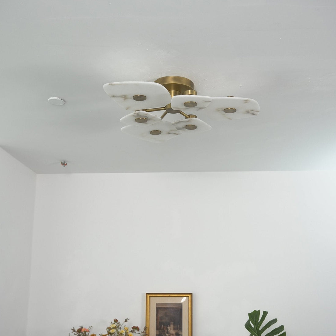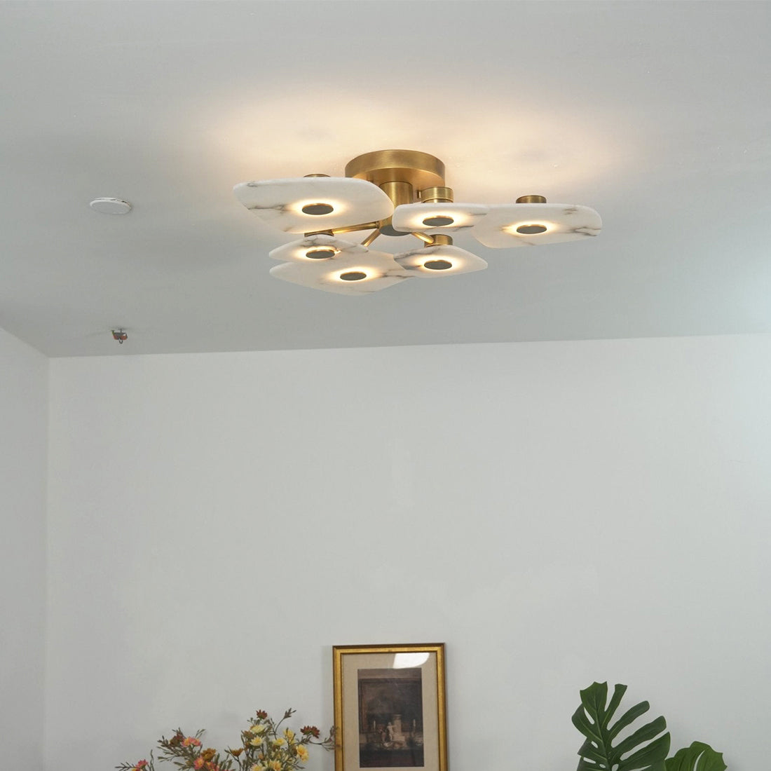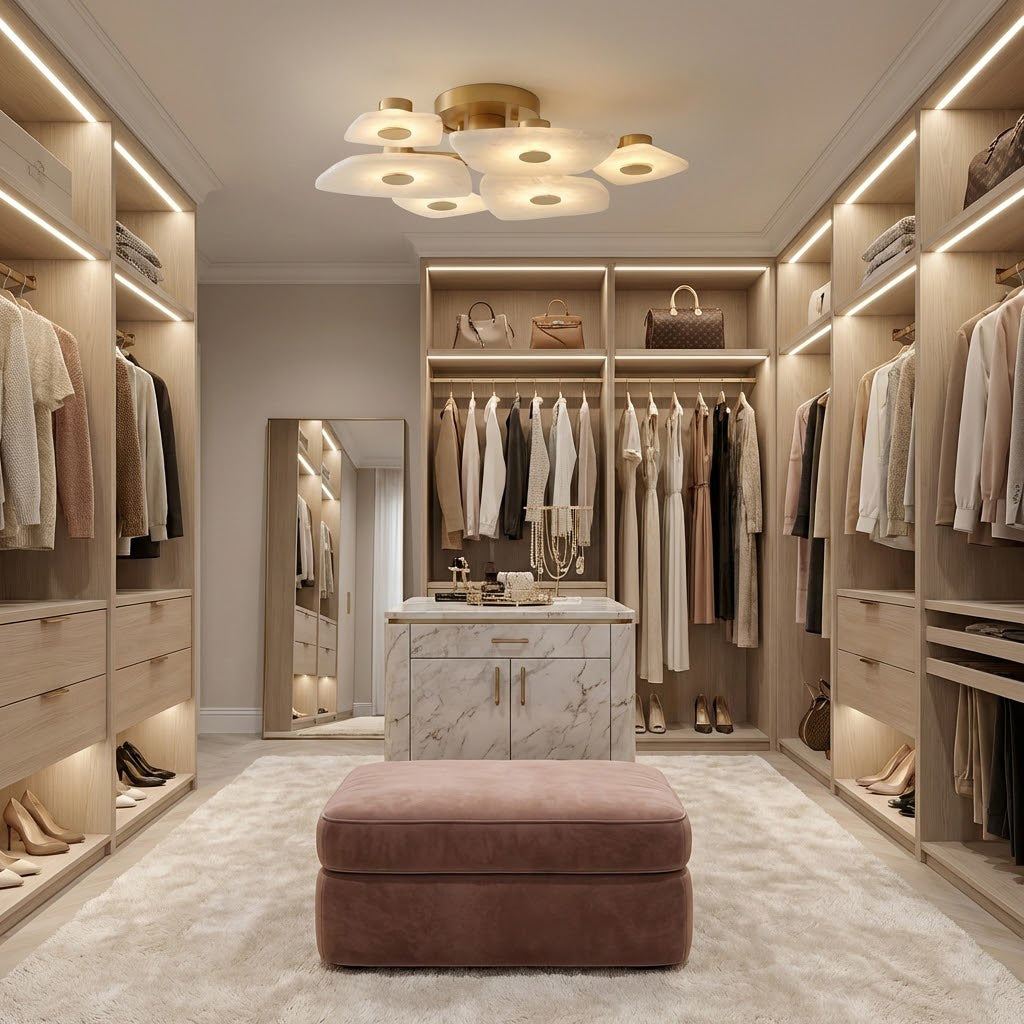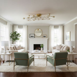 The Alabaster Petal Ceiling Light is shaped by overlapping, petal-inspired alabaster forms that create a gentle, sculptural profile close to the ceiling. Its balanced proportions make it ideal for bedrooms, corridors, and living areas where a refined yet unobtrusive statement is desired.