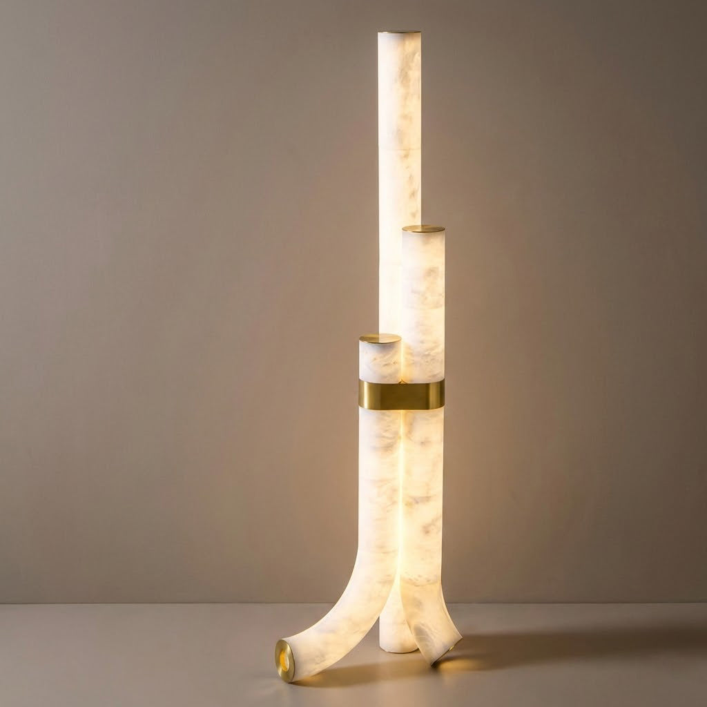 The Alabaster Tube Floor Lamp is defined by a slim, vertical silhouette that introduces a calm architectural accent to interior spaces. Its understated form makes it well suited for placement beside sofas, lounge chairs, or in quiet corners, where it adds presence without disrupting the surrounding layout.