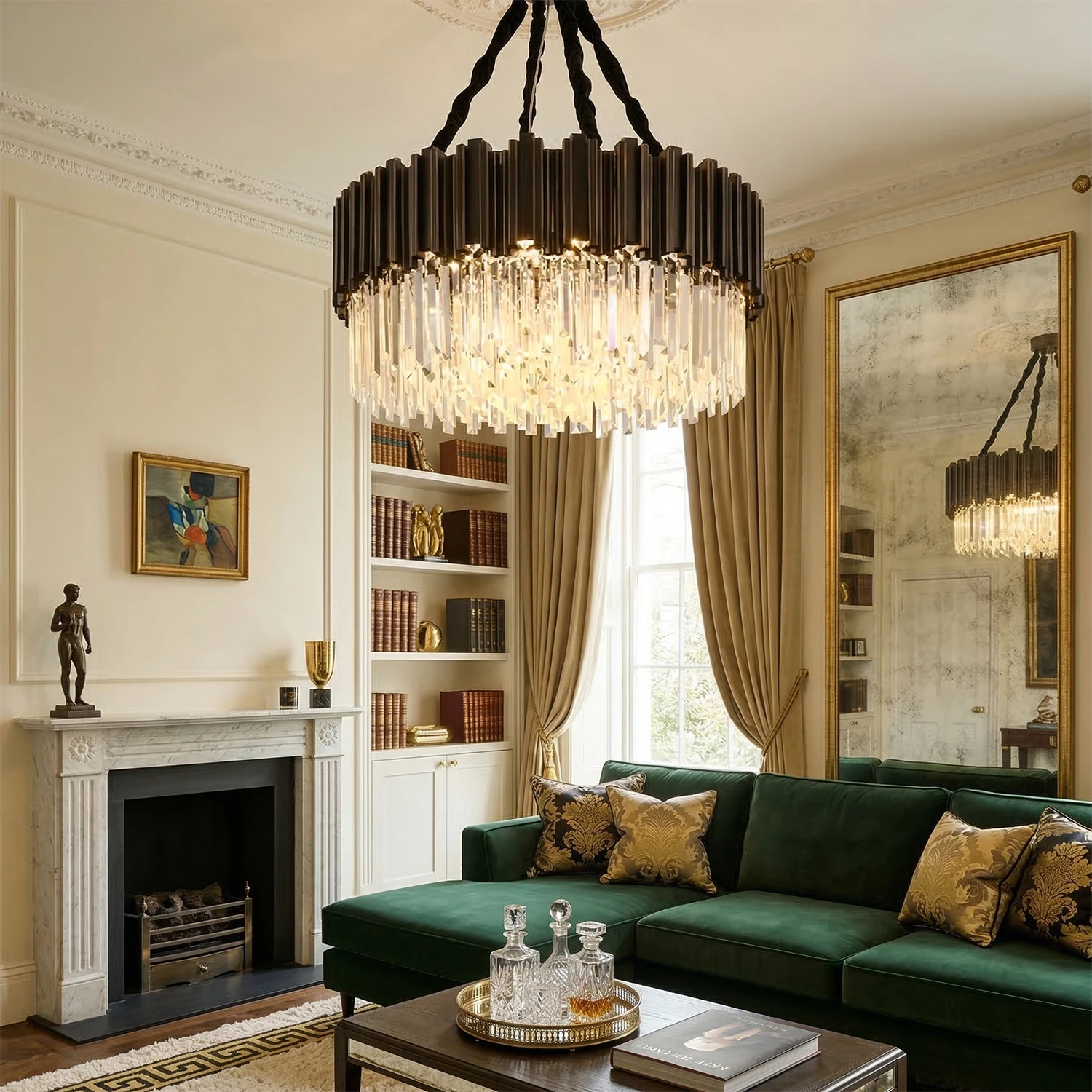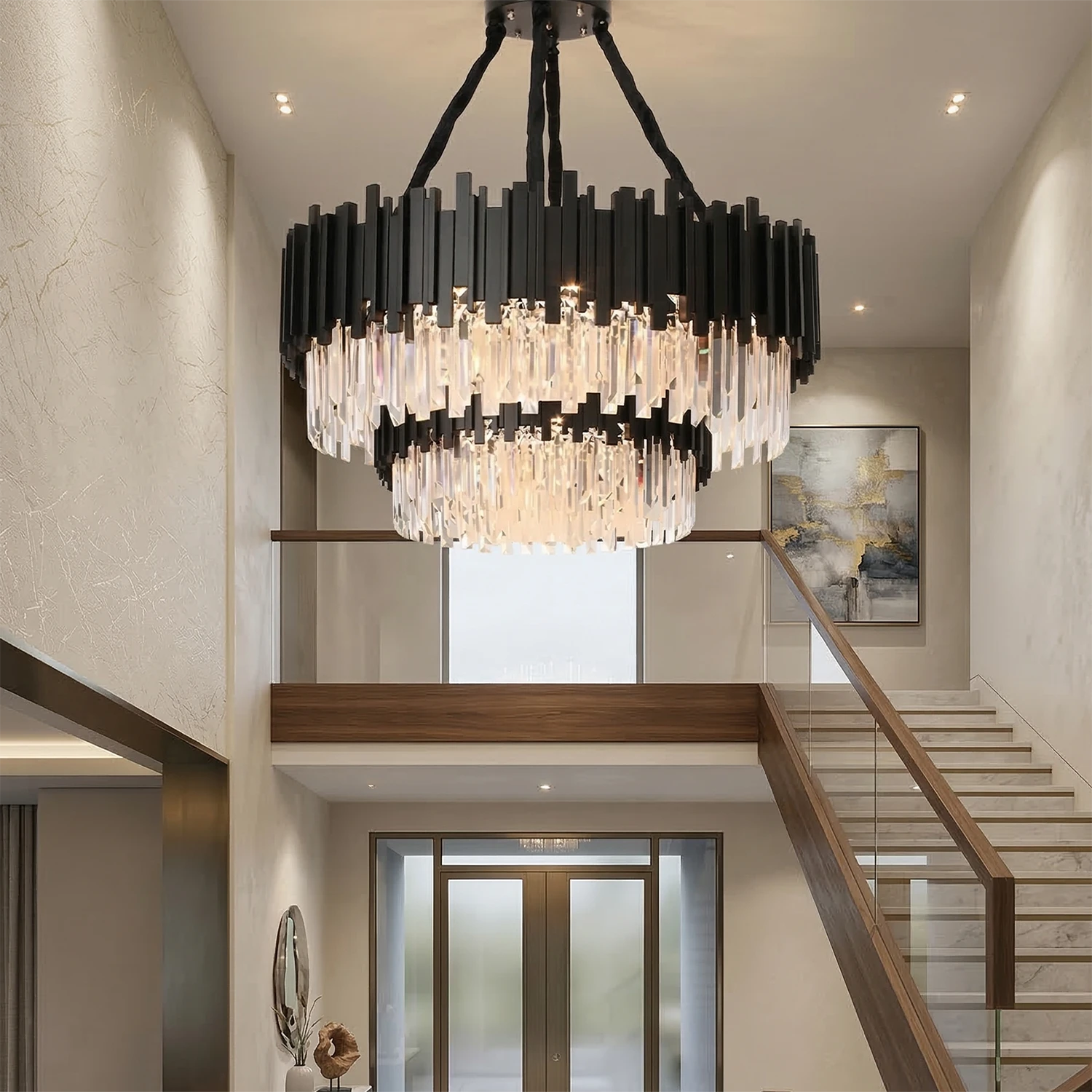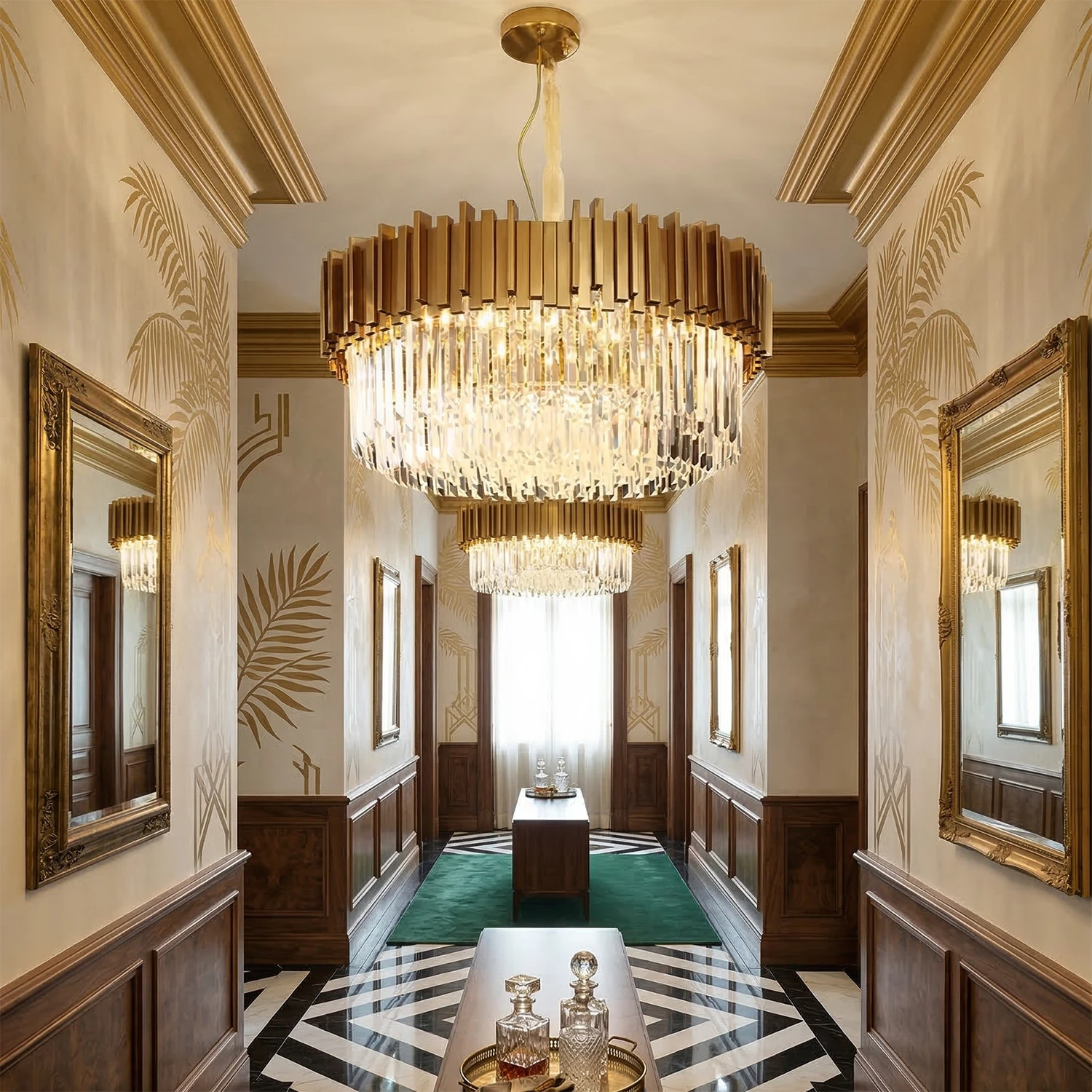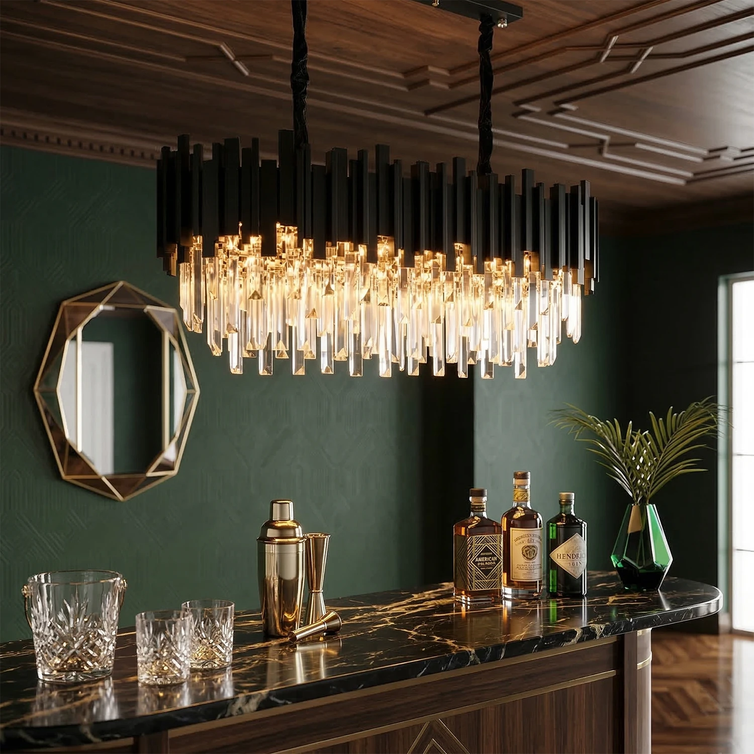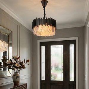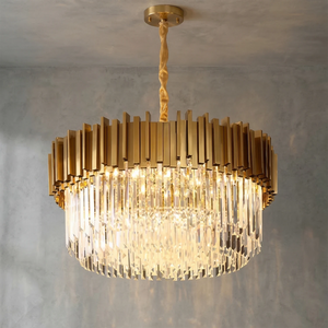 Elevate your interior design with the Bourbons Alphonsus Crystal Chandelier, a masterpiece of modern luxury that seamlessly blends Art Deco elegance with contemporary sophistication. This incredible piece is sure to draw the attention of everyone who enters the room, featuring a stunning array of precision-cut rectangular crystals suspended from a high-quality vertical metal tube frame.