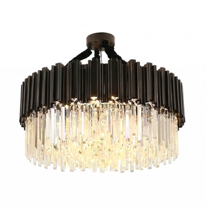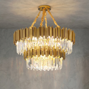 Reimagine luxury with interlaced metal tubes and cascading crystals—a striking departure from the ordinary.