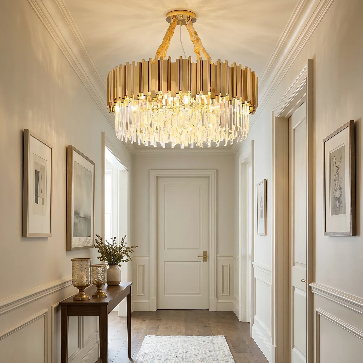 Luminous K9 crystals meet a premium anti-oxidizing frame. Soft, ripple-like light for a silk-smooth aesthetic that never fades.