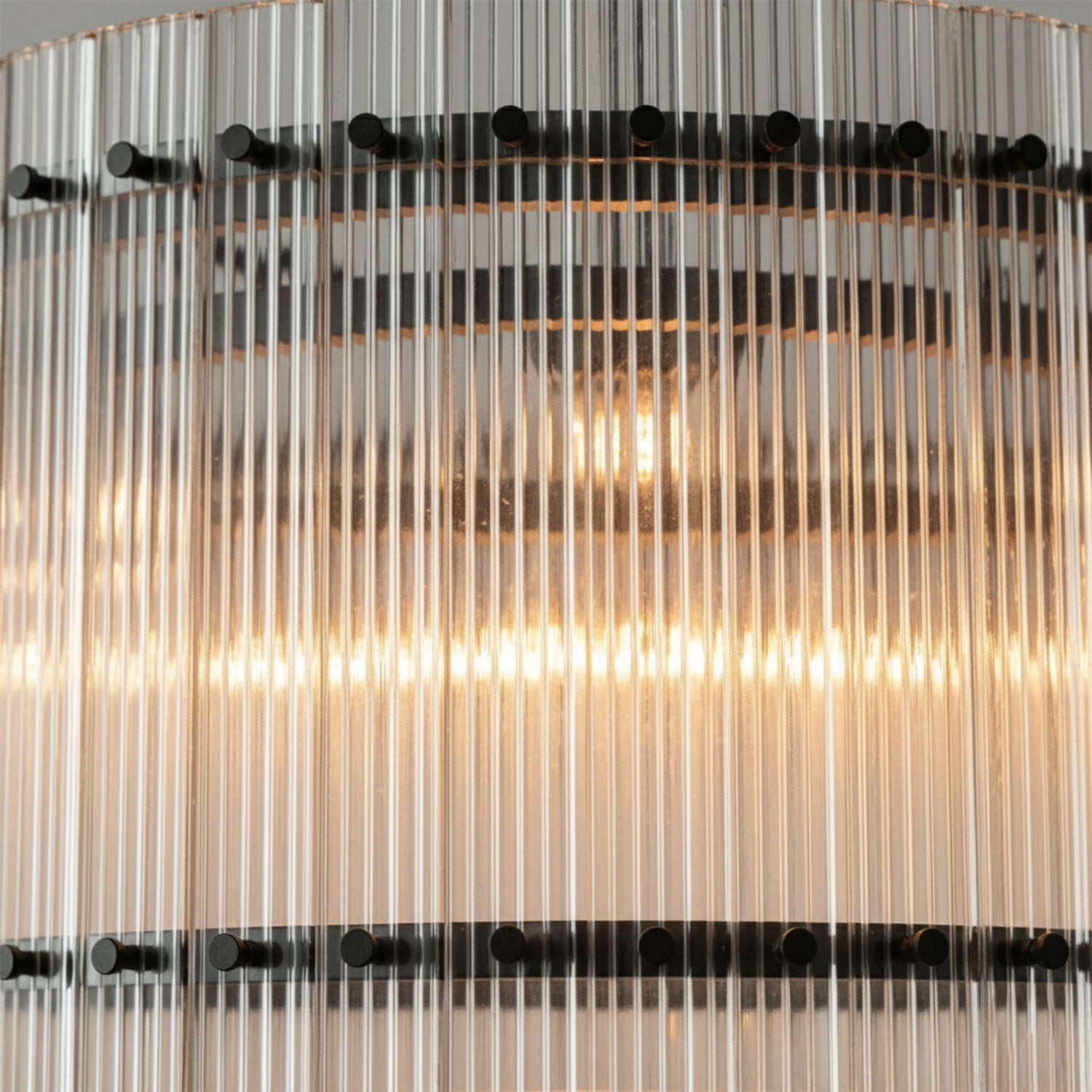 A striking combination of clear, fluted glass rods arranged in a tiered cylindrical design.