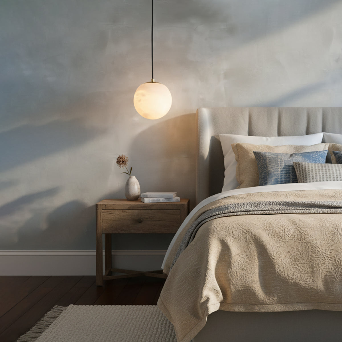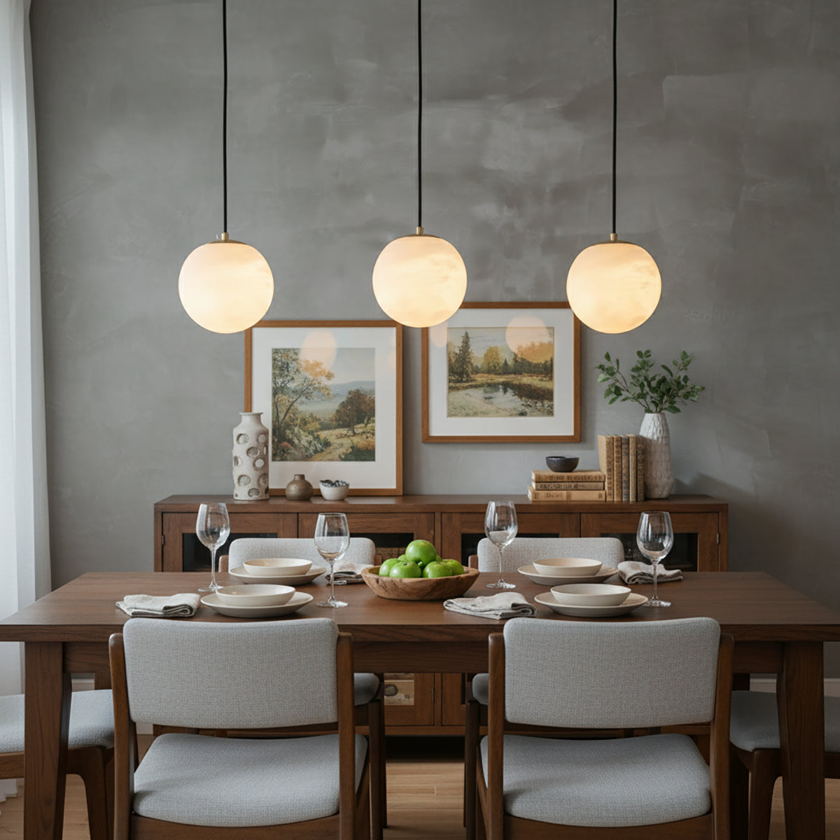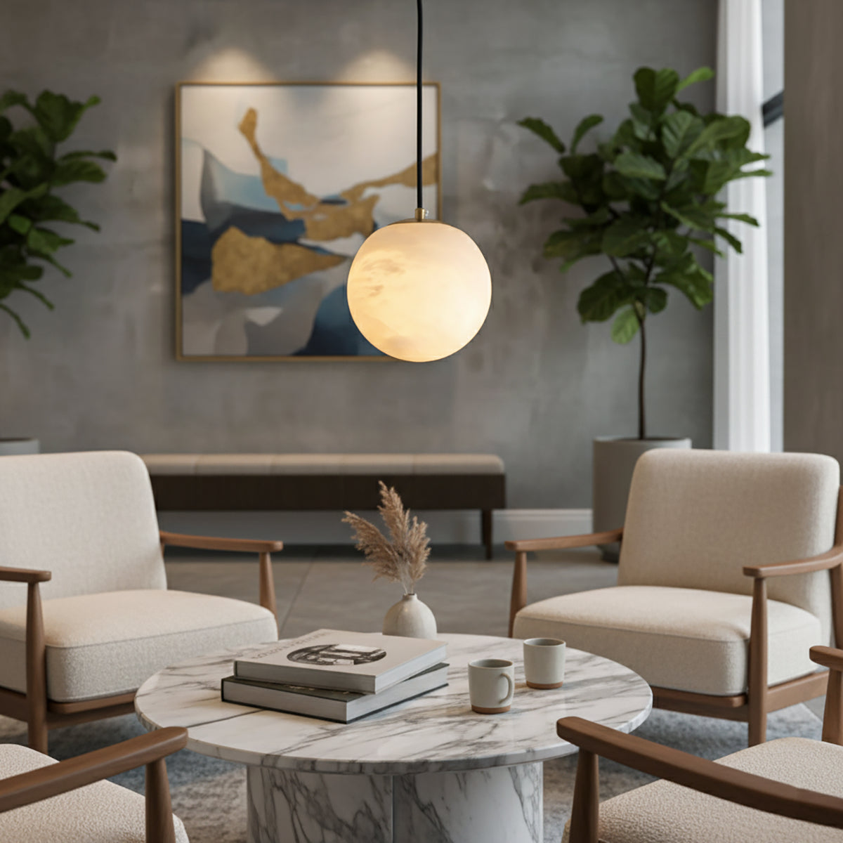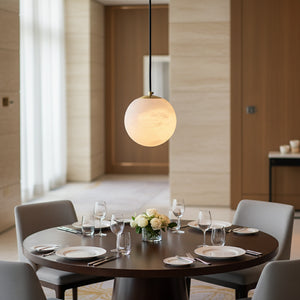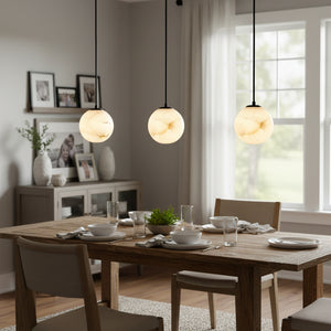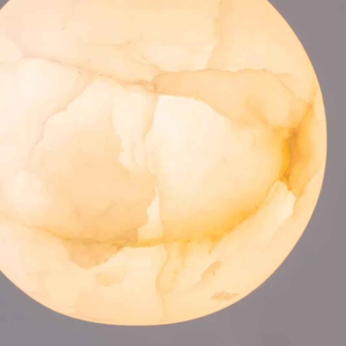 Illuminate your space with our beautifully modern Nordic Style Spherical Alabaster Pendant Light. With its unique natural alabaster texture and elegant copper accents, this pendant light is designed to be a timeless focal point. It's perfect for adding a touch of sophisticated warmth to any room. Hang it individually as a chic accent, or group it above your kitchen island or dining table for impactful lighting and style.