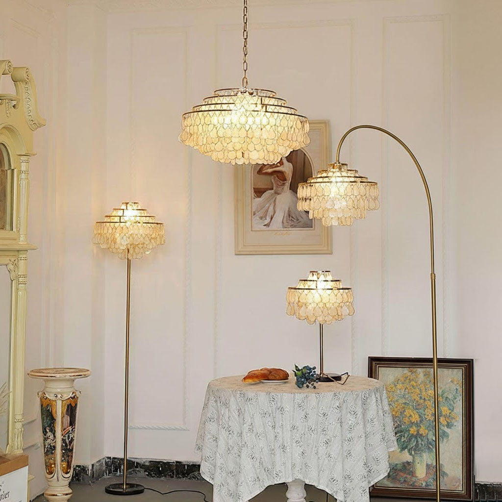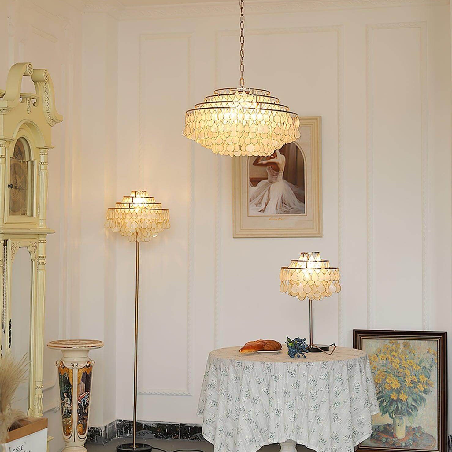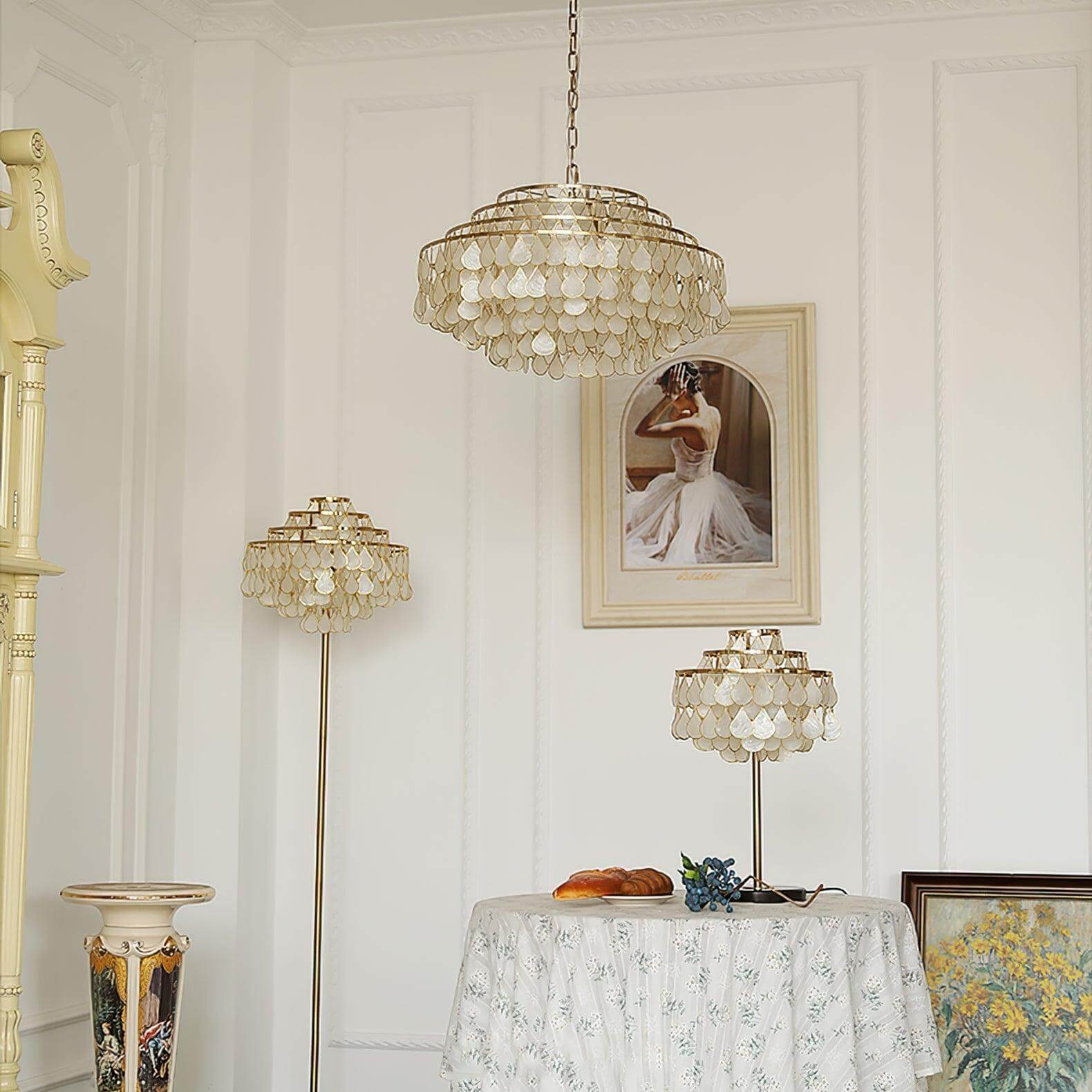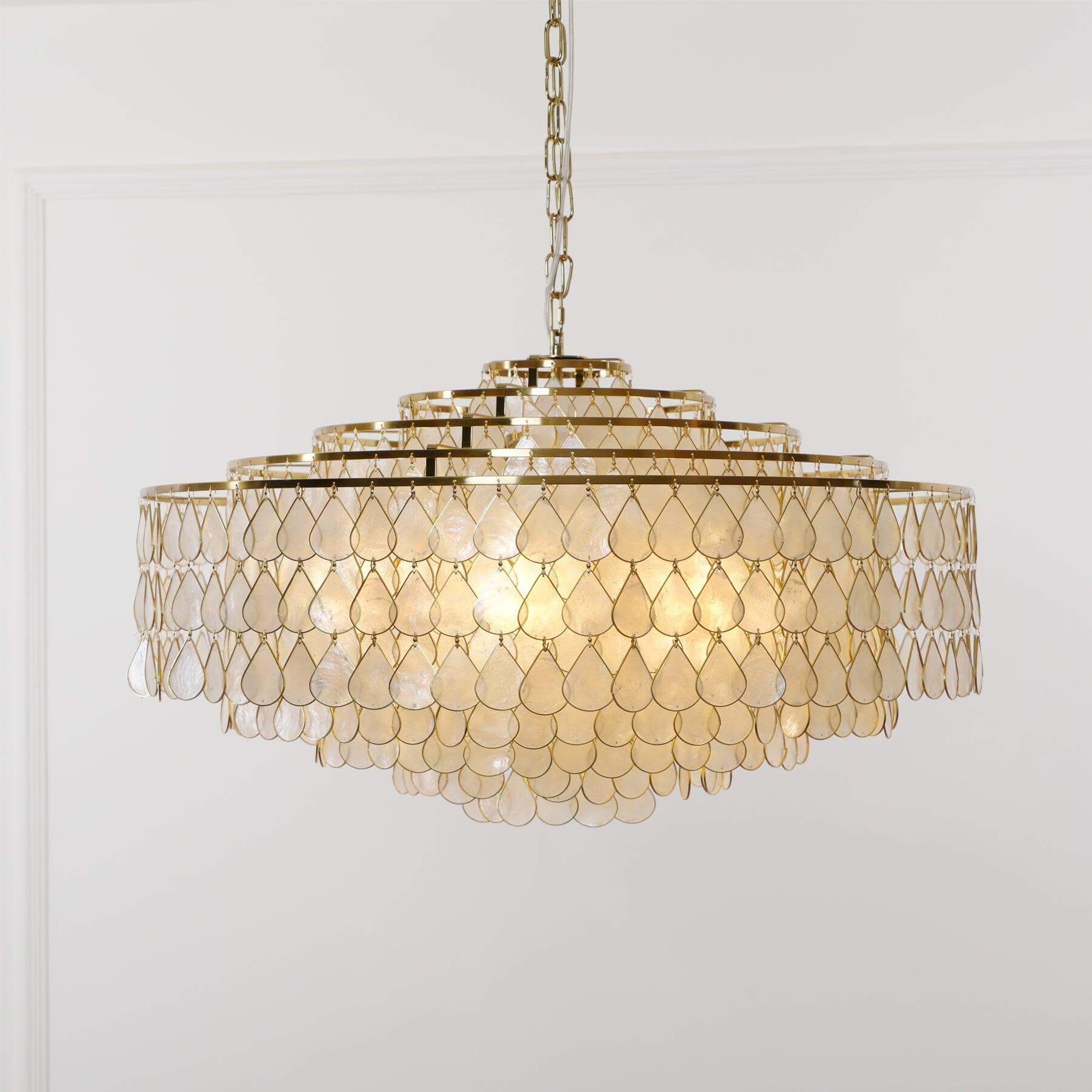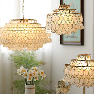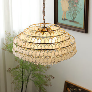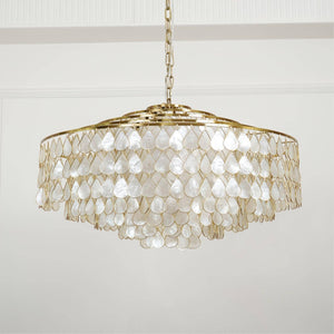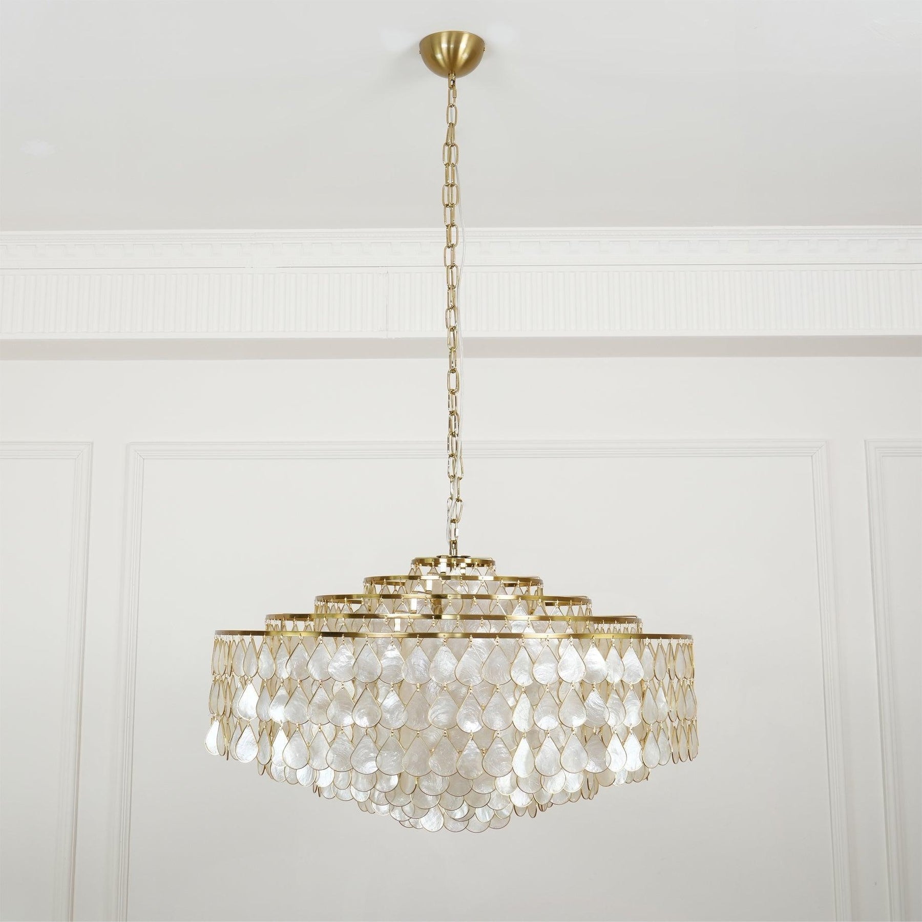 This unique Teardrops Capiz Chandelier is sure to add a touch of elegance to any room. Handmade with real shell, this lamp casts a soft, warm light, perfect for ambient lighting. The stylish design features a natural shell surface, making it a beautiful addition to any home.