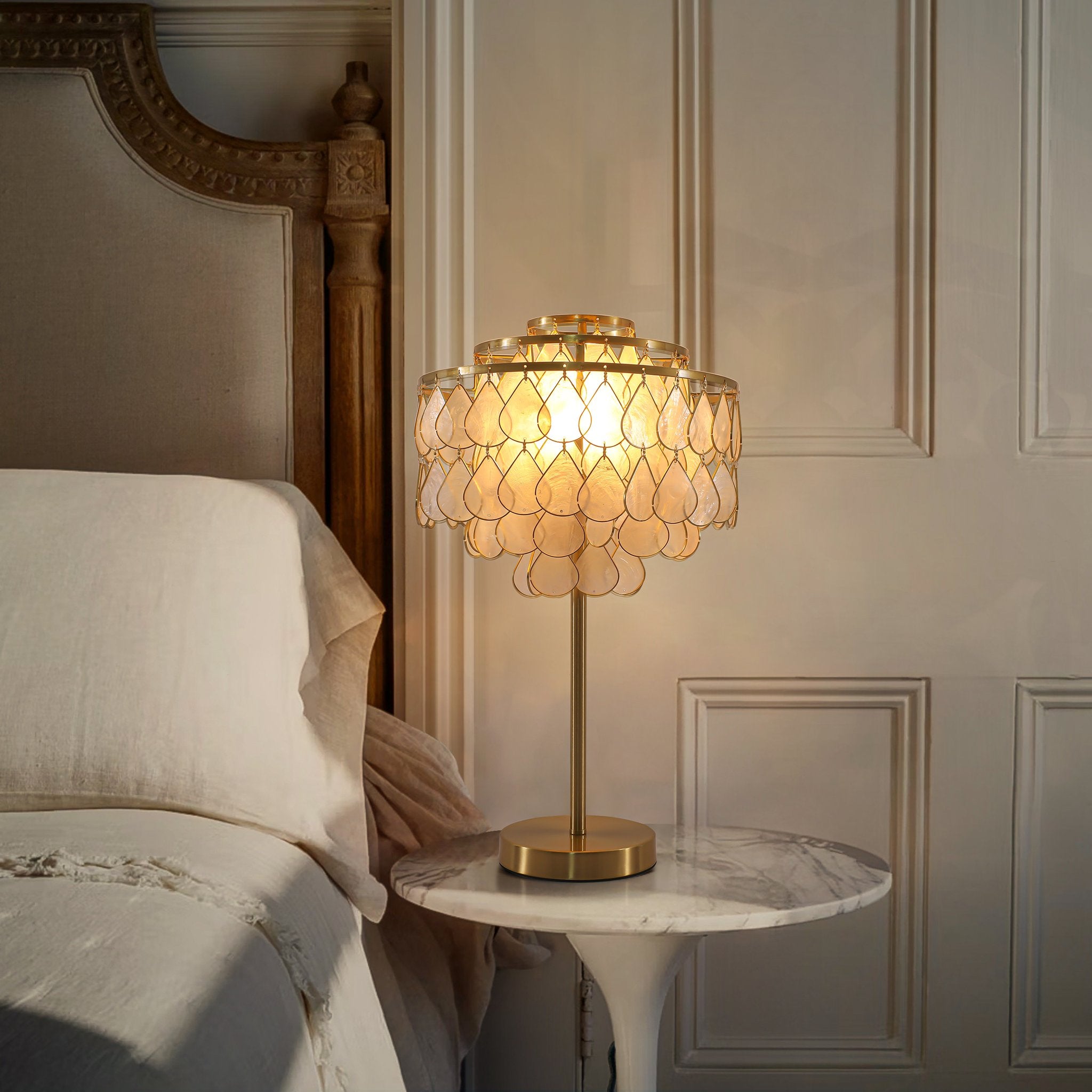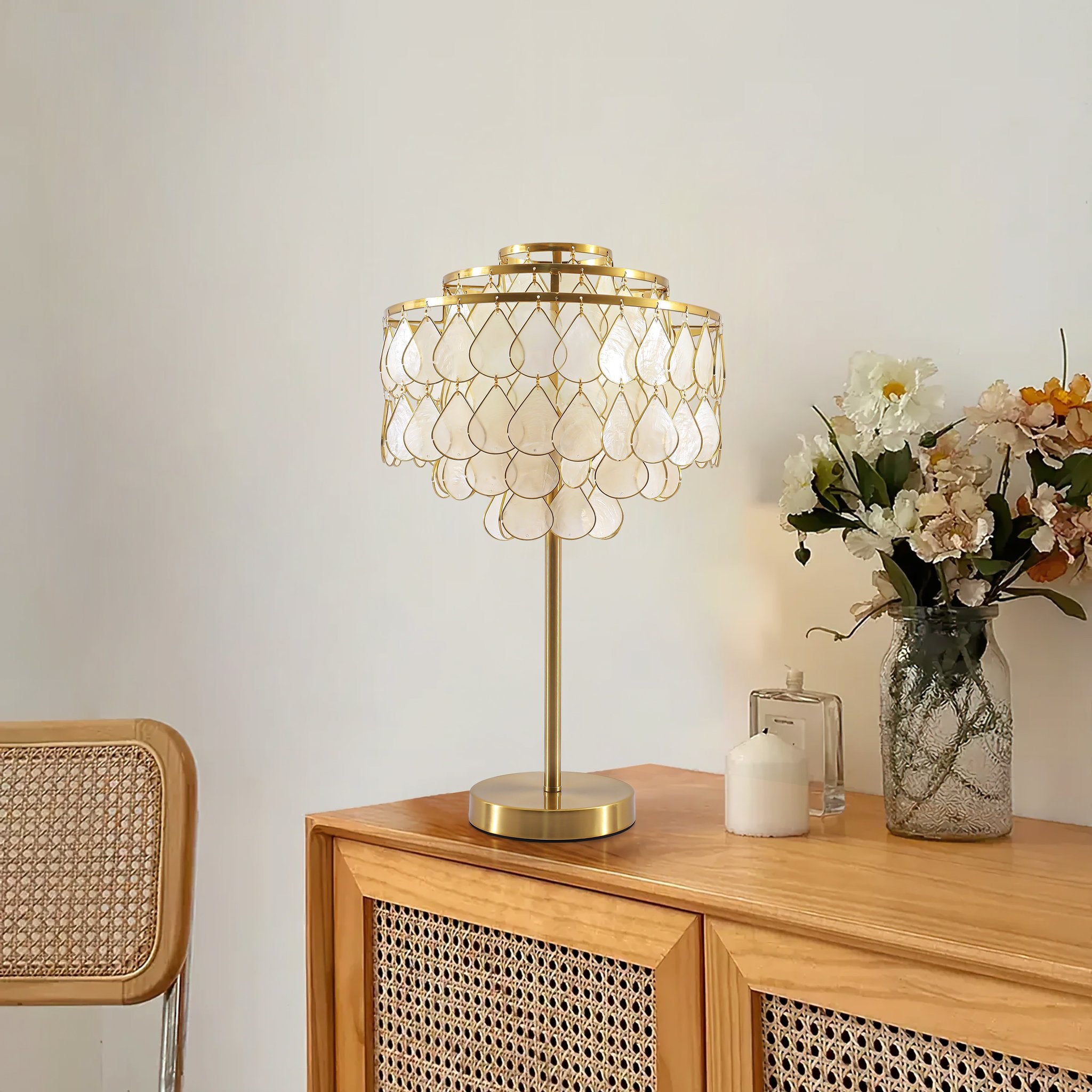 Our Teardrops Capiz Table Lamp is a unique way to add style to any living space. Crafted from shell, the lamp features a beautiful shell design that illuminates your room.