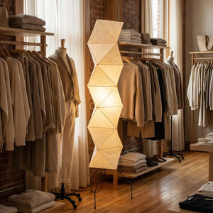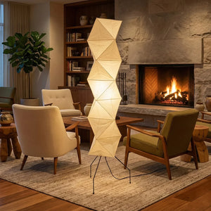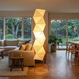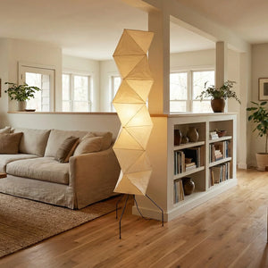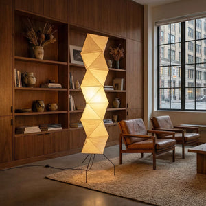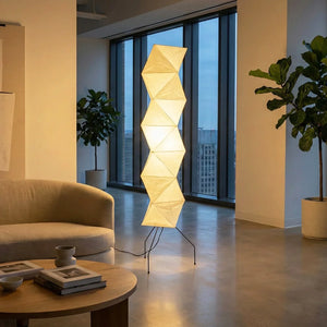 The Akari Rhombus Origami UF4-L8 Floor Lamp is a magnificent masterpiece that embodies the elegance of light and shadow and the philosophy of "weightlessness." It seamlessly blends with modern, Scandinavian, or Zen-inspired styles. Its striking, tall design makes it a visual centerpiece in any room, especially suitable for placement next to a sofa or in an empty corner. Immerse yourself in the aesthetics and practicality of this unique floor lamp; it is both a lighting fixture and a sculptural work of art.