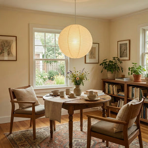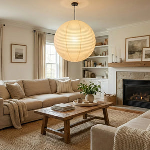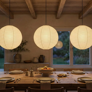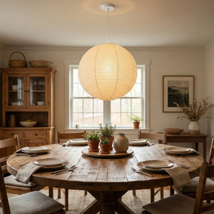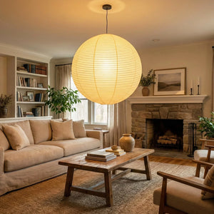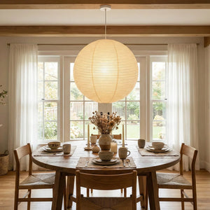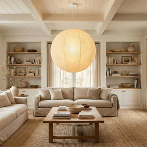 The Akari Spherical A Series Pendant Light is an iconic design that blends Japanese aesthetics and the essence of Wabi-Sabi. It seamlessly integrates traditional craftsmanship with modern minimalism. Available in multiple sizes, including 30A, 40A, 50A, 55A, 60A, 70A, 75A, 80A, 90A, 100A, and 120A, it can be chosen to suit the needs of different rooms. Larger sizes are suitable as the main light source in living rooms. It is ideal for various areas such as living rooms, bedrooms, cafes, studies, dining rooms, and kitchens. It perfectly combines artistic vision and practical aesthetics, serving as both a main light source and an ambient light providing soft, diffused illumination.