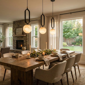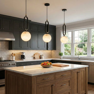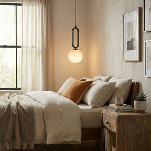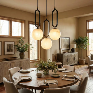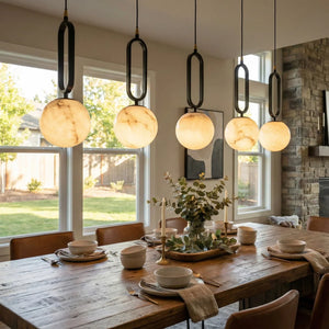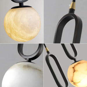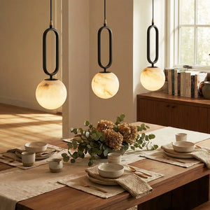 The Ball Alabaster Oval Ring Pendant Lamp is an elegant fusion of natural elements and luxurious aesthetics. At its core is a carefully selected piece of natural alabaster, precisely polished into a translucent artistic form, infusing modern homes with a light and airy spirit. Whether used as a bar counter pendant light, a bedside reading lamp, or as an accent in stairwells or entryways, its compact size belies its powerful artistic presence. This single-head pendant light is ideal for hanging in groups. Depending on your space requirements, you can arrange lights of different sizes or heights to create a rhythmic and visually striking lighting effect.