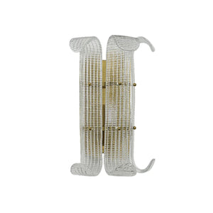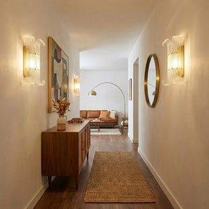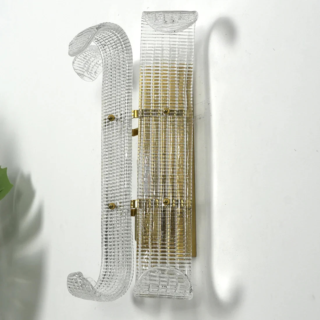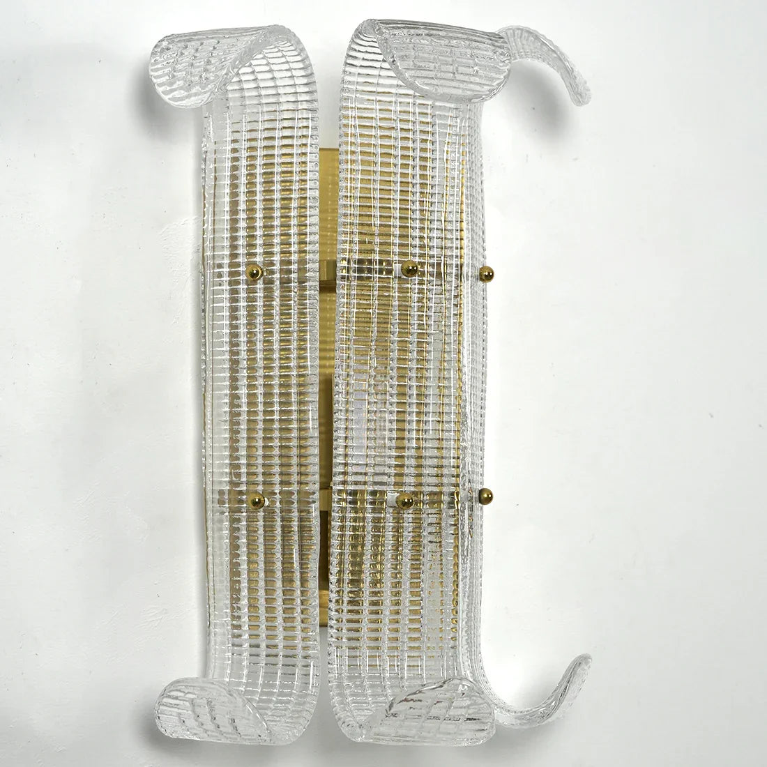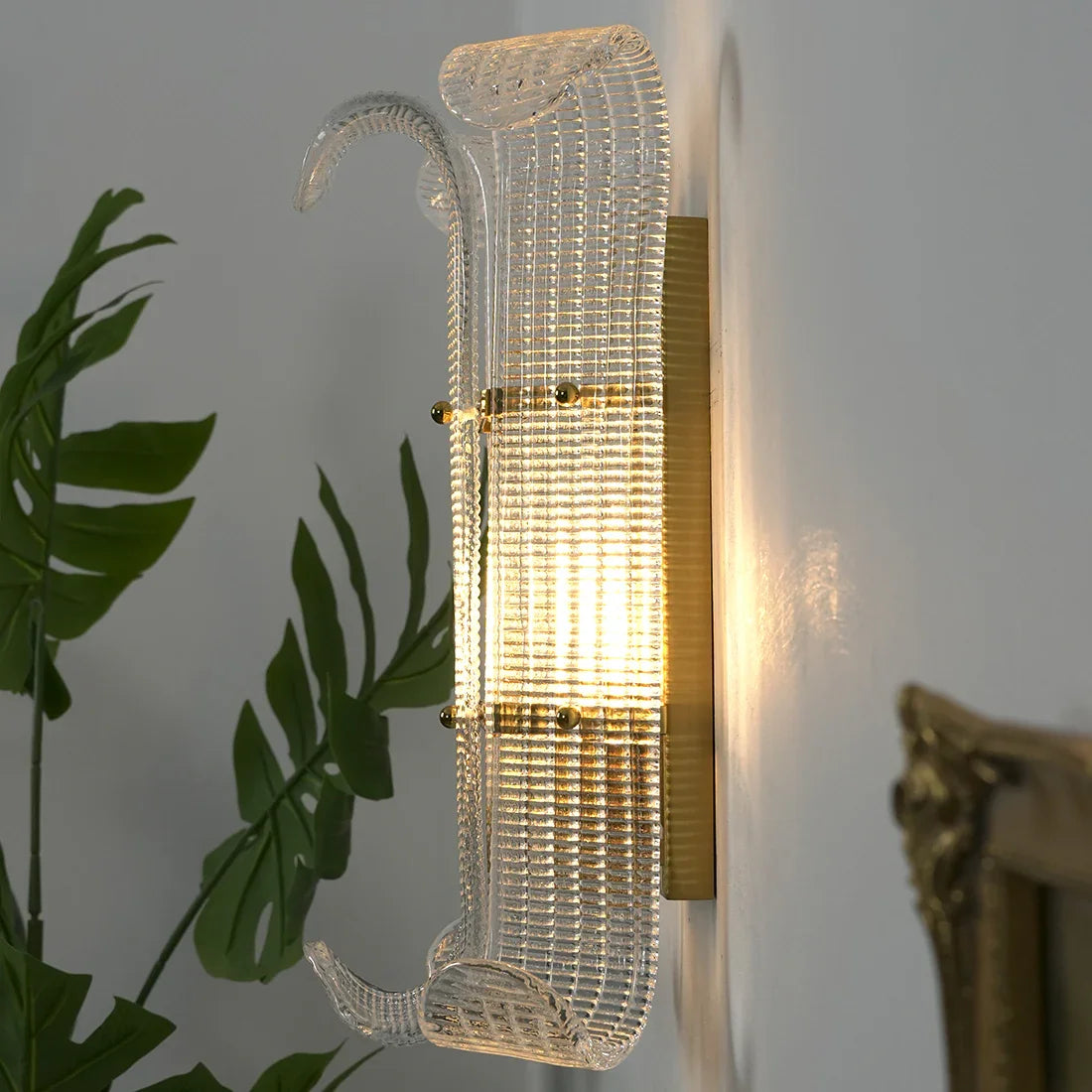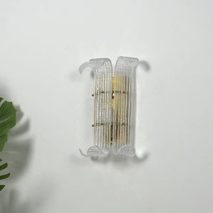 This Curved Glass Slat Drum Wall Lamp masterfully blends Italian vintage art with modern minimalist aesthetics. The centerpiece of its design is the high-quality textured grid glass, which elegantly scrolls into an upward and downward arc, resembling delicate ribbons. As illumination passes through the dense glass patterns, the lamp creates a soft, layered play of light and shadow, adding a sense of warmth and luxury to any space. Whether accenting a Mid-Century Modern hallway or serving as bedside lighting in a contemporary luxury bedroom, its unique artistic form makes it a striking statement piece for any wall.