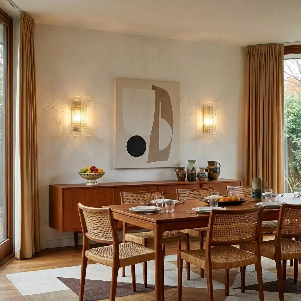 This statement wall lamp effortlessly elevates Mid-Century Modern dining rooms and high-end contemporary spaces.