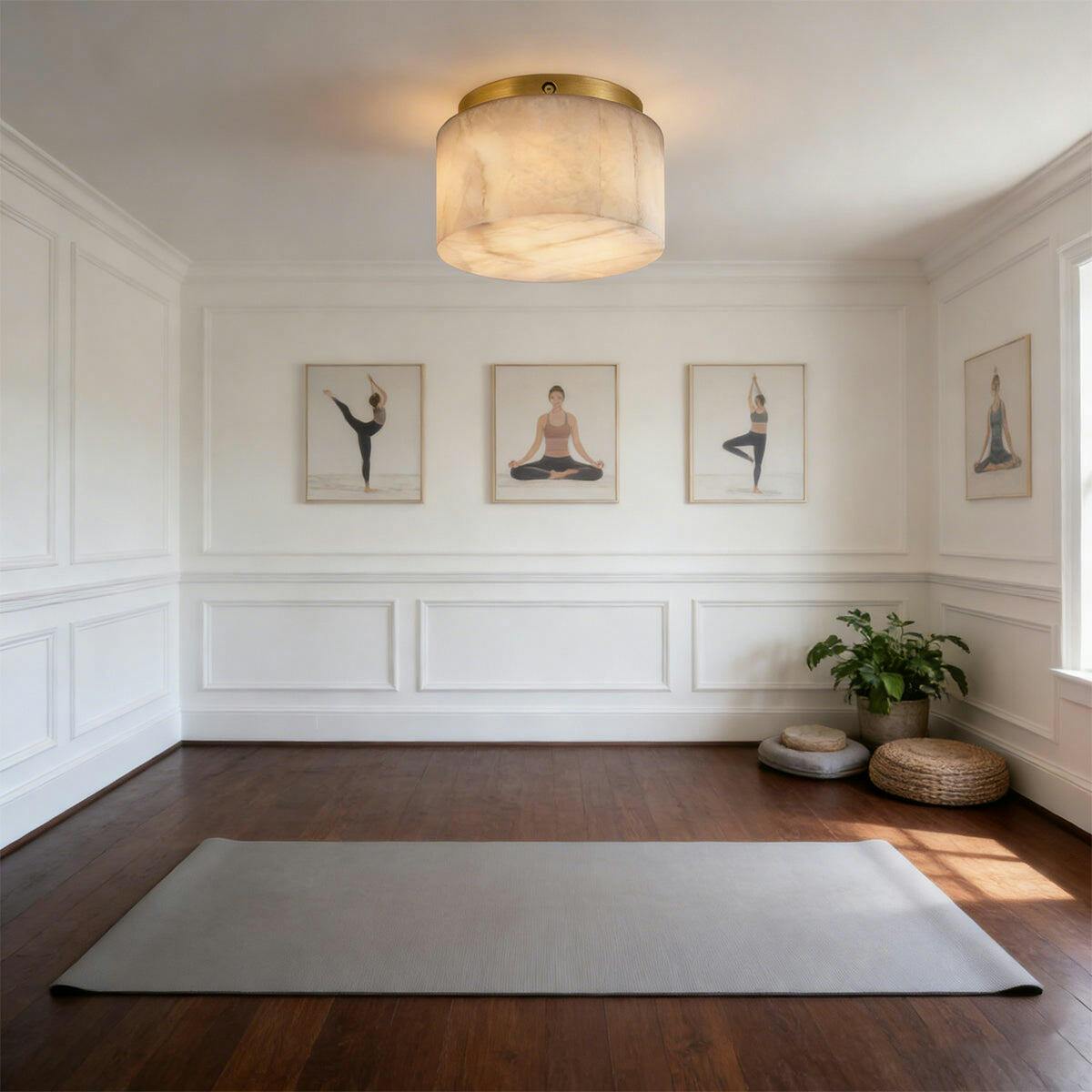 Minimalist in form, dramatic in effect, our Rivage Round ceiling lampby Timothy Oulton celebrates the beauty of calcite, a translucent stone with a warm, natural glow. Polished sheets of stone are expertly pieced to create a smooth, continuous surface, while subtle illumination from within highlights the organic coloration and veining. Each fixture is a one-of-a-kind statement.