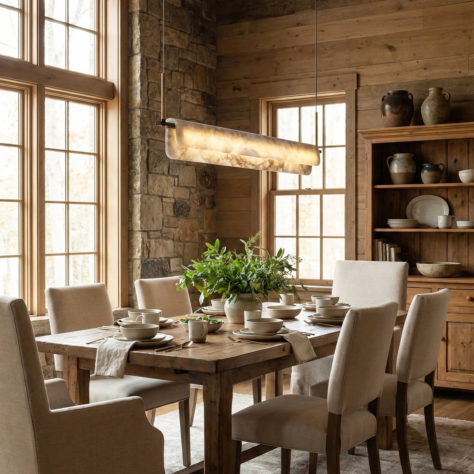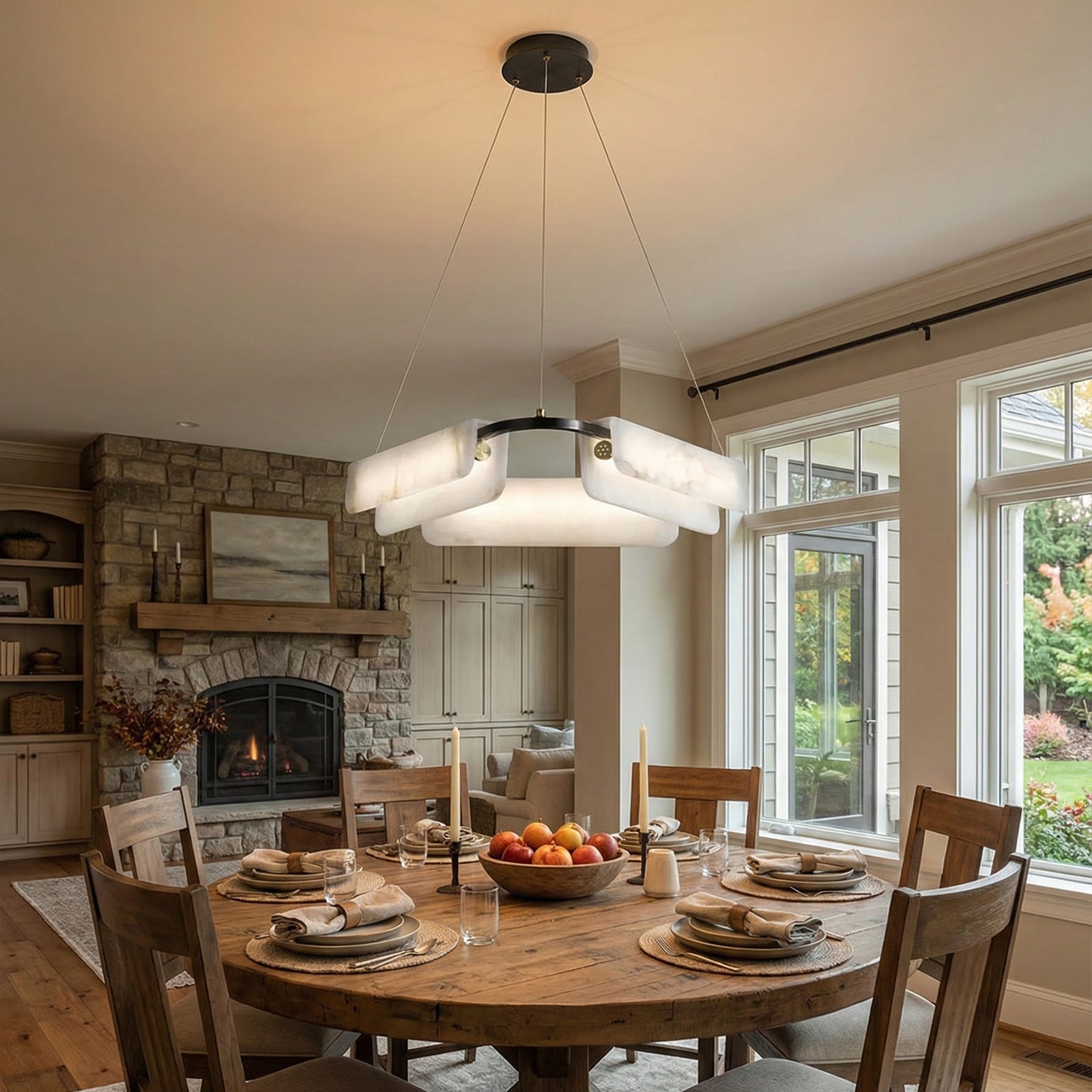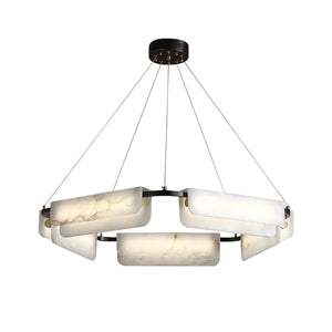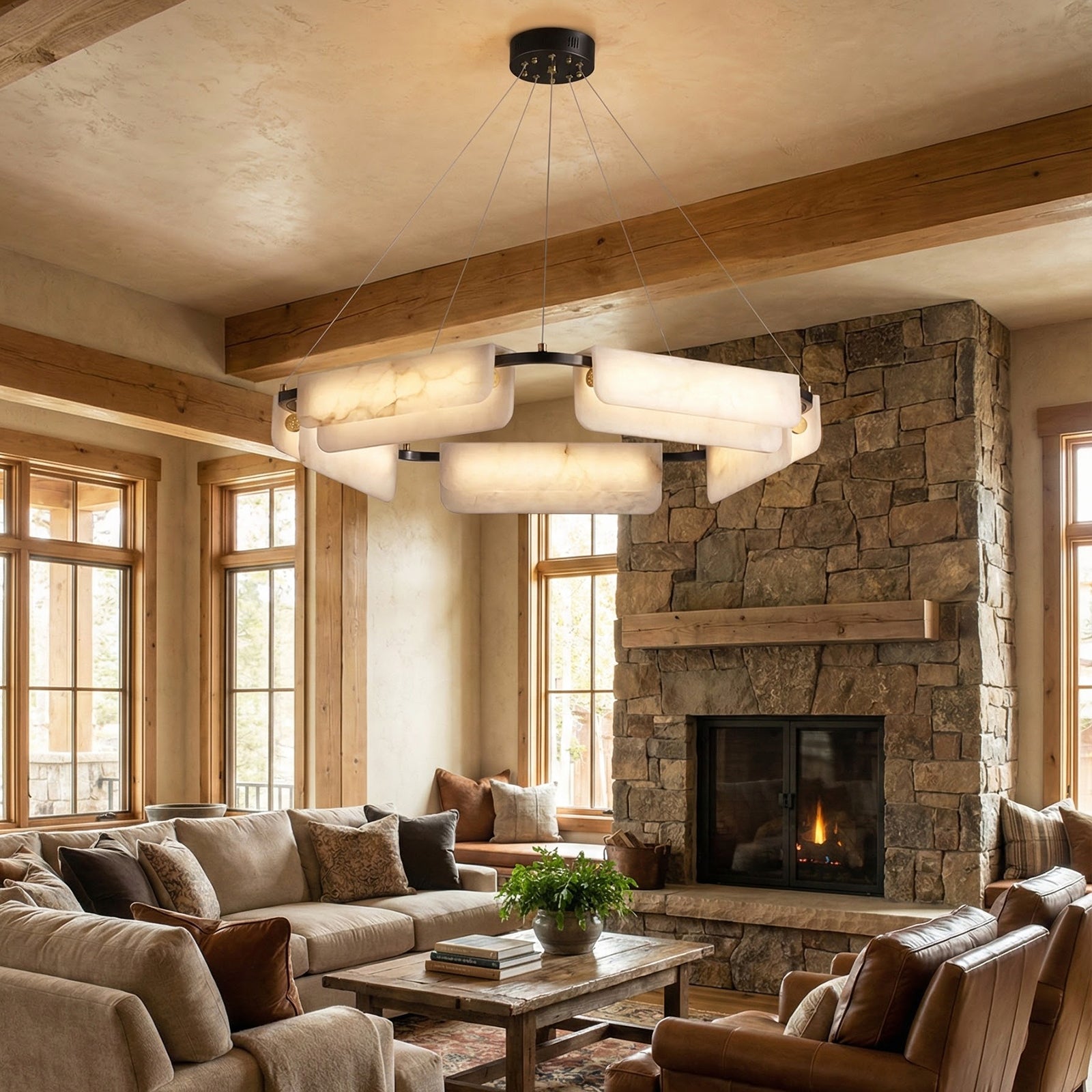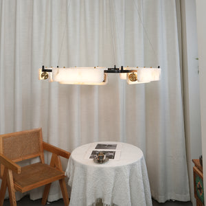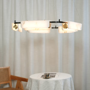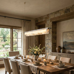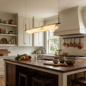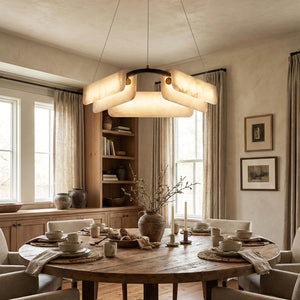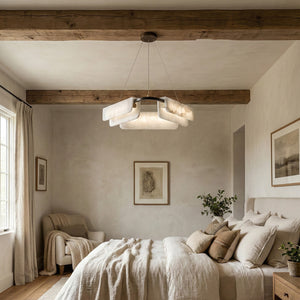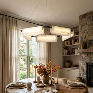 This Alabaster Delia Rectangle Chandelier is the perfect embodiment of modern industrial aesthetics and timeless elegance. Its frame is crafted with exquisite copper, adorned with luxurious alabaster, defining a new standard of luxury for any space. This makes it an ideal focal point for living rooms, dining rooms, bars, and more.