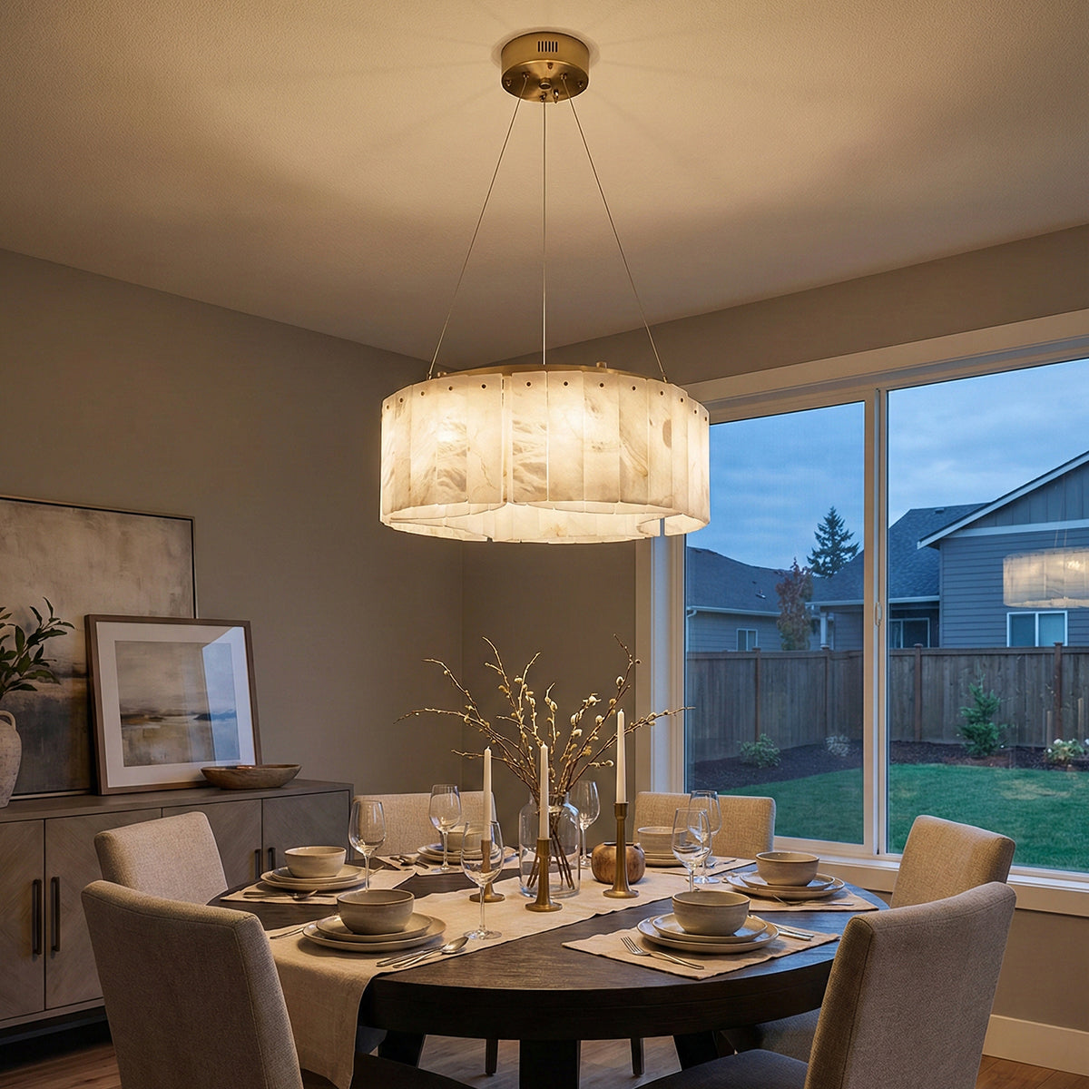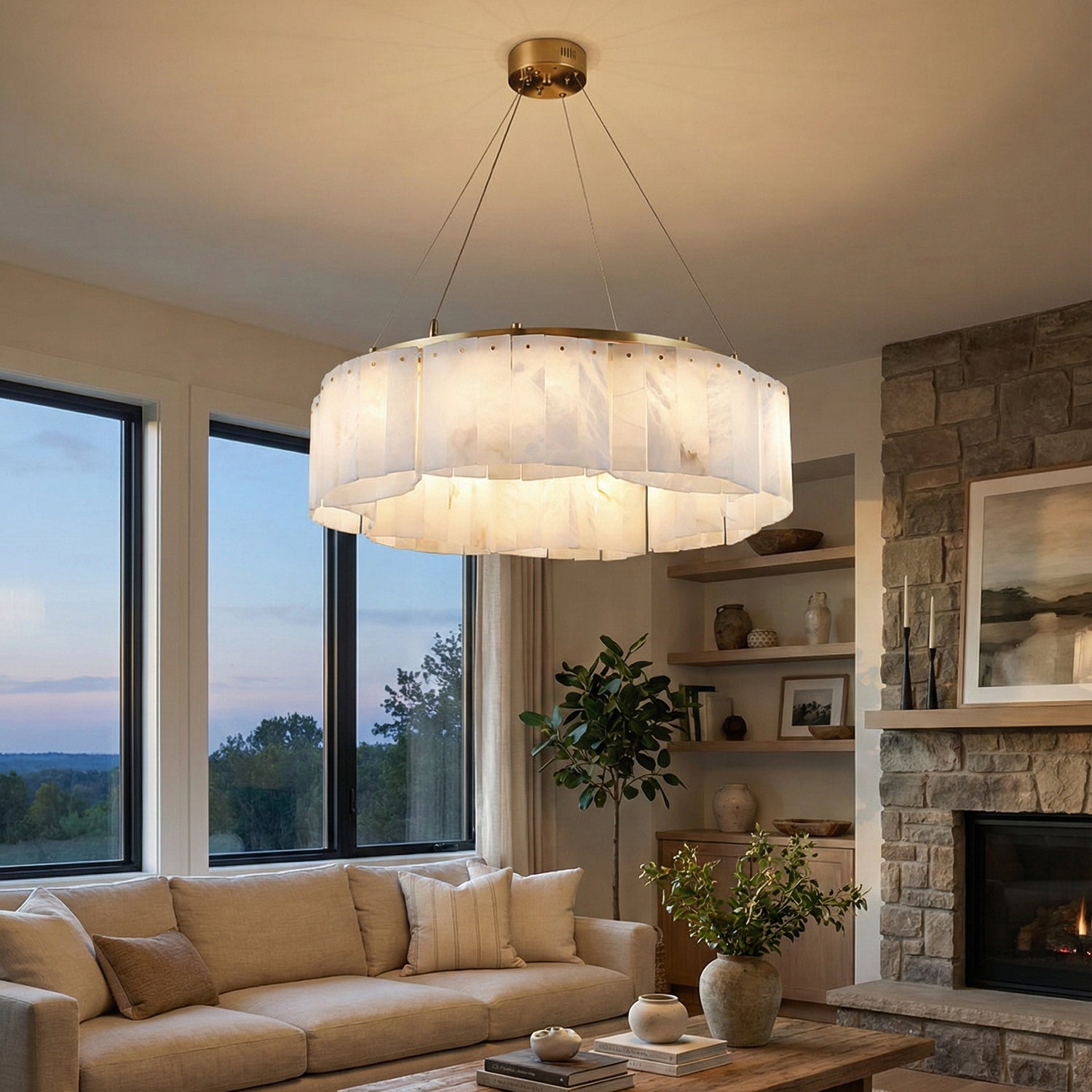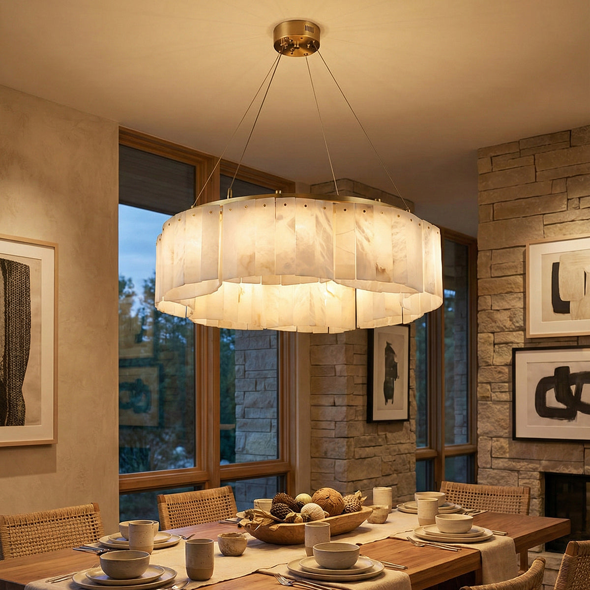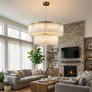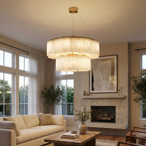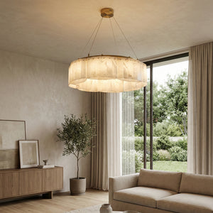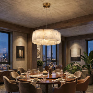 The Alabaster Willamette Round Layered Chandelier is a masterpiece that perfectly combines the beauty of physical balance with the natural tension of minerals. This unique balanced design not only provides excellent visual stability but also imbues the space with a sense of artistic rhythm, breaking away from the monotonous forms of traditional lighting fixtures. It is the ideal visual centerpiece for high-ceilinged living rooms or dining rooms, minimalist art salons, or spaces that seek "luxurious warmth."