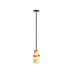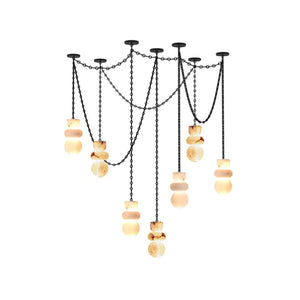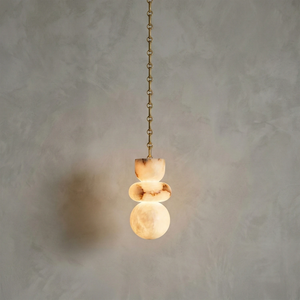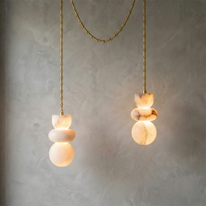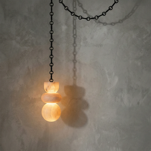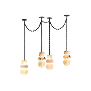 The chandelier is meticulously crafted entirely from natural alabaster. The unique characteristics of the natural stone ensure that each lamp possesses a one-of-a-kind texture, infusing the interior space with warm, natural energy and giving the fixture strong visual appeal. The interplay of geometric lines breaks the perceived heaviness of the stone, creating a sophisticated yet inviting accent that is the perfect finishing touch to elevate any home's style.