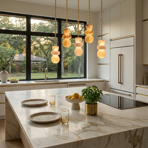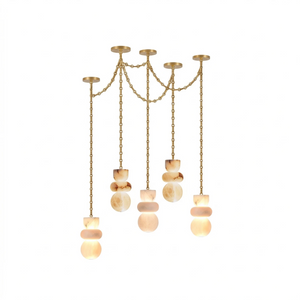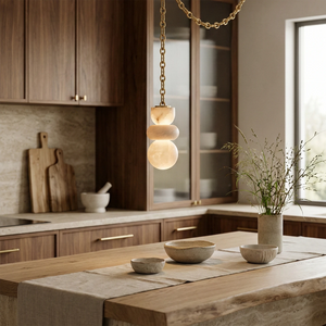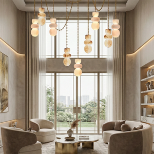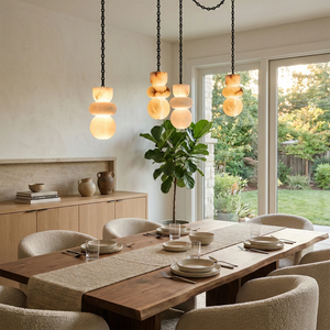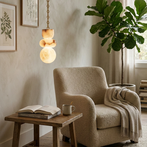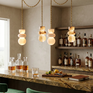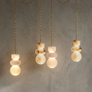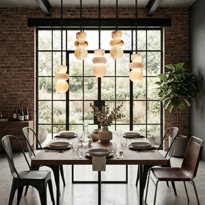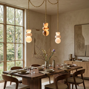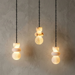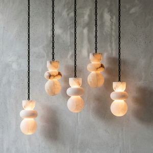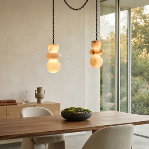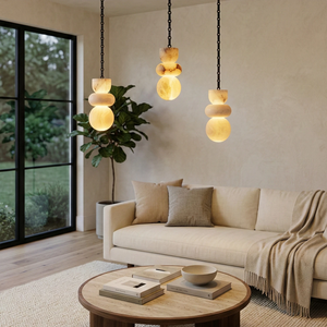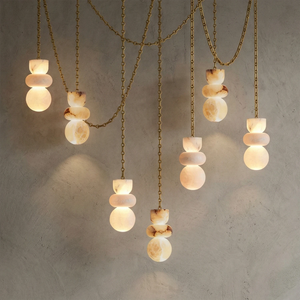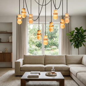 This Lykka Alabaster Cluster Chandelier perfectly blends the pure crystallization of nature with modern industrial aesthetics, making it a highly distinctive art piece for contemporary homes. High-quality built-in LEDs project a soft, warm glow through the translucent stone. This diffused light effectively eliminates shadows, creating a tranquil ambiance in living rooms or bedrooms.