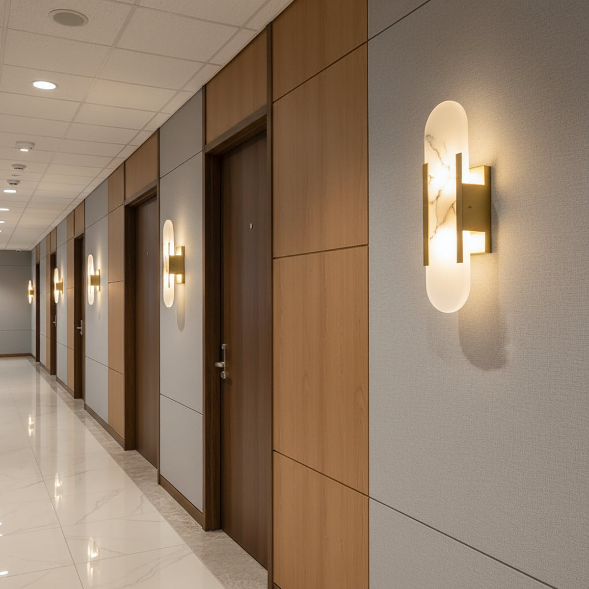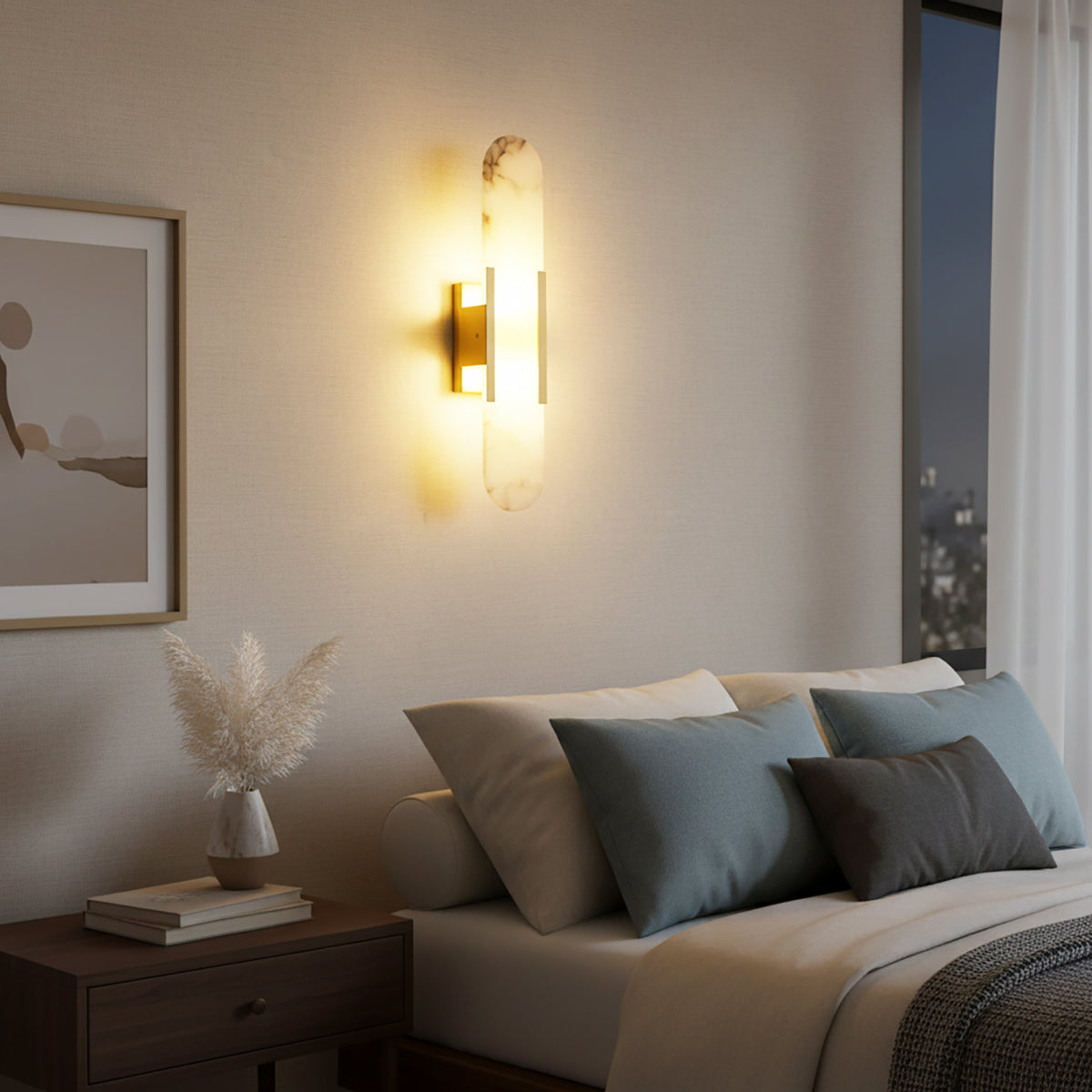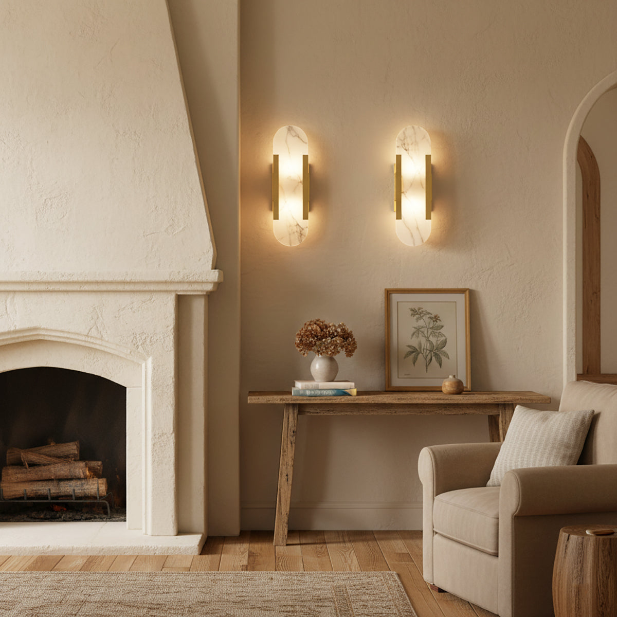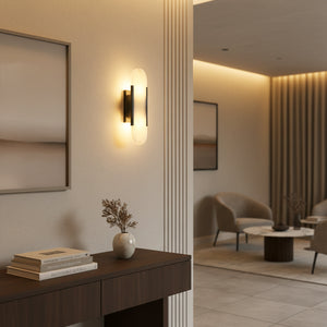 Illuminate art and luxury! The Minimalist Oval Alabaster Wall Lamp, with its natural texture and warm glow, brings exquisite sophistication to modern spaces. It perfectly combines the pure beauty of natural alabaster with modern minimalist design. As light filters through the warm alabaster, every detail of its texture is gently awakened, exuding a unique and luxurious ambiance. When the lamp is illuminated, the alabaster emits an even and soft light, without any harsh spots, but instead a warm and richly layered atmosphere. This unique light effectively softens the space, creating a warm and comfortable yet luxurious visual experience. It's ideal for living rooms, bedrooms, hallways, or even high-end hotel lobbies, boutiques, or galleries, bringing life and artistic flair to your walls.