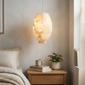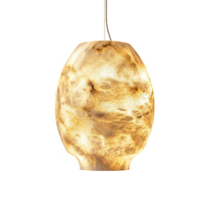 The Oval Camille Organic Alabaster Pendant Lamp is a masterpiece crafted for discerning dining spaces that demand exceptional aesthetics. It's not just a lamp, but a perfect symphony of art and nature.