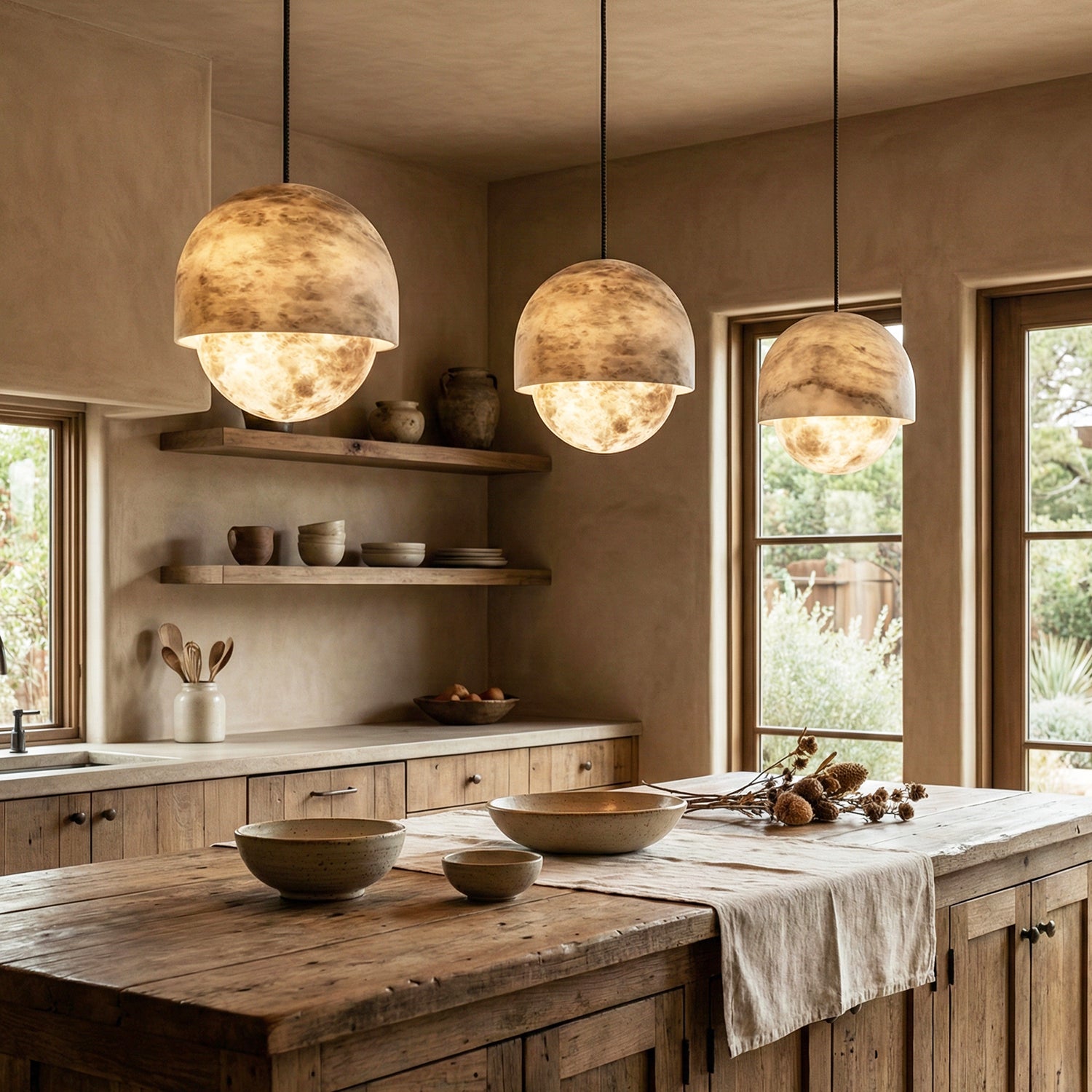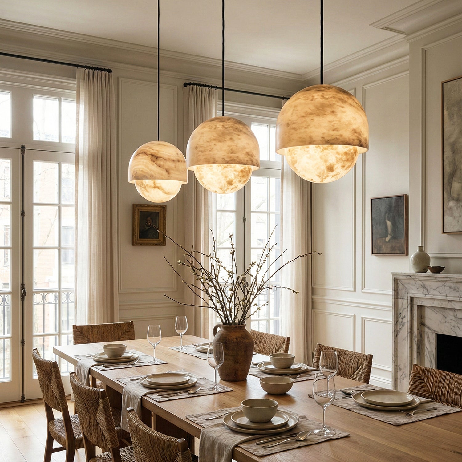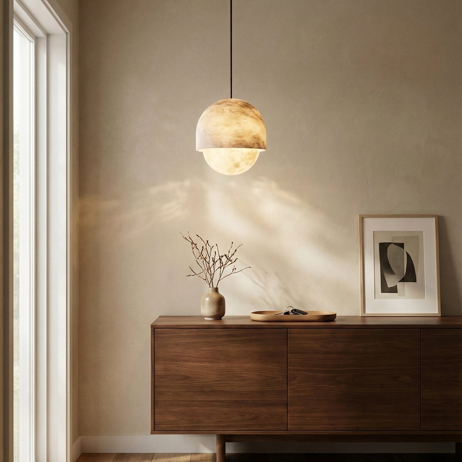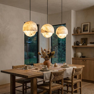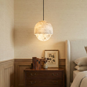 The Semicircular Lunar Alabaster Pendant Light captures the tranquility and elegance of moonlight with its purest geometric form – the dome – making it the artistic soul of modern interior design. Whether suspended above the dining area as a visual focal point or placed in a lounge or living room to create a warm ambiance, its exquisite texture instantly elevates any space.