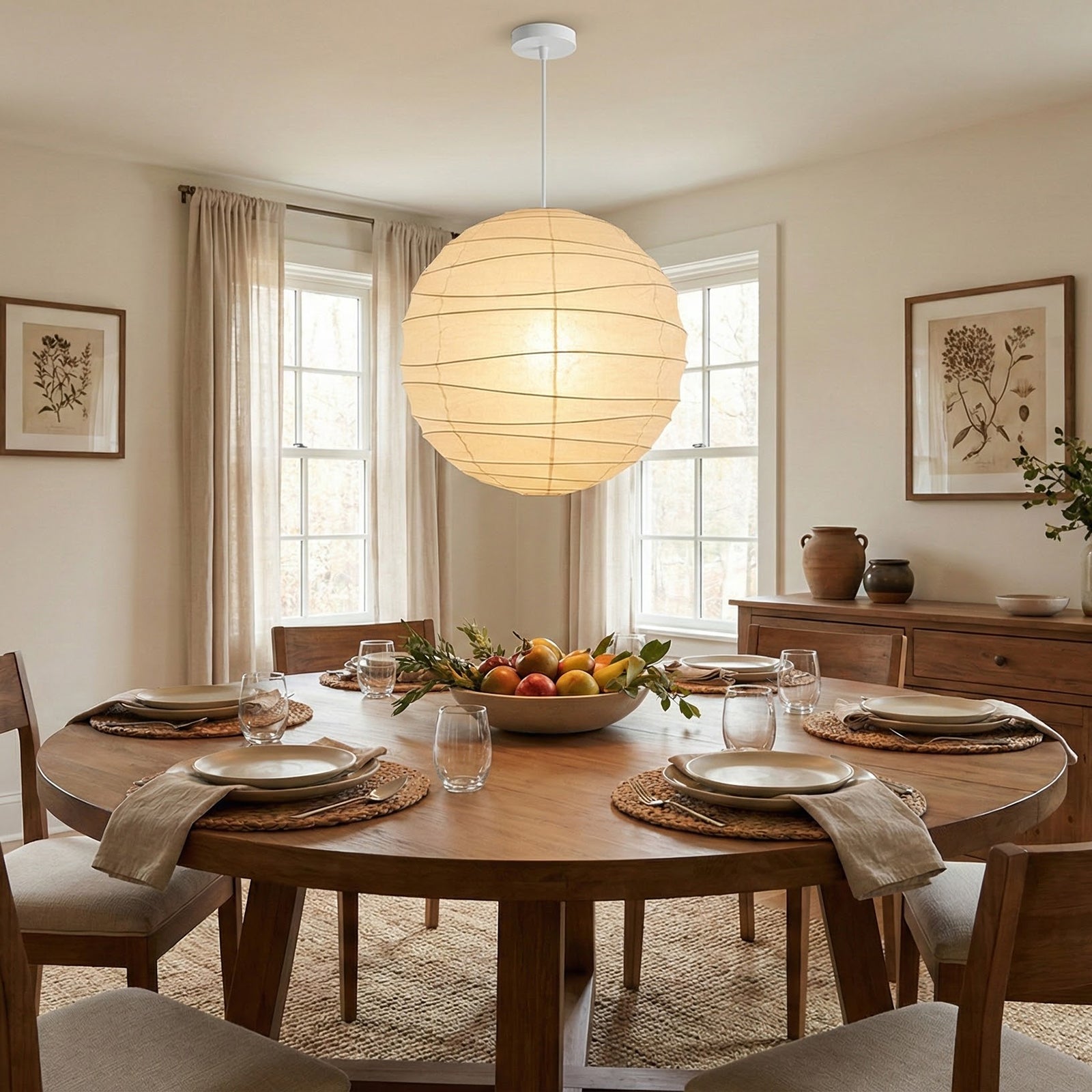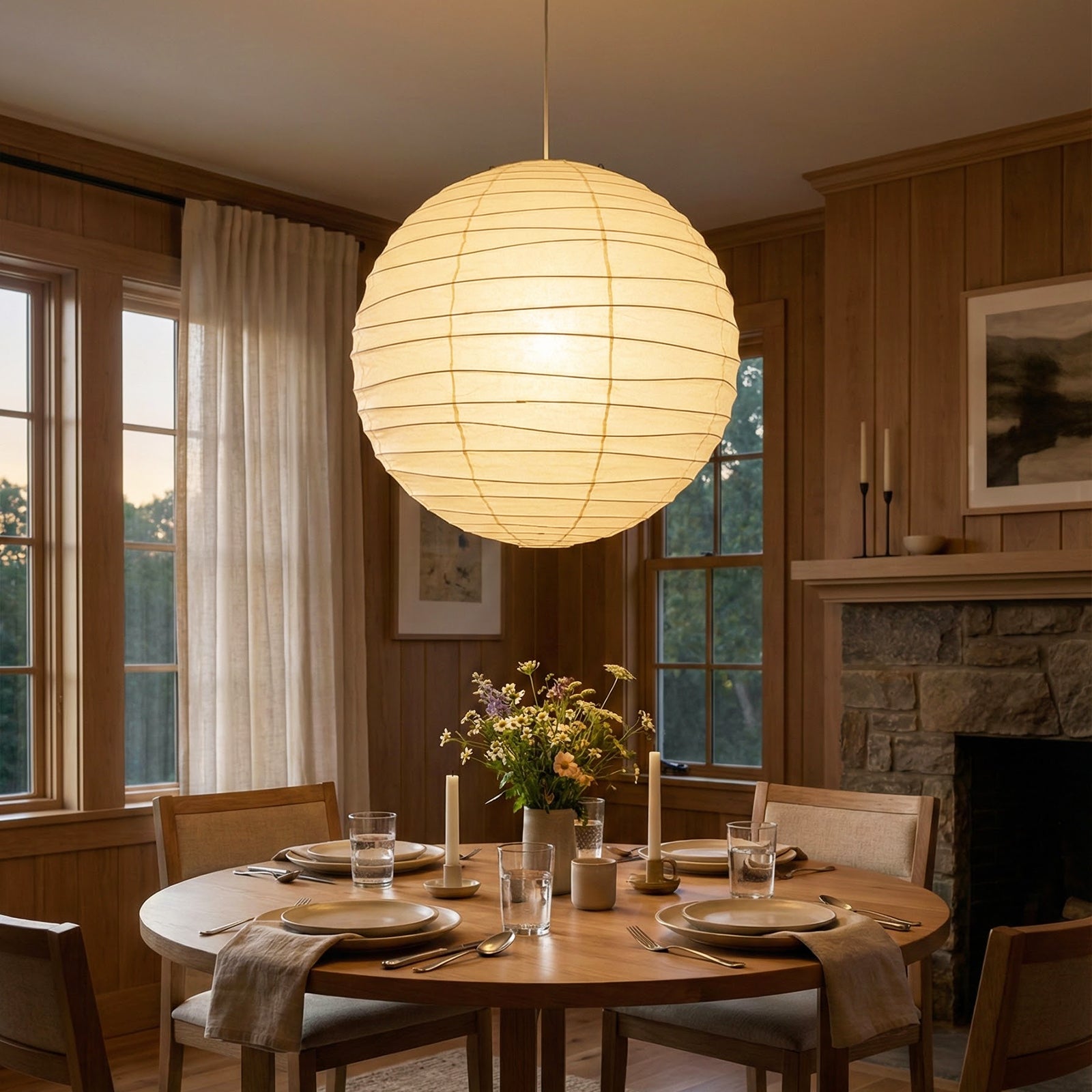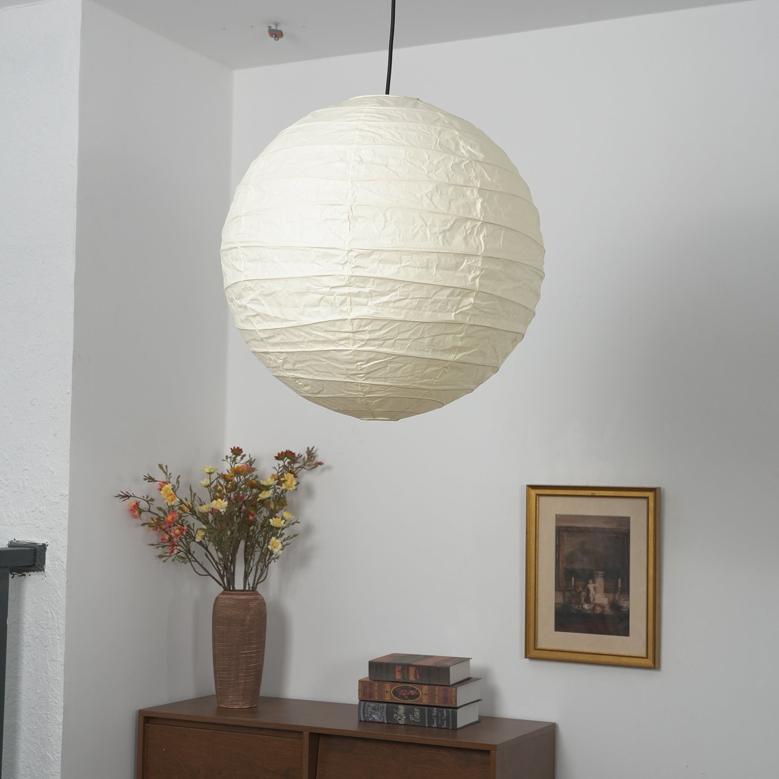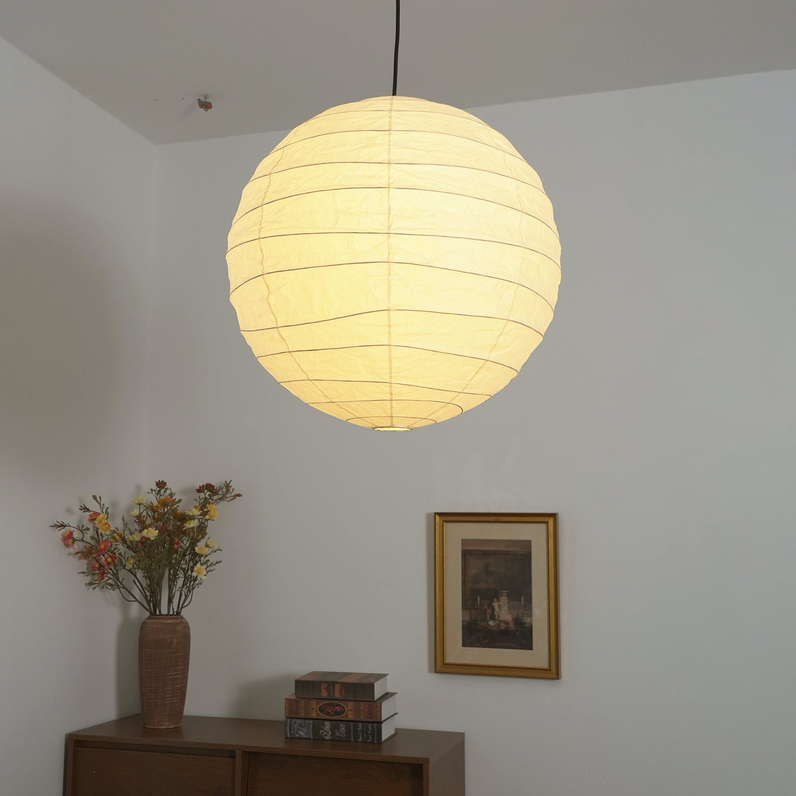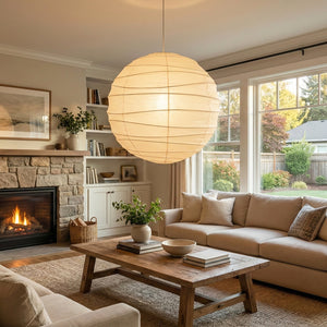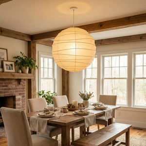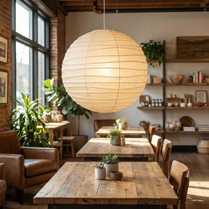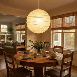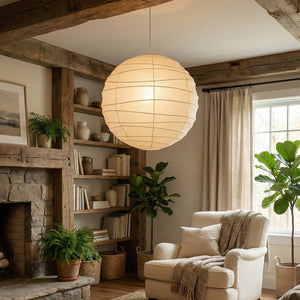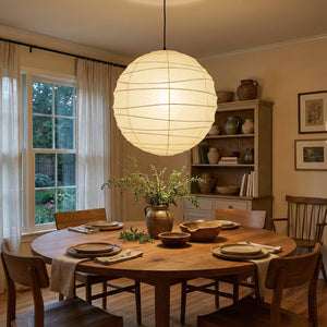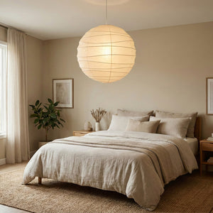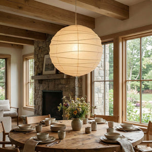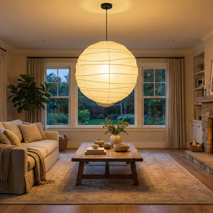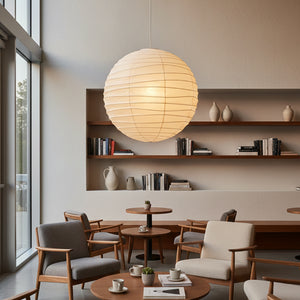 Explore the timeless charm of the Spherical D Series Paper Pendant Light and experience the perfect blend of traditional craftsmanship and modern design. These two lamps are ideal for creating a sense of grandeur in any space. They are the visual centerpiece of living rooms, bedrooms, or modern minimalist dining rooms, perfectly balancing the warm and cool tones of the space. They are ideal as a central light source in large spaces, creating a warm and inviting atmosphere.