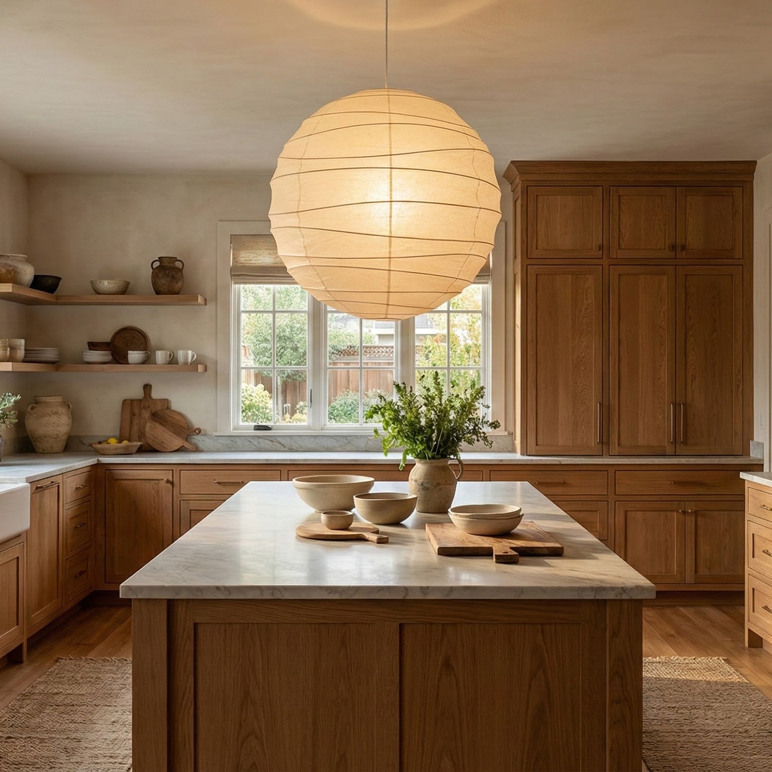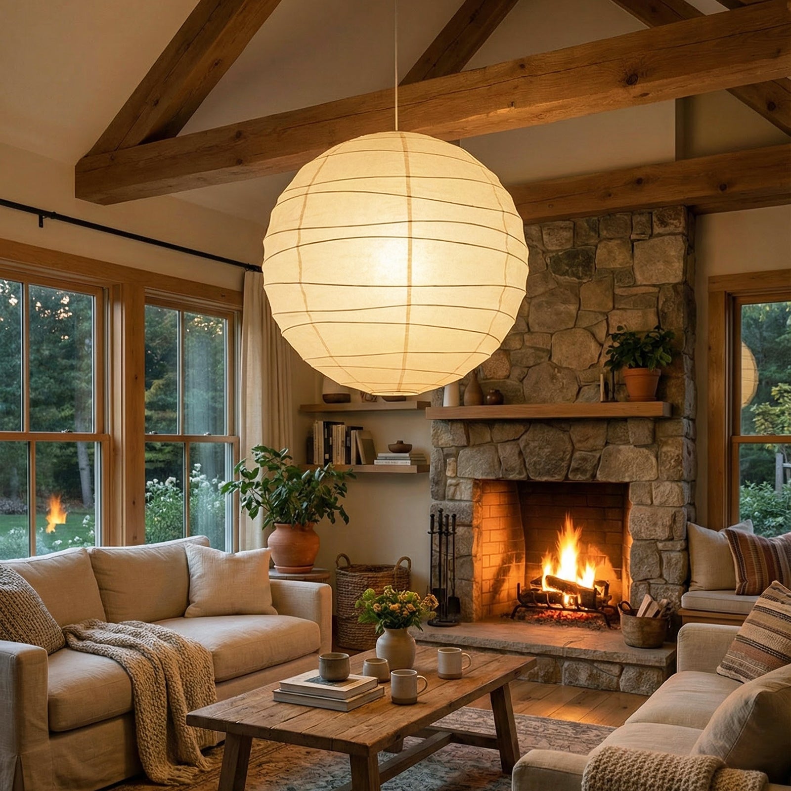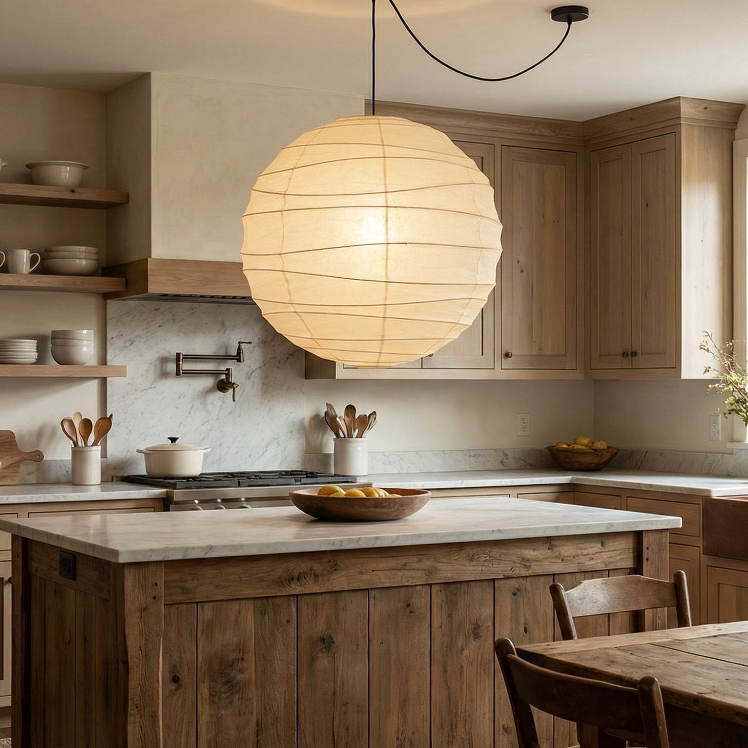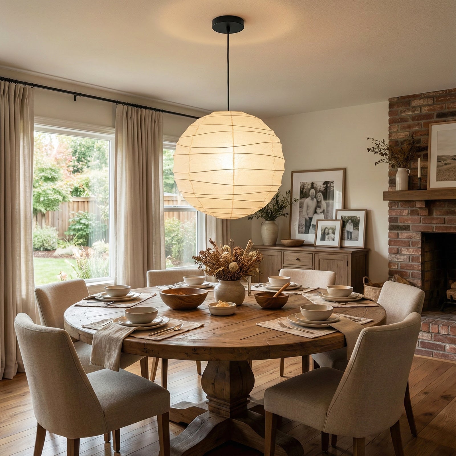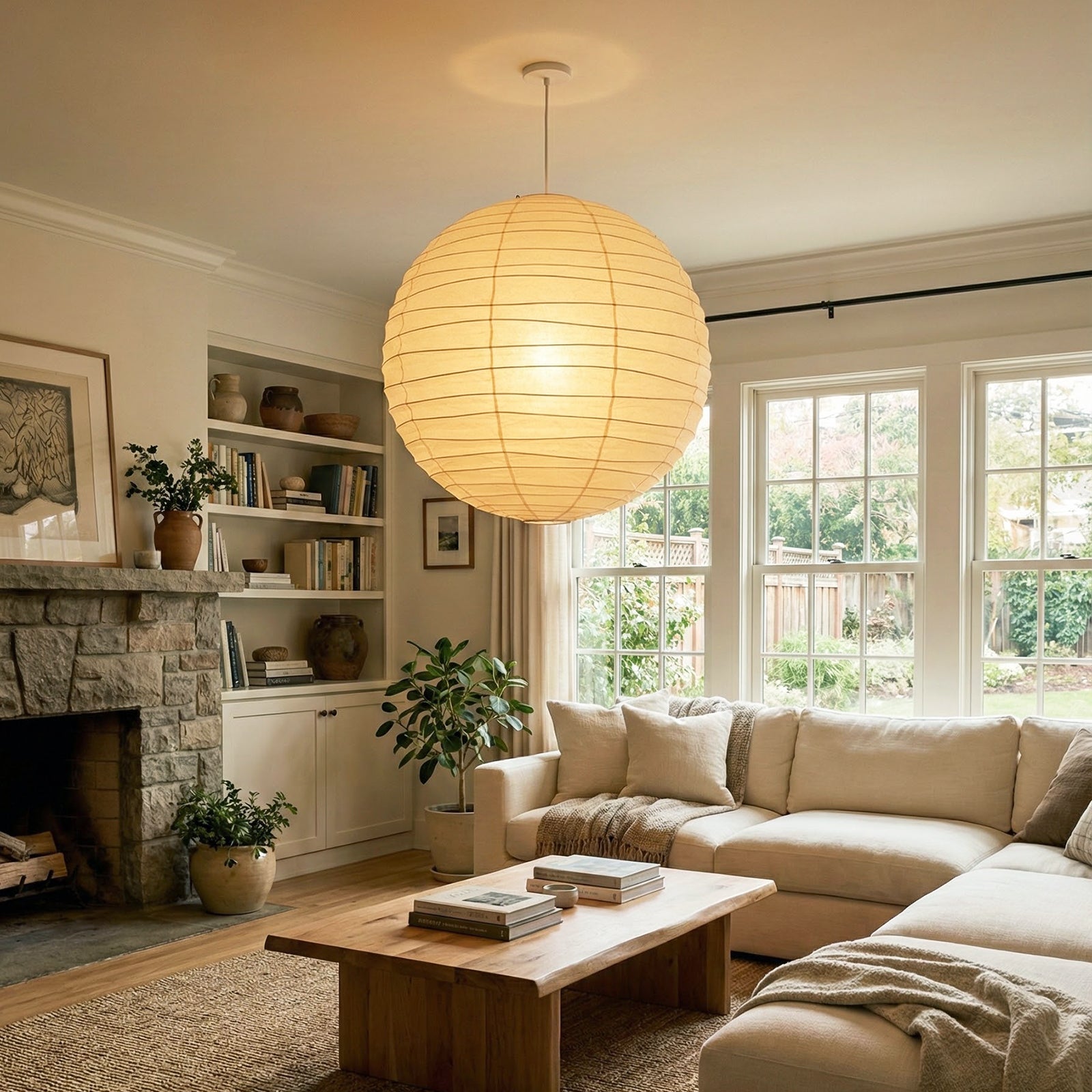 Explore the timeless charm of the Spherical D Series Paper Pendant Light and experience the perfect blend of traditional craftsmanship and modern design. These two lamps are ideal for creating a sense of grandeur in any space. They are the visual centerpiece of living rooms, bedrooms, or modern minimalist dining rooms, perfectly balancing the warm and cool tones of the space. They are ideal as a central light source in large spaces, creating a warm and inviting atmosphere.