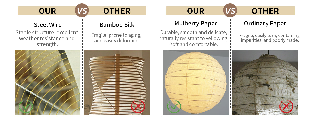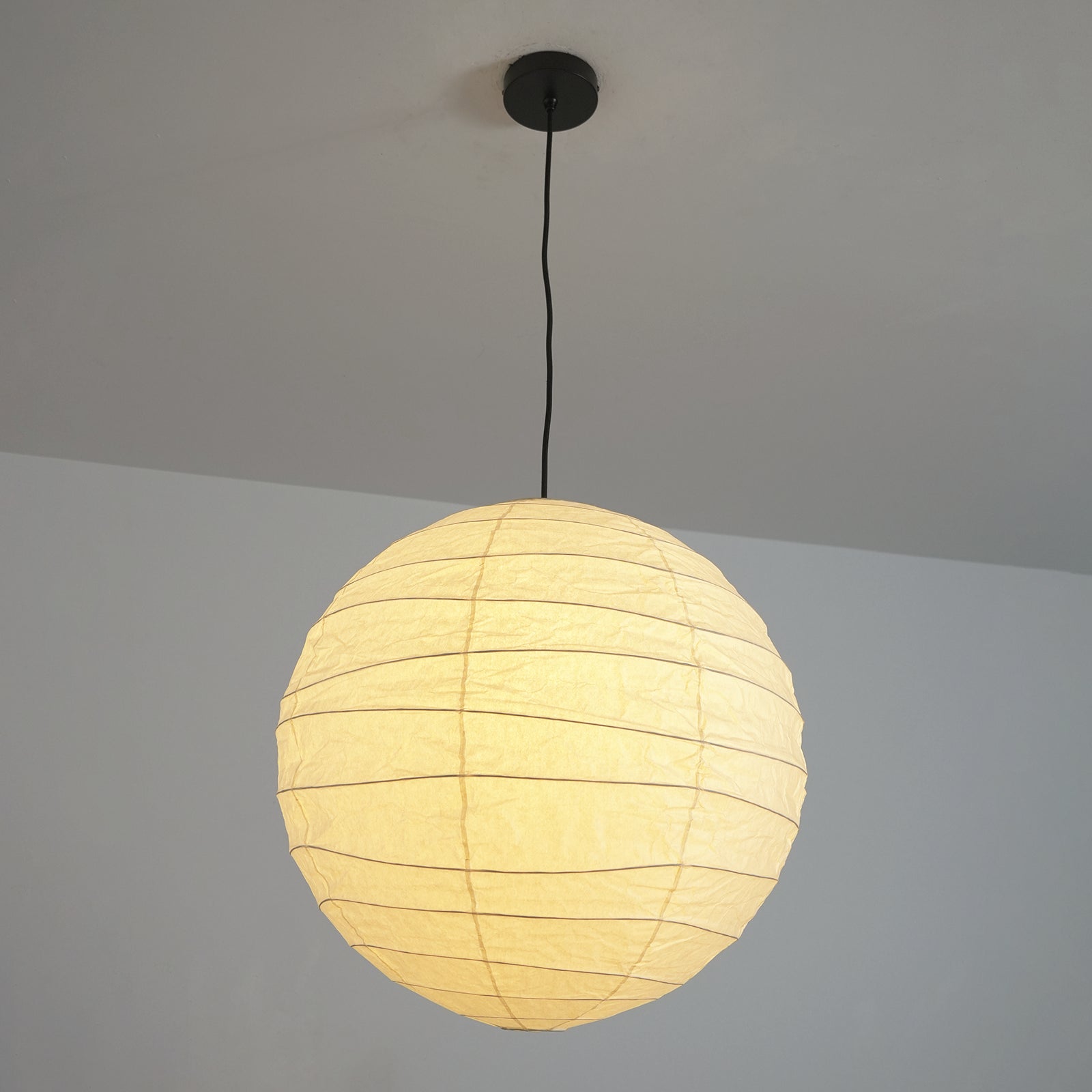 Each lamp is handcrafted from high-quality mulberry paper. The paper's unique translucent texture and irregular horizontal fibers showcase a natural and pure artistic quality. While maintaining a lightweight visual effect, it ensures the stability and long-lasting durability of the design. It emits an extremely soft, diffused light. Its simple yet elegant design adds a sense of tranquil brilliance to any space.