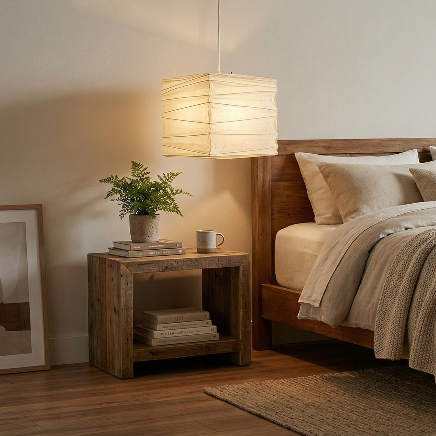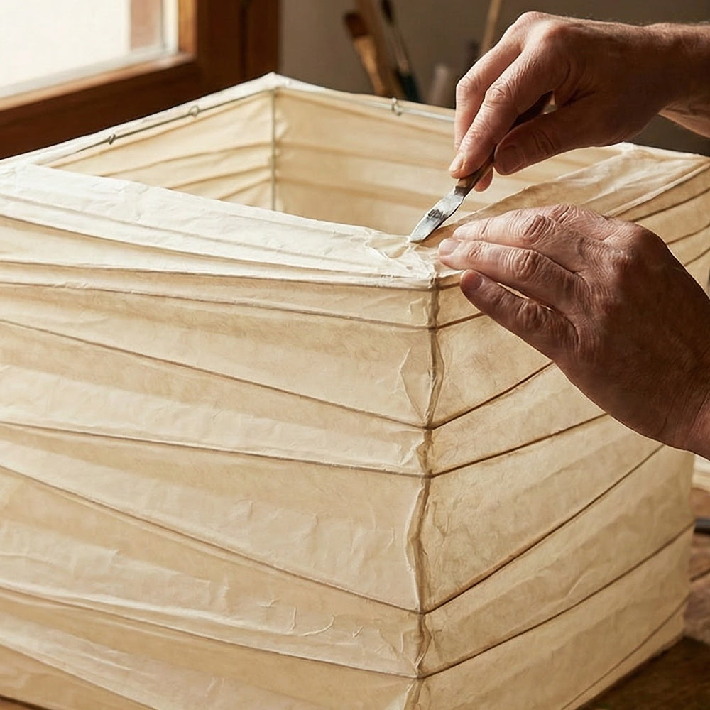 Each lampshade is meticulously crafted from durable paper. The textured structure not only enhances durability but also creates a captivating visual and tactile experience, showcasing a rich handcrafted feel. The simple square/cube silhouette is a tribute to minimalism. This regular and pure form allows it to easily integrate into various spaces, from modern apartments to traditional settings. Light diffuses softly through the natural paper fibers, casting a warm and comfortable glow that instantly softens the harshness of any space, infusing any room with a sense of tranquility.