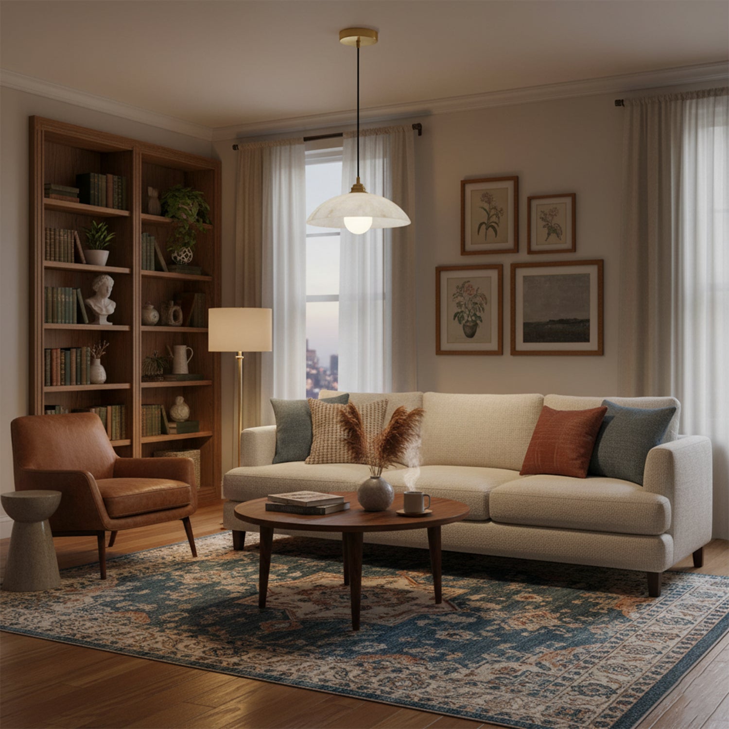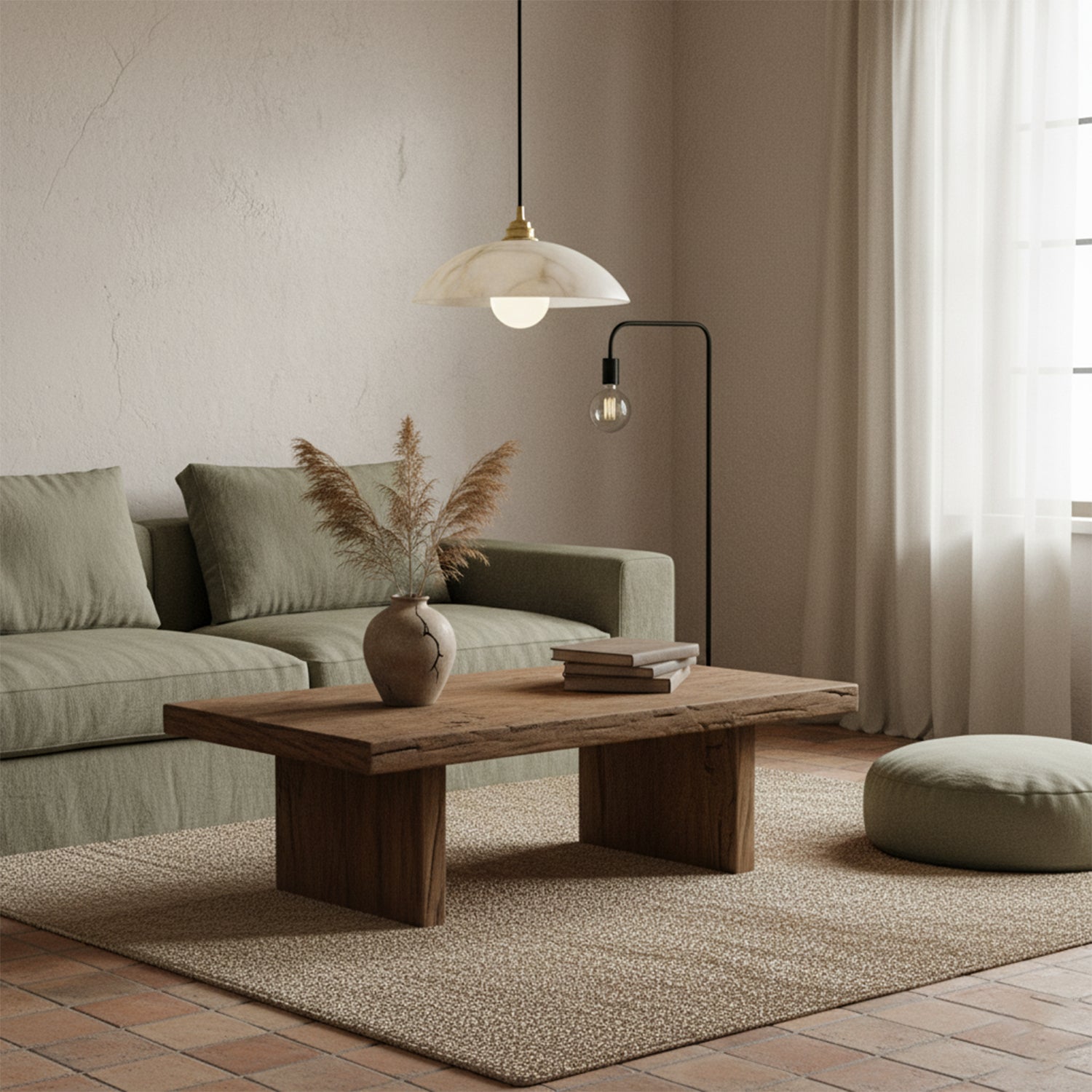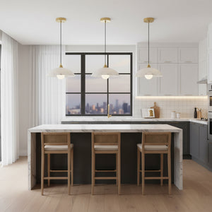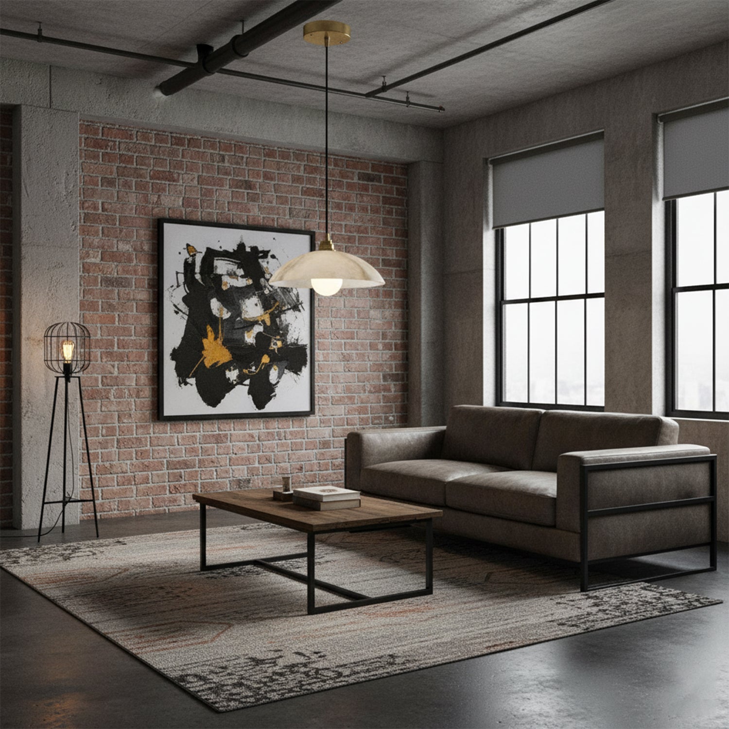 This exquisite pendant light offers an aura of understated luxury and tranquility, perfectly suited for modern, minimalist, or Nordic-inspired interiors. The design is elegantly simple: a shallow, dome-shaped shade suspended by a dark cord. The shade is crafted from natural alabaster, a translucent stone that beautifully diffuses the light, highlighting its subtle, unique veining. A small, refined brass accent connects the shade to the cord, providing a touch of warm metallic contrast. When illuminated, the light filters through the stone to cast a soft, ambient glow, making it ideal for defining a specific area such as a reading nook, a bedside table, or used in multiples over a kitchen counter.