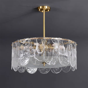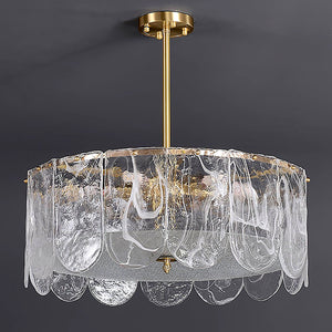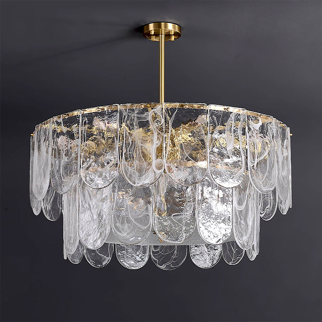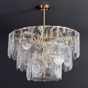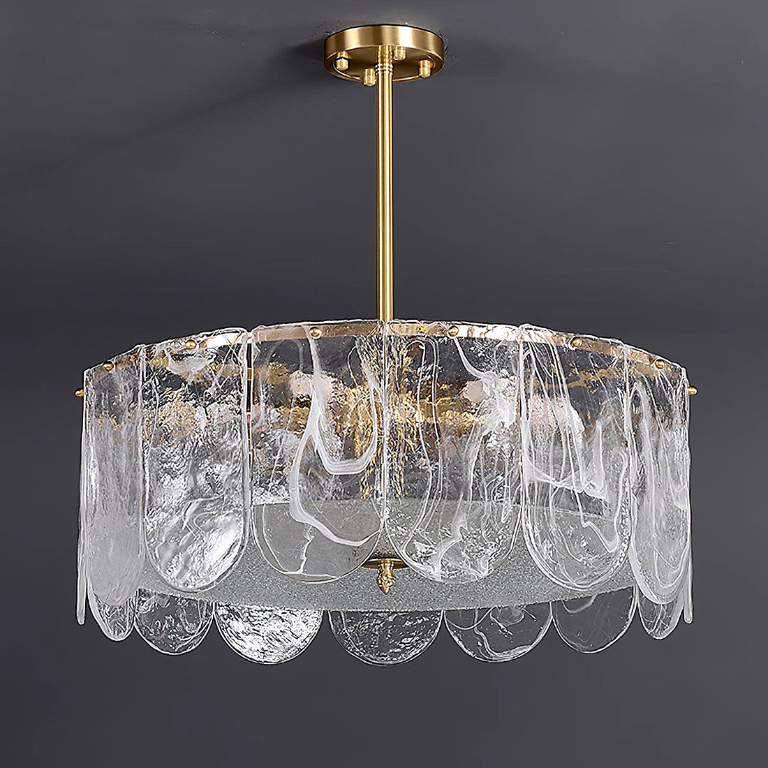 Features individual, hand-crafted glass panels with a unique flow-sand texture that creates a soft, mesmerizing light effect.