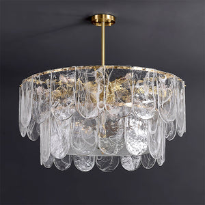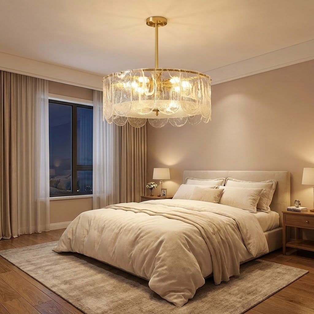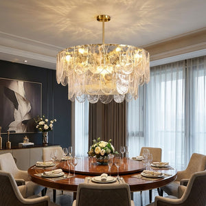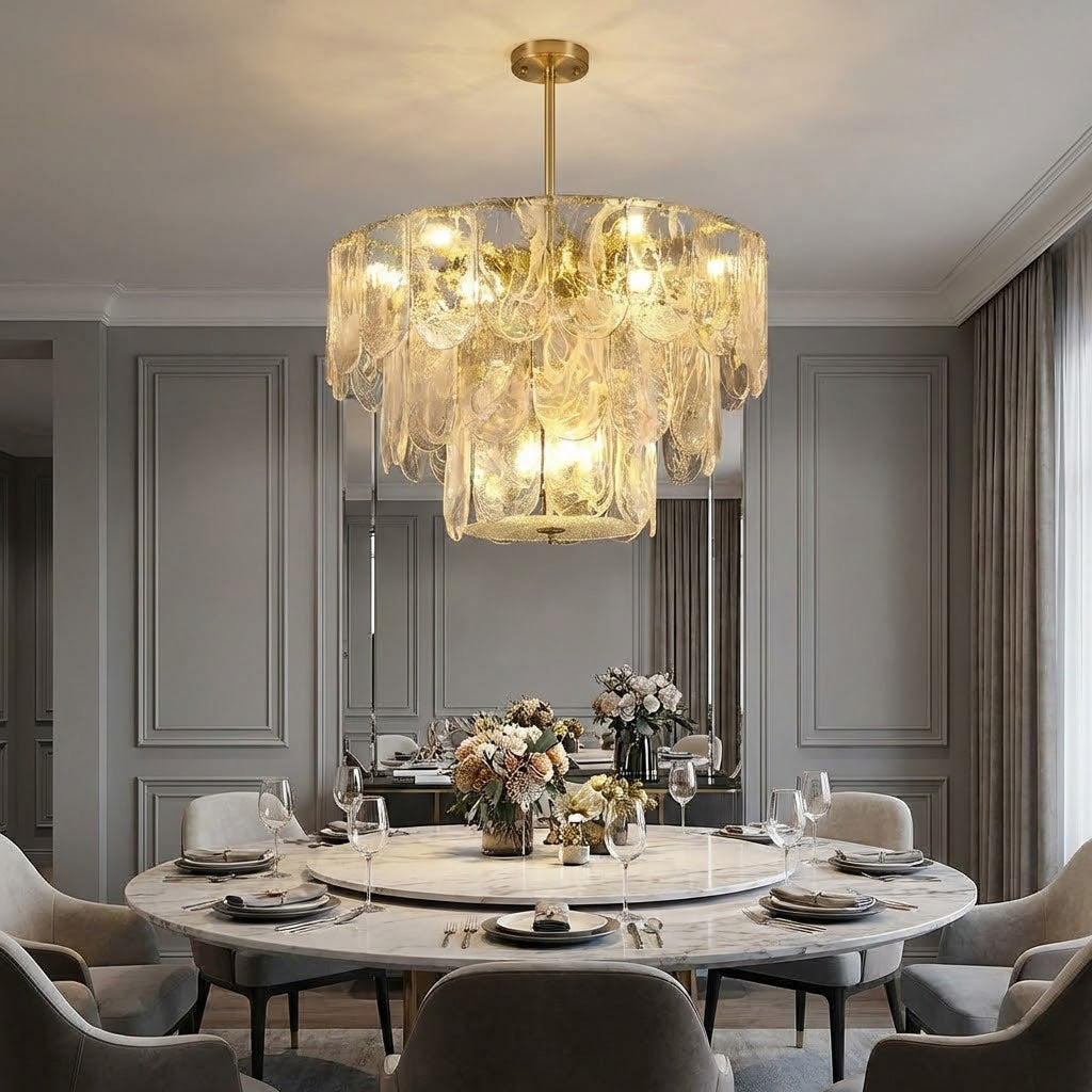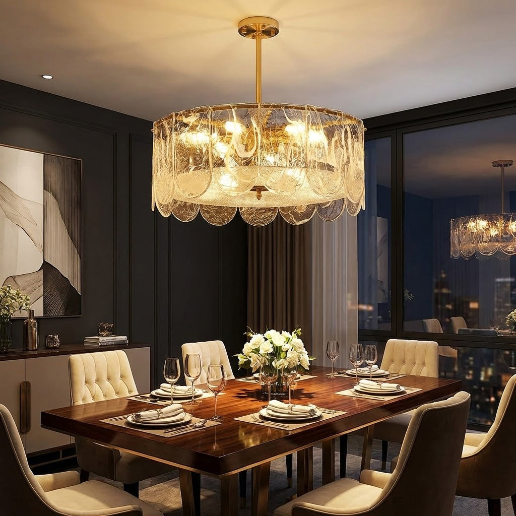 Metal arms support softly contoured glass shades that diffuse light evenly across the space, creating a comfortable and welcoming atmosphere. The glass reduces glare while maintaining practical brightness, making the chandelier well suited for everyday use as well as formal settings. Designed to balance function and refinement, it delivers reliable illumination with a calm, timeless presence.