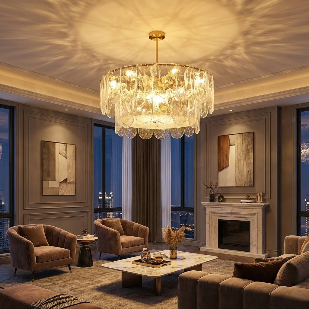 This luxurious chandelier acts as a stunning centerpiece, instantly elevating the style and ambiance of your living space.