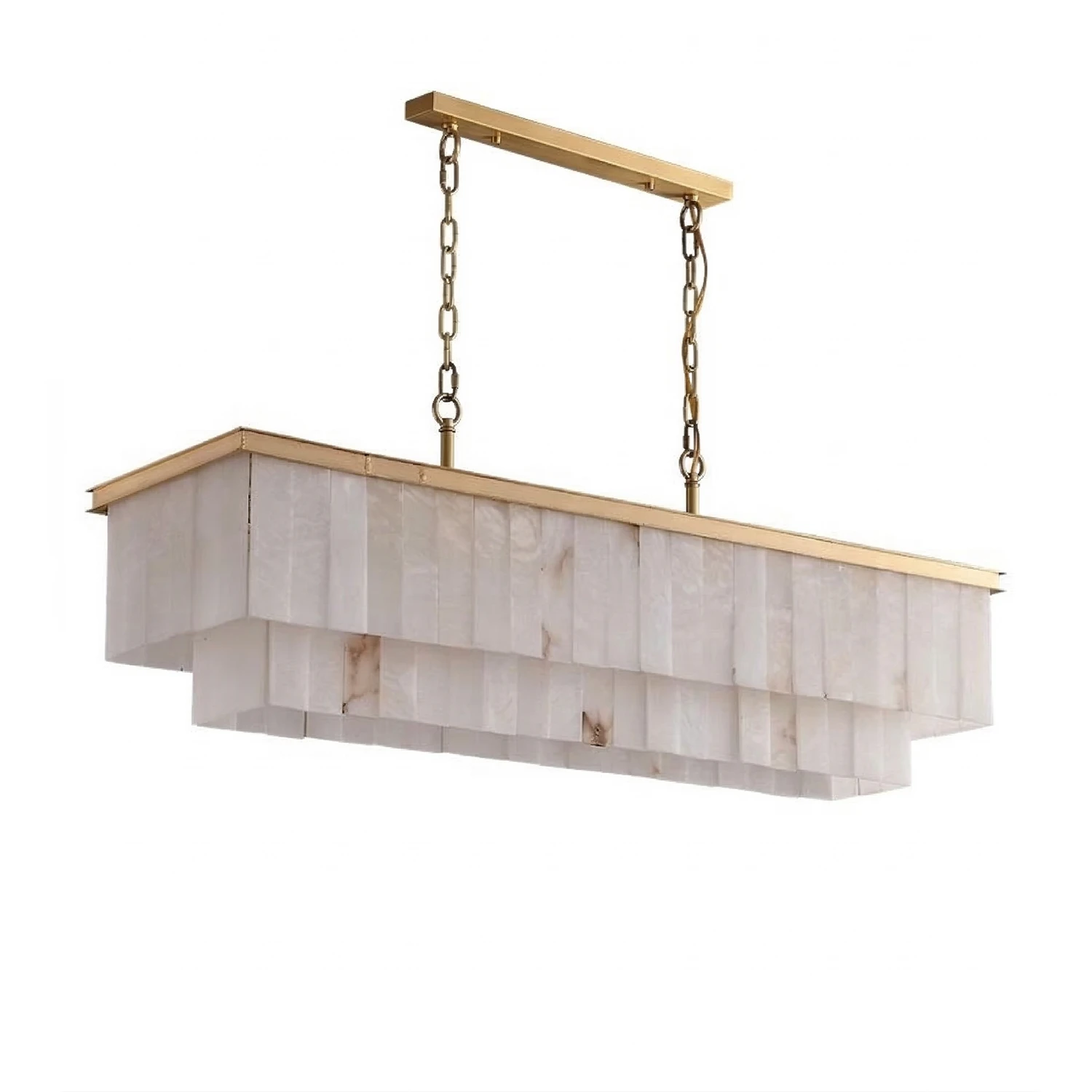 Whether you are looking for a rectangular alabaster dining room chandelier or a round multi-layer marble chandelier to decorate your living room or bedroom, this chandelier will add a timeless touch to any modern luxury home. The translucent nature of natural alabaster creates a soft, ambient light, making it a perfect finishing touch for both medieval-modern styles and contemporary interior design.