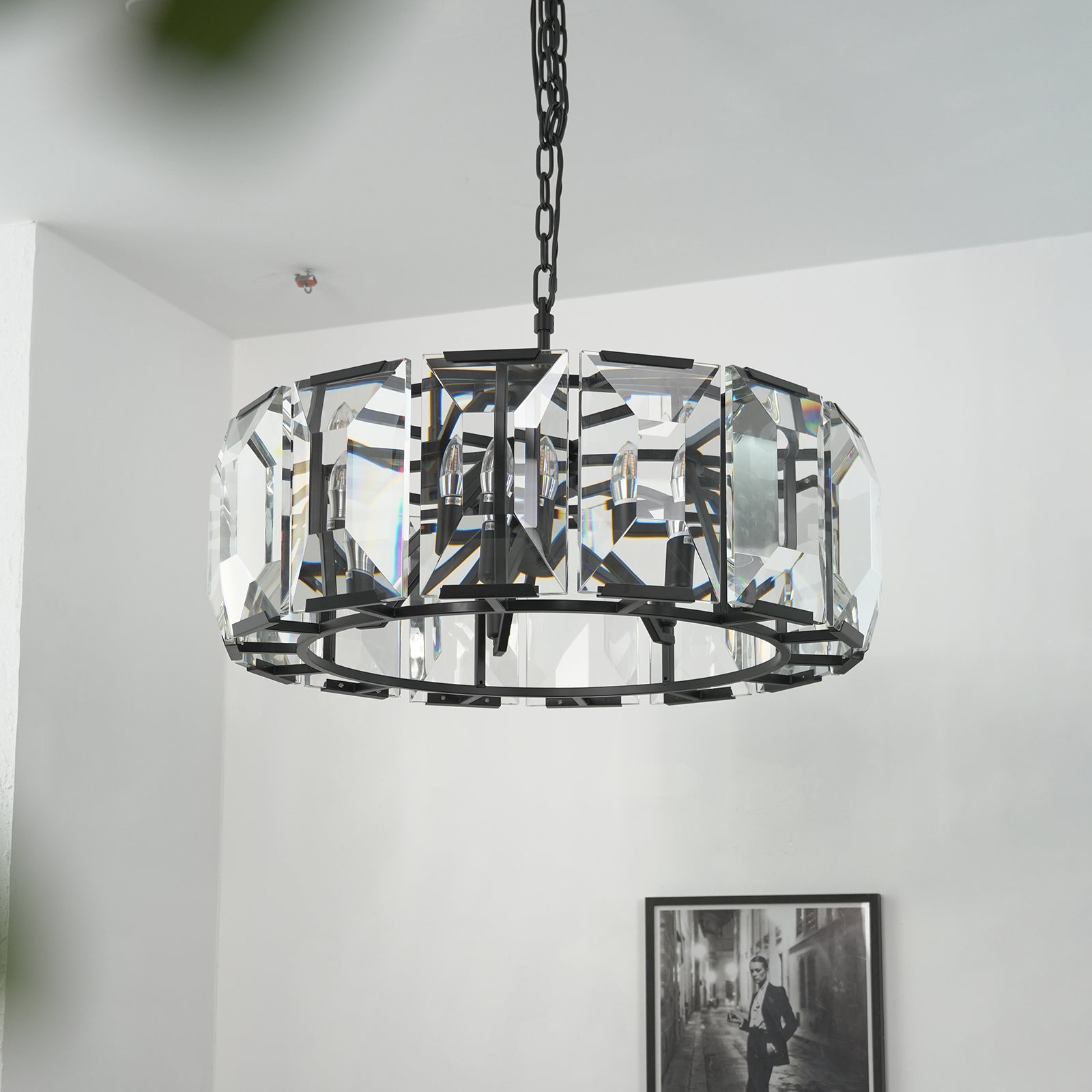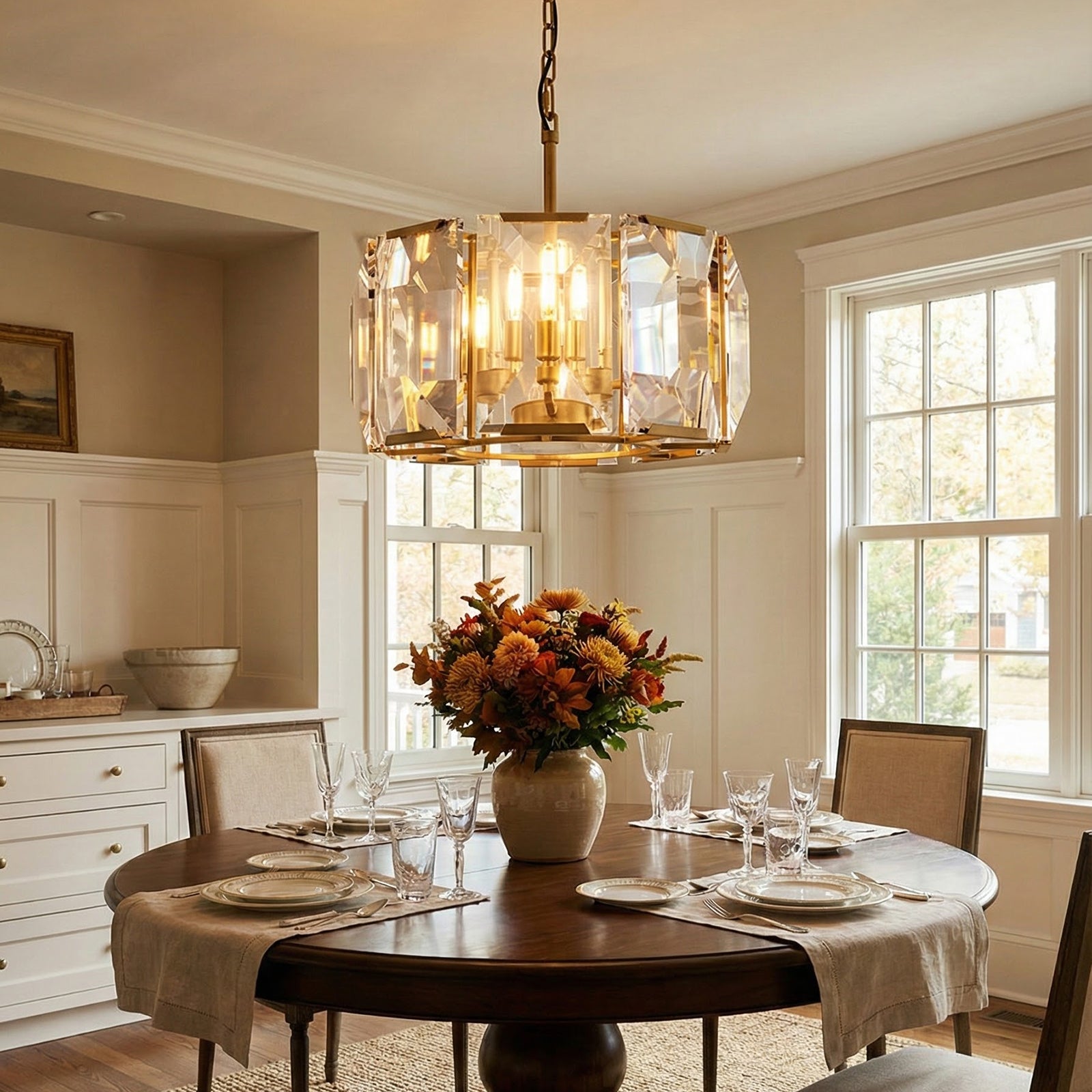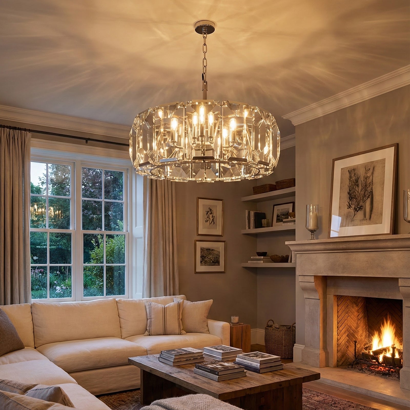 Crafted from high-quality K9 crystal and a brass frame, each crystal panel is precisely geometrically cut, showcasing its transparent refractive index, which complements the substantial brass base. The chandelier features neatly arranged crystal layers, creating a stable circular silhouette. Through minimalist lines, it displays a subtle yet luxurious modern aesthetic, adding timeless artistic charm to the space. Utilizing the superior light transmission and control properties of the crystal, light penetrates the multiple layers, creating captivating refraction and emitting an exceptionally brilliant and even warm light. This design effectively eliminates harsh shadows, creating a warm, inviting, and sophisticated home environment.