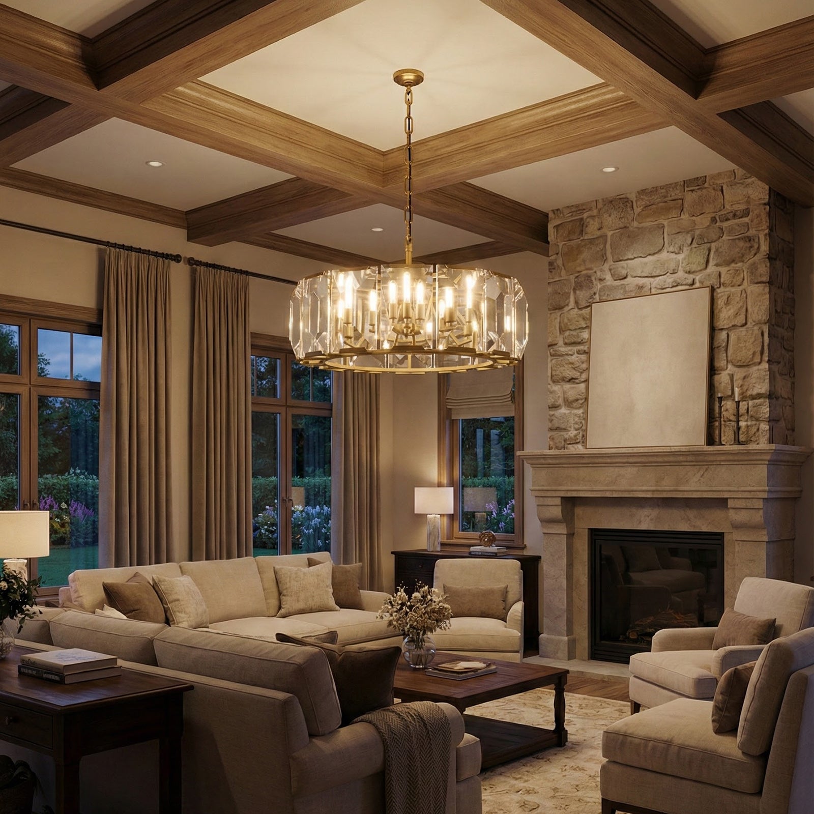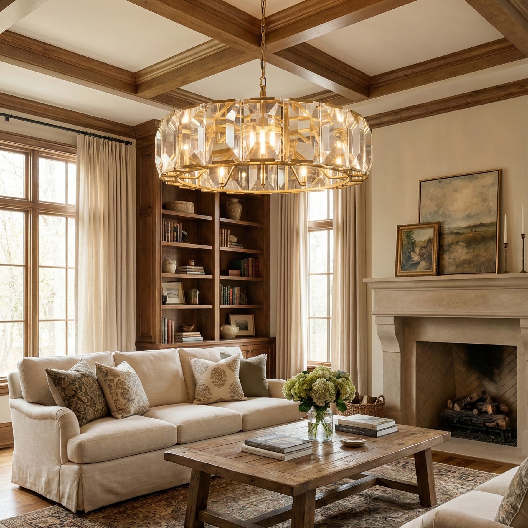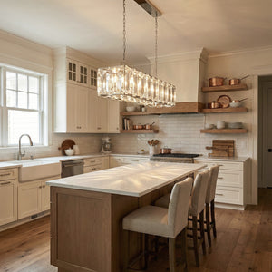 The Round Crystal Calcite Chandelier perfectly blends exceptional taste with modern elegance. This chandelier is more than just a lighting fixture; it's a geometric representation of light and shadow art. It's an ideal choice for hanging above a round table, in the center of a living room, or as an accent piece in a large space. It perfectly complements modern mansions, French-style luxury interiors, or any space seeking a "refined luxury" feel. The multi-layered cylindrical structure perfectly balances the visual proportions of high-ceilinged spaces, acting as a visual anchor that elevates the overall ambiance.