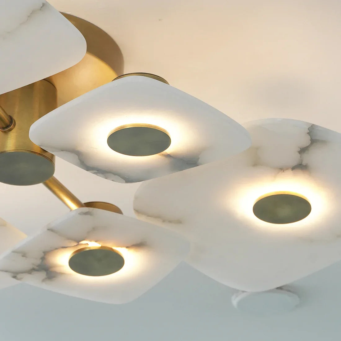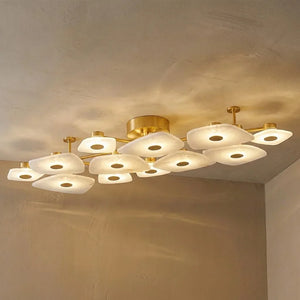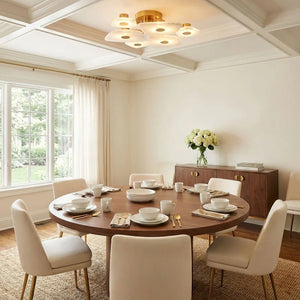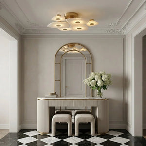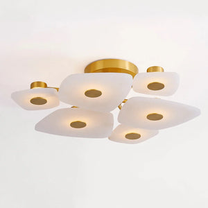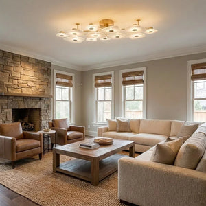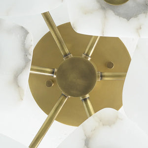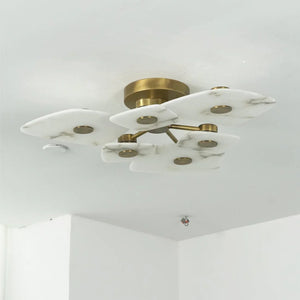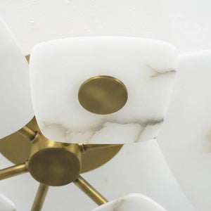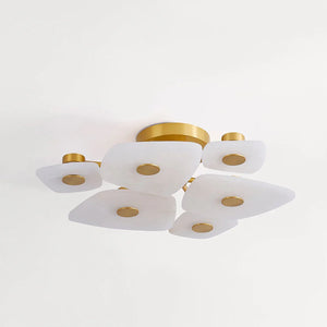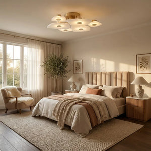 The Alabaster Petal Ceiling Light is shaped by overlapping, petal-inspired alabaster forms that create a gentle, sculptural profile close to the ceiling. Its balanced proportions make it ideal for bedrooms, corridors, and living areas where a refined yet unobtrusive statement is desired.
