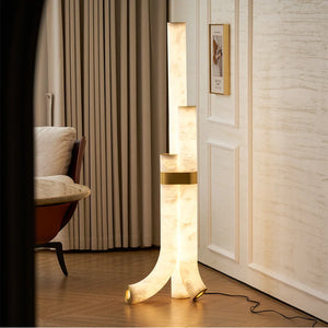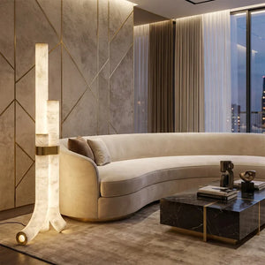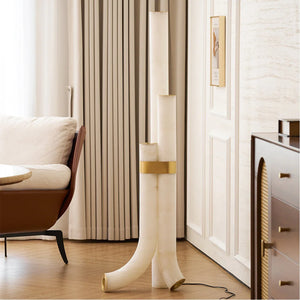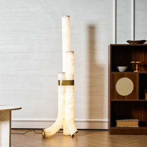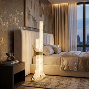 The Alabaster Tube Floor Lamp is defined by a slim, vertical silhouette that introduces a calm architectural accent to interior spaces. Its understated form makes it well suited for placement beside sofas, lounge chairs, or in quiet corners, where it adds presence without disrupting the surrounding layout.