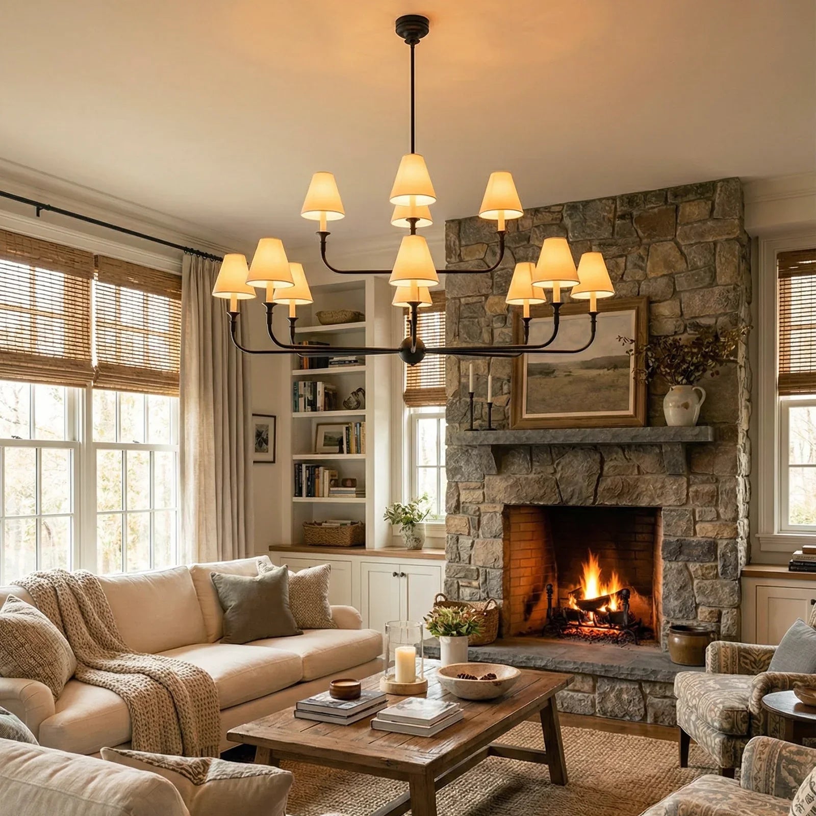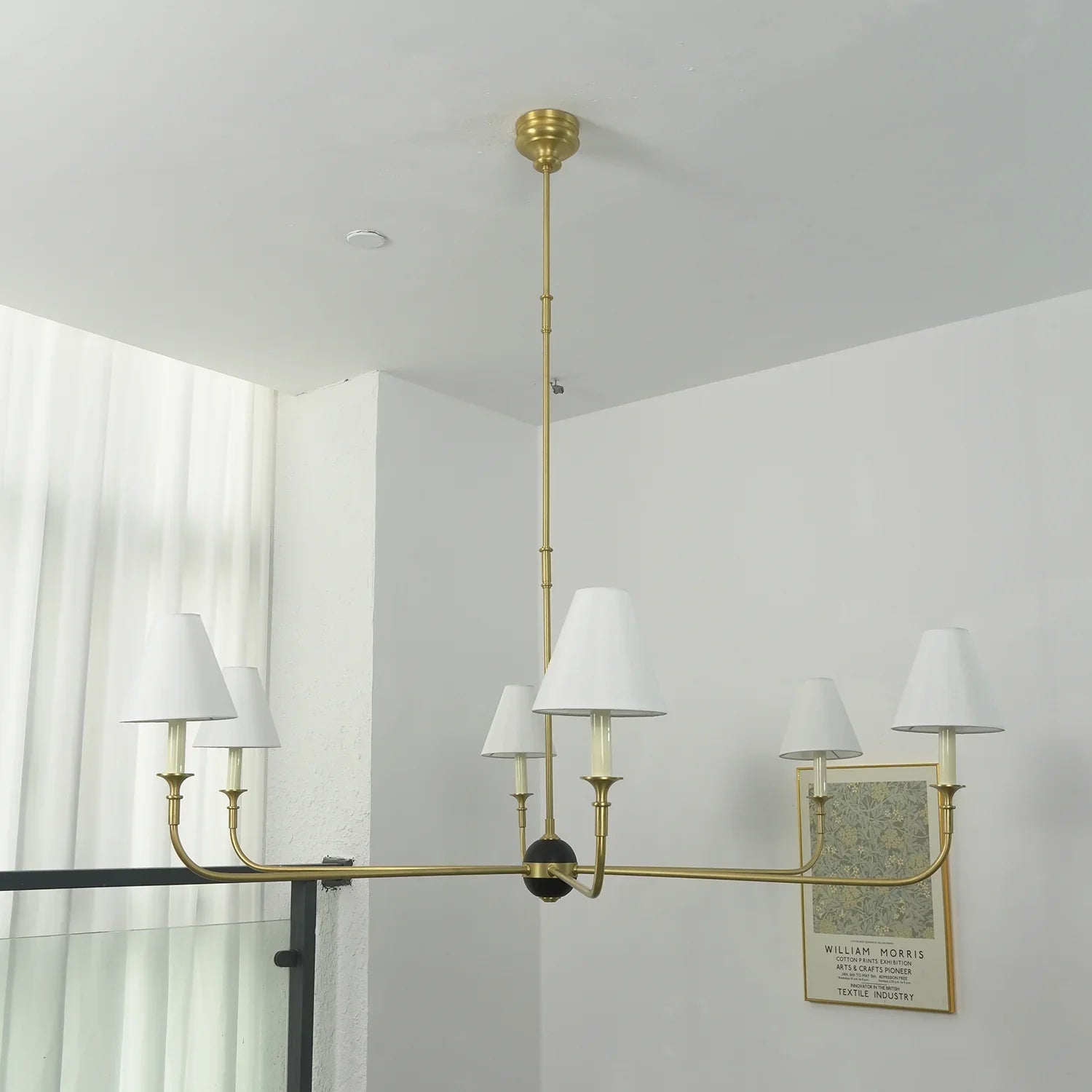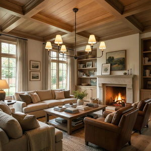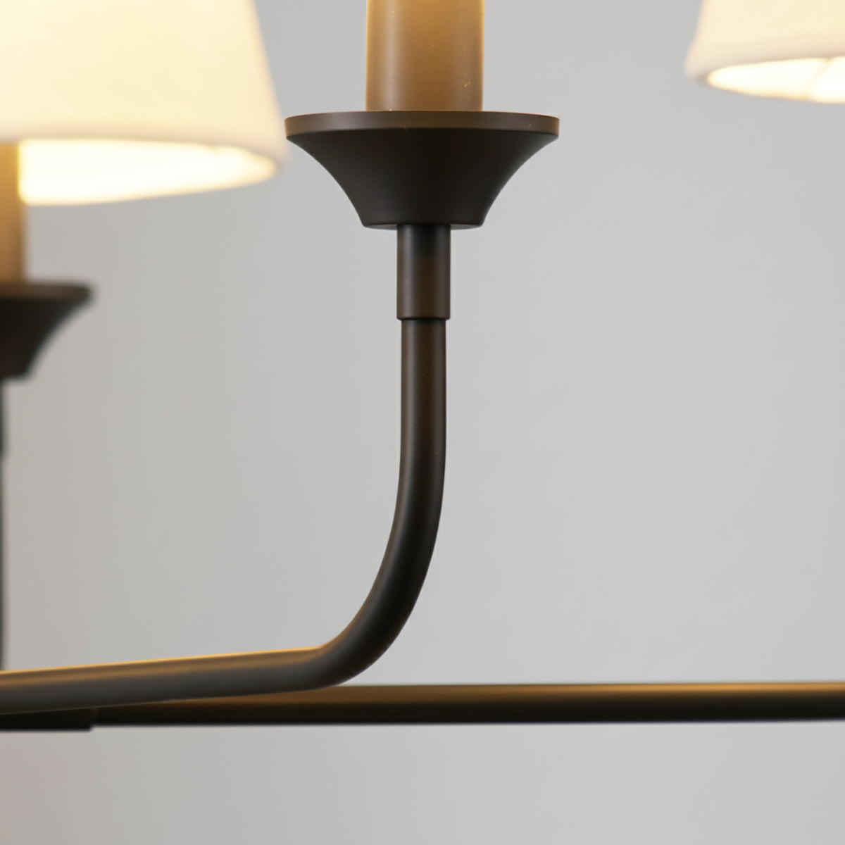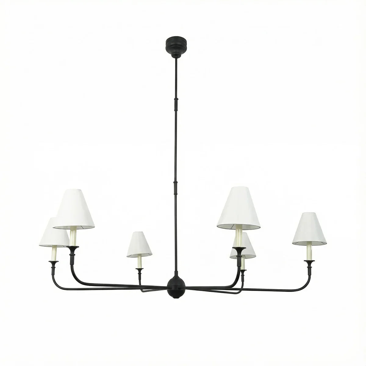 The Grande Multi Arm Conical Chandelier infuses your home with timeless elegance and high-end sophistication. More than just a lighting fixture, it's a refined interpretation of classic aesthetics and modern lifestyles. It serves as a visual focal point in dining rooms, living rooms, or commercial spaces, perfectly complementing French or American modern interior design. It boasts both strong decorative appeal and functionality. The contrast between the fabric lampshades and the copper frame creates a serene yet luxurious overall atmosphere when lit, effectively eliminating any sense of coldness in the space.