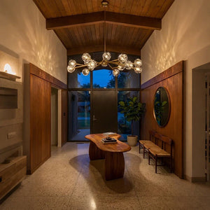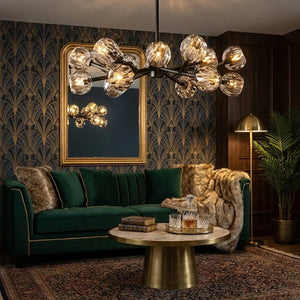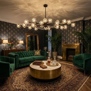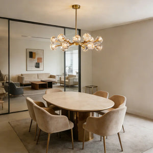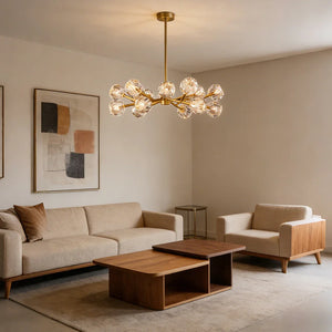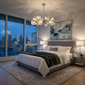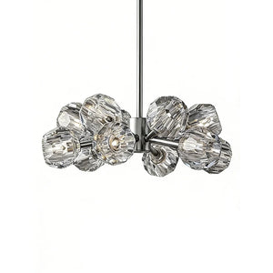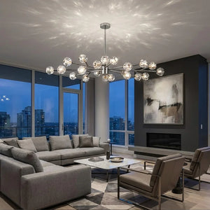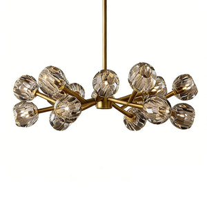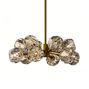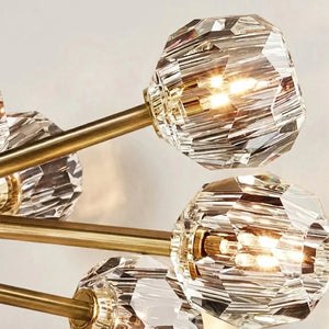The Hand-Cut Crystal Orb Branching Chandelier transforms any room with radiant sculptural flair. A constellation of finely faceted crystal spheres is set atop an expressive branching frame, creating a layered silhouette that feels both modern and artful. Each crystal orb catches and reflects light with a shimmering brilliance, filling your space with a warm, luminous glow that dances from every angle. Suspended from the ceiling, this chandelier becomes an elegant centerpiece for dining rooms, grand foyers, or living areas, blending refined craftsmanship with captivating presence for interiors that demand both beauty and impact.