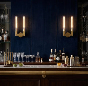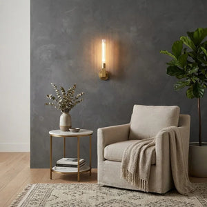 The Modern Linear Brass & Glass Wall Light features a sleek linear silhouette that brings understated elegance to modern interiors. Its slim proportions and warm brass finish create a refined wall accent ideal for hallways, bedrooms, or living spaces, blending effortlessly into contemporary and minimalist settings.