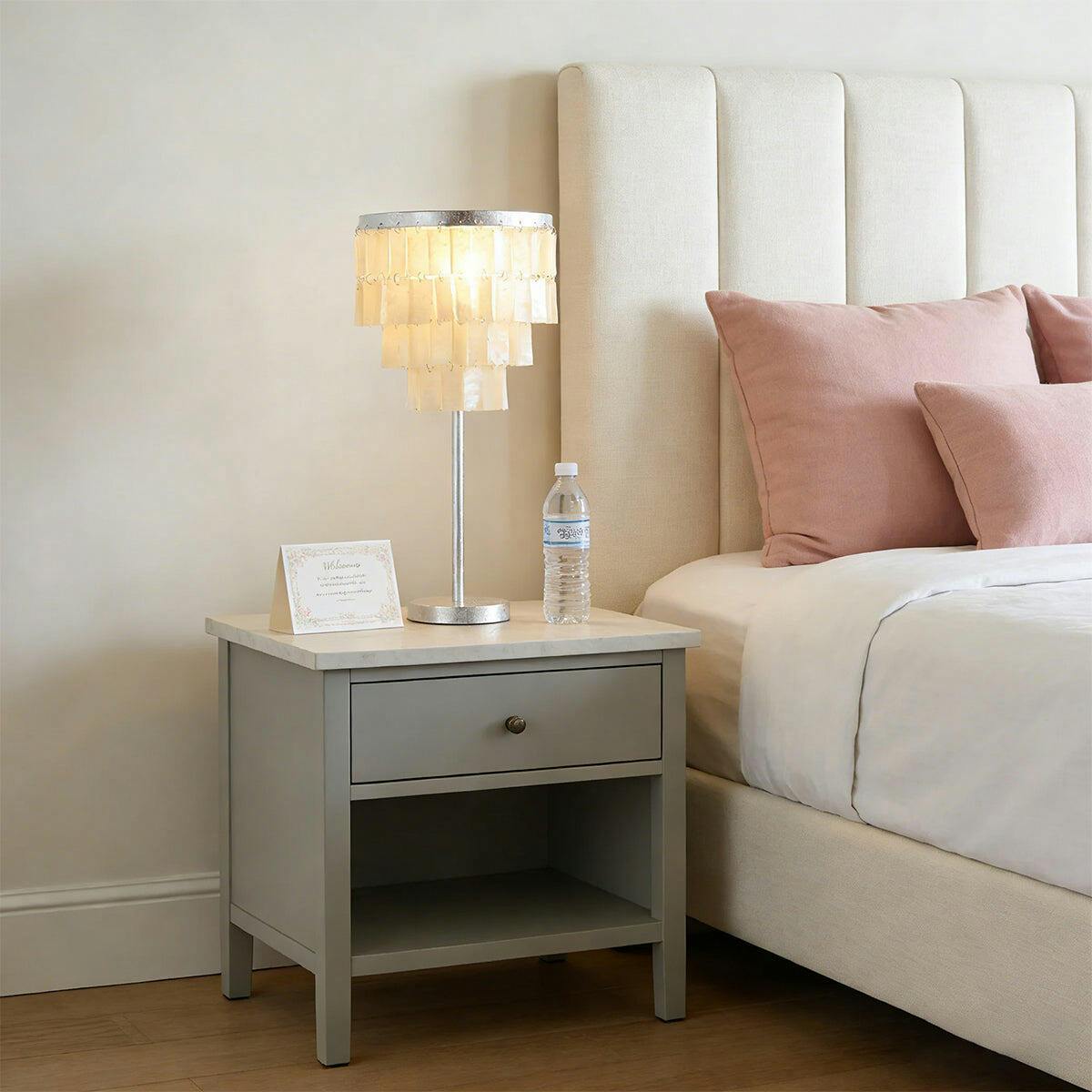 Illuminate your home with this striking rectangular shell waterfall table lamp, bringing unparalleled elegance and unique charm. Inspired by the tranquility of nature and the shimmering beauty of waterfalls, this lamp, with its exquisite craftsmanship and unique design, injects a touch of artistic flair into any room. Composed of layers of meticulously arranged rectangular natural shell pieces, it cascades like a cascading waterfall. When illuminated, light filters through the translucent shells, creating a soft and layered play of light and shadow, creating a warm and dynamic visual experience.