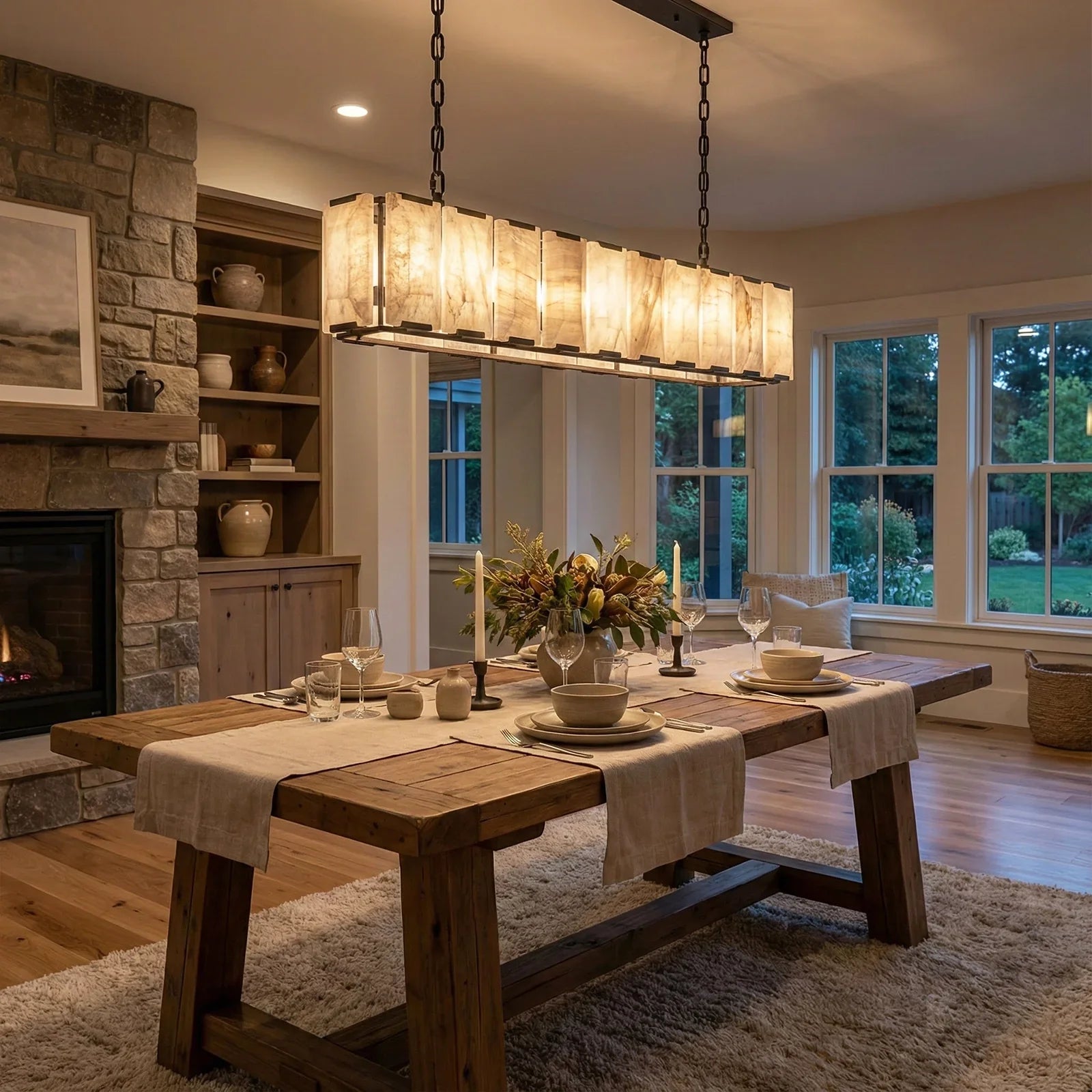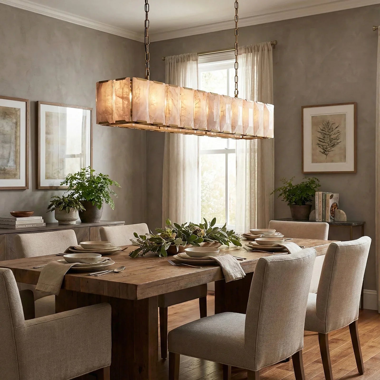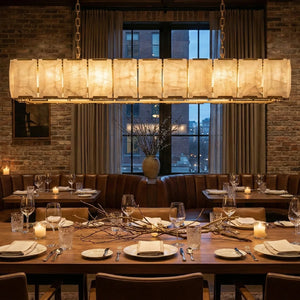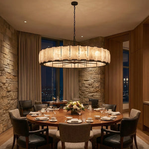 The Round Alabaster Chandelier perfectly blends exquisite taste with modern elegance. This chandelier is more than just a lighting fixture; it's an artistic embodiment of natural light and shadow. It's ideal for hanging above a round table, in the center of a living room, or as an atmospheric accent in large spaces.