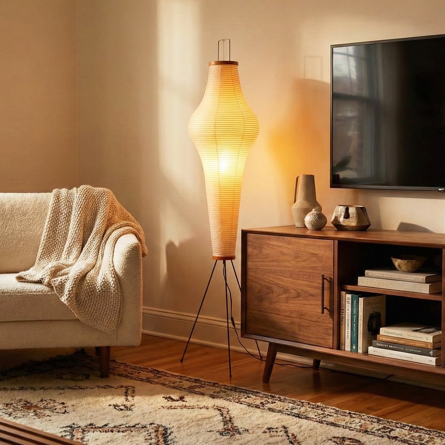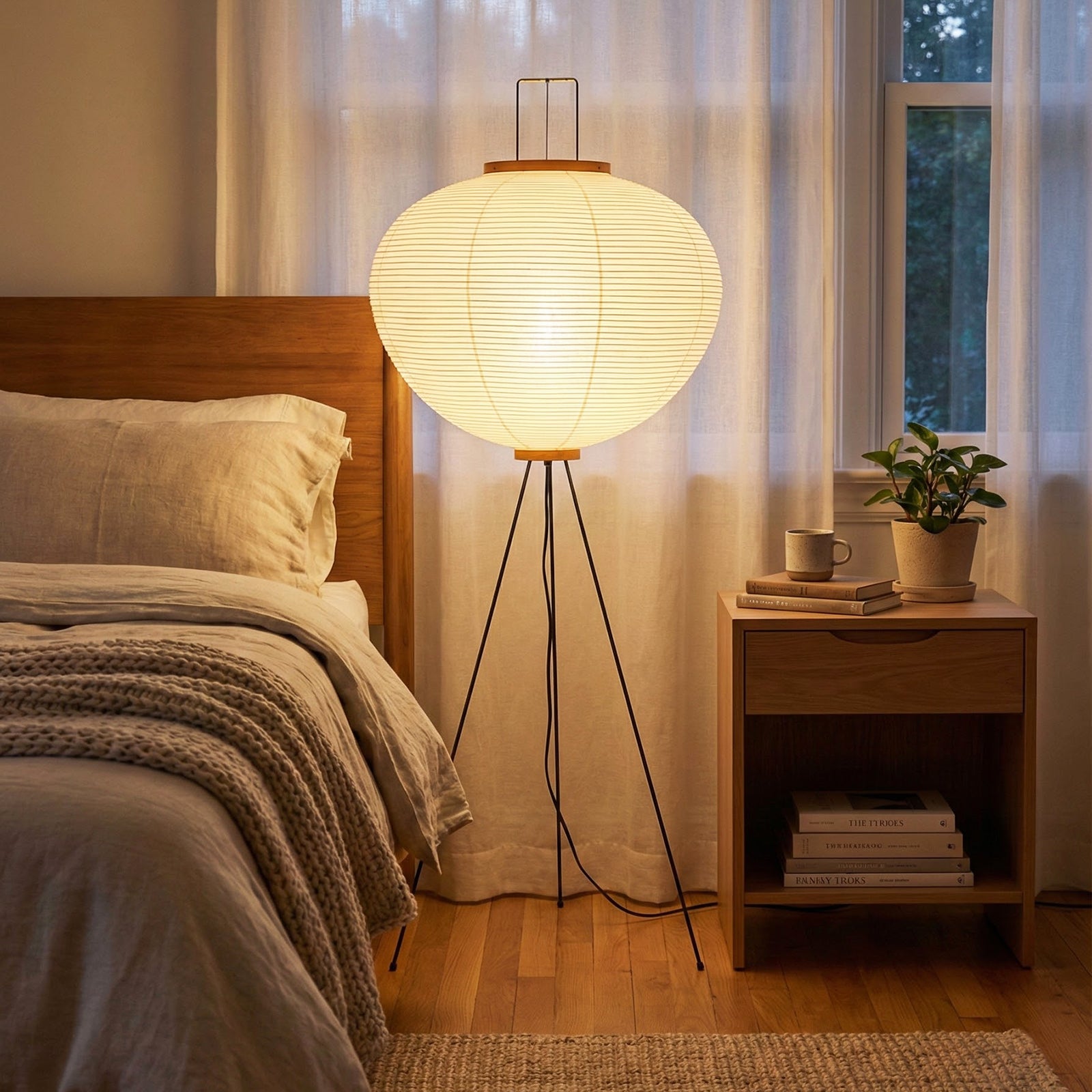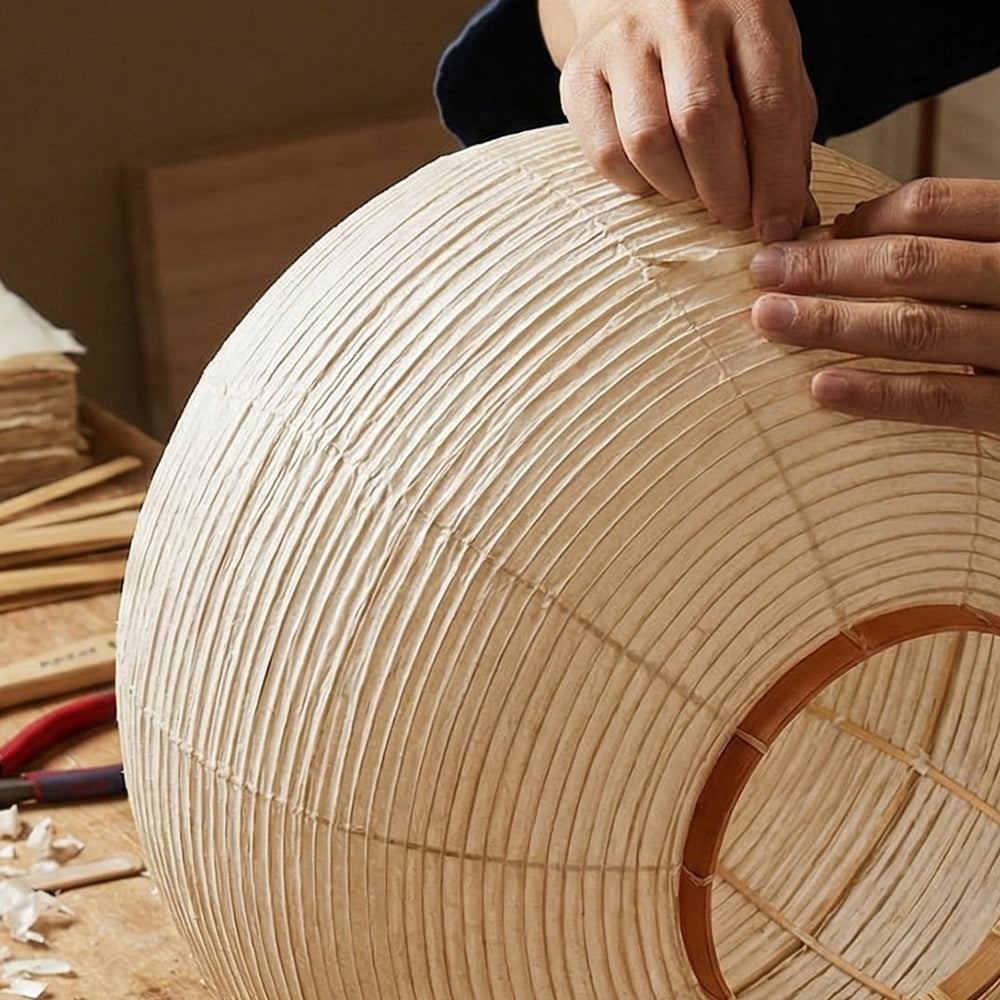 It features a delicate steel wire frame wrapped in finely textured handmade mulberry paper. The use of this traditional material blends timeless artistic beauty with understated elegance. As a sculptural decorative piece, its simple lines and organic form transcend simple lighting functionality, becoming a captivating visual focal point in any interior space. The light diffuses softly through the paper fibers, creating a tranquil, relaxing, and Zen-like home atmosphere, instantly elevating the style of the space.