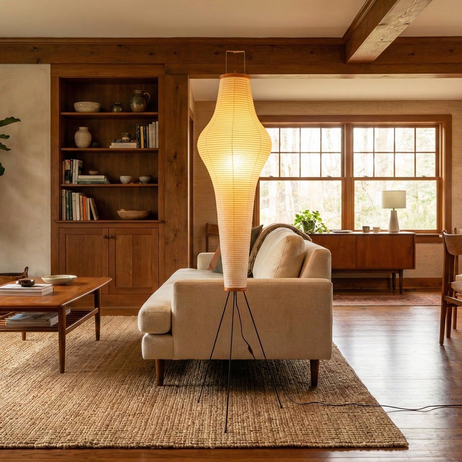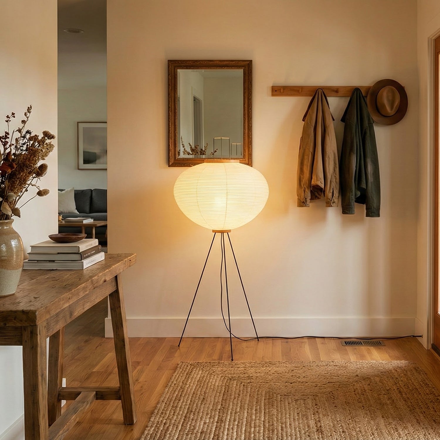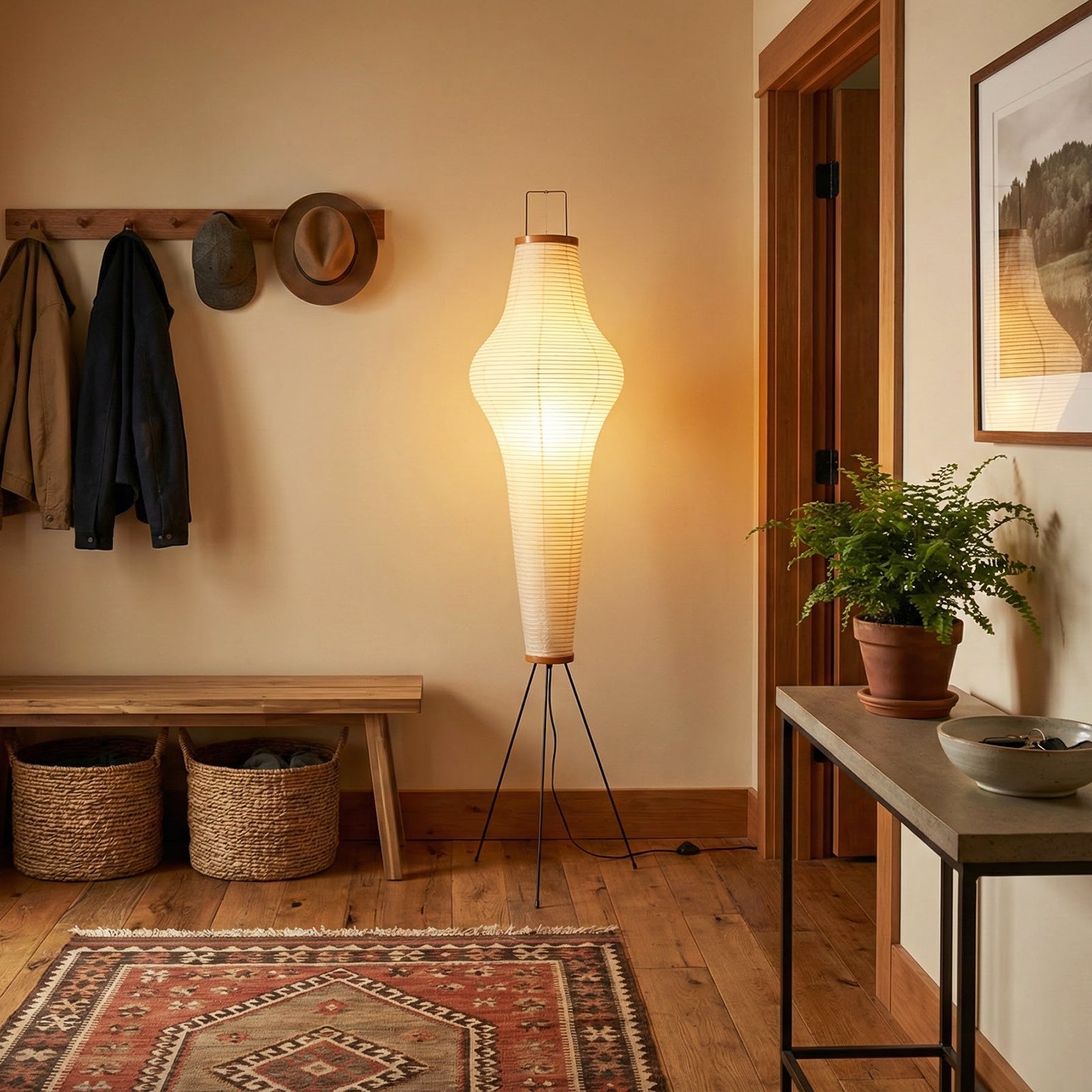 It features a delicate steel wire frame wrapped in finely textured handmade mulberry paper. The use of this traditional material blends timeless artistic beauty with understated elegance. As a sculptural decorative piece, its simple lines and organic form transcend simple lighting functionality, becoming a captivating visual focal point in any interior space. The light diffuses softly through the paper fibers, creating a tranquil, relaxing, and Zen-like home atmosphere, instantly elevating the style of the space.