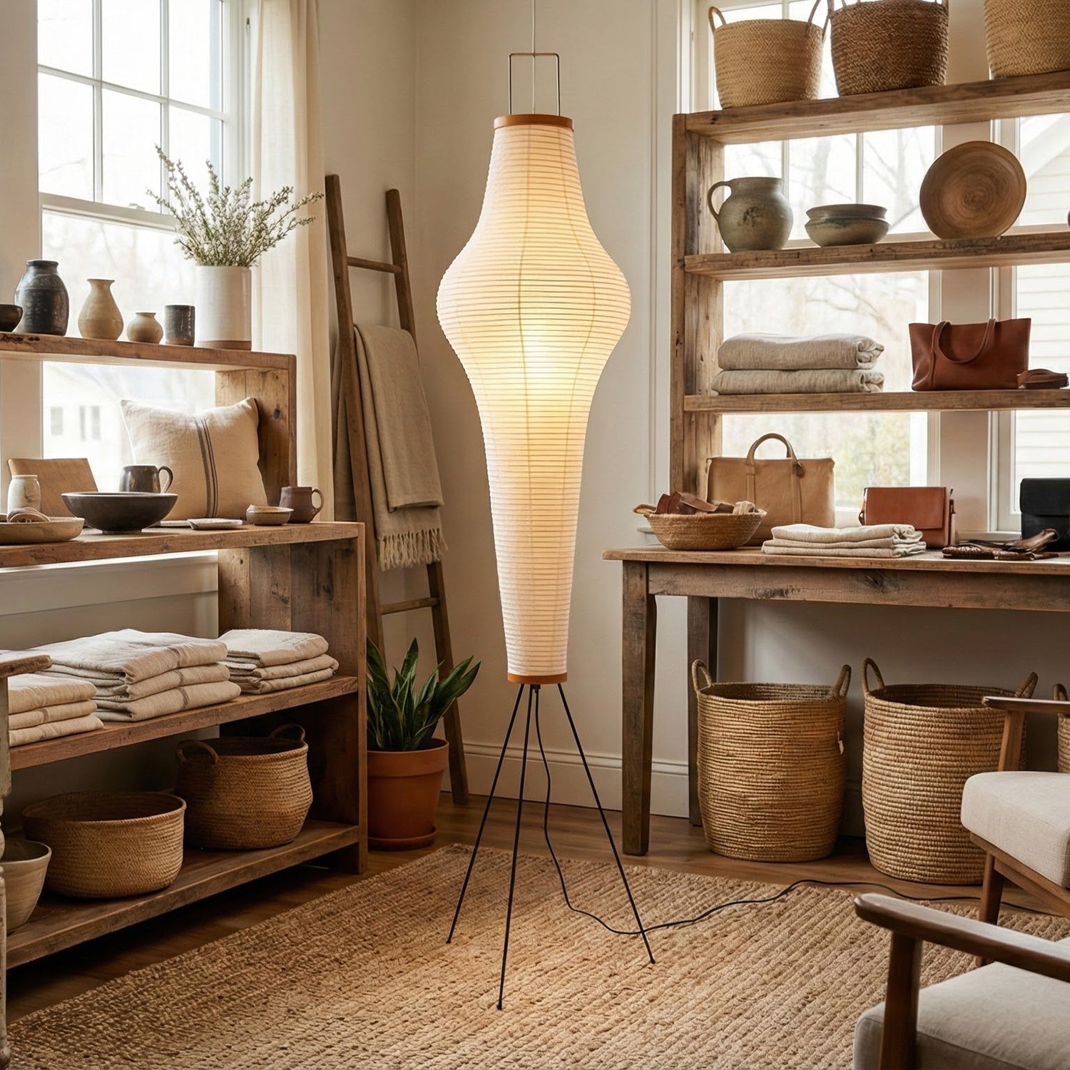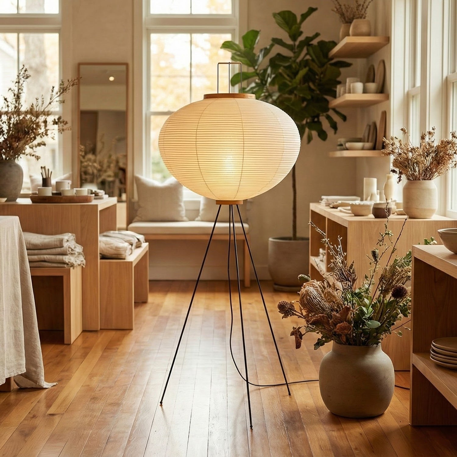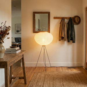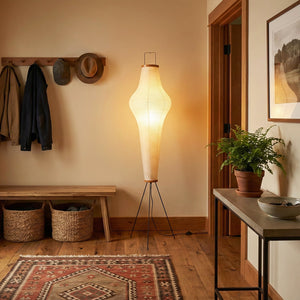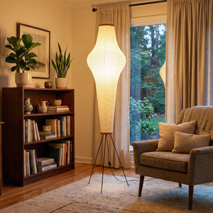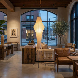 This Minimalist Paper Floor Lamp perfectly embodies the essence of "lightness" and "light and shadow" in both form and function.  It's not just a lamp, but a timeless work of art. Perfectly suited for natural wood-style home decor or design projects seeking a sense of tranquility, it's an essential item for creating a Zen-inspired space. Its minimalist footprint allows it to easily fit into corners, providing soft ambient lighting for sofa areas or reading nooks.