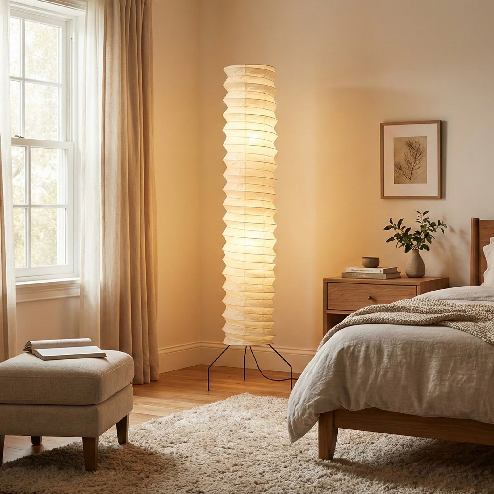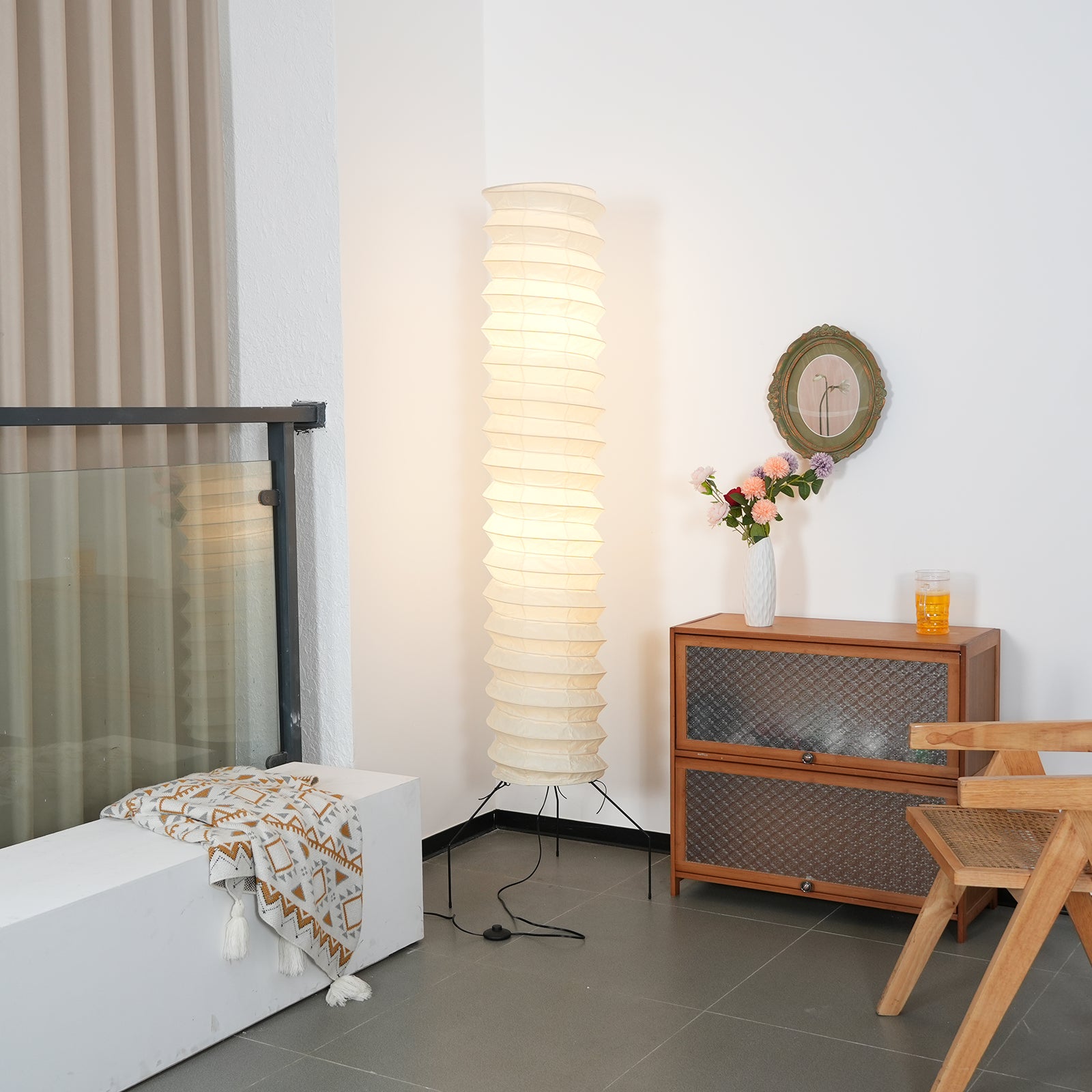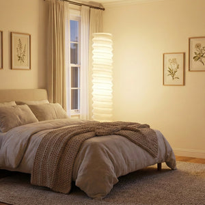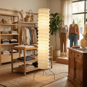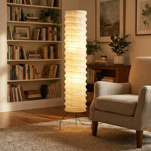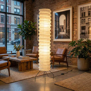 The Spiral UF4-31N Paper Floor Lamp is a luxurious and exquisite creation, its design embodying the delicate beauty of Japanese washi paper and the form of modern sculpture. It serves as an artistic focal point in living rooms, bedrooms, and studies, providing soft ambient lighting. Ideal for placement beside a sofa, bedside, or in an empty corner, this lamp offers a bright and airy aesthetic. The paper material ensures that the light is not harsh, making it perfect for creating a warm and relaxing home environment.