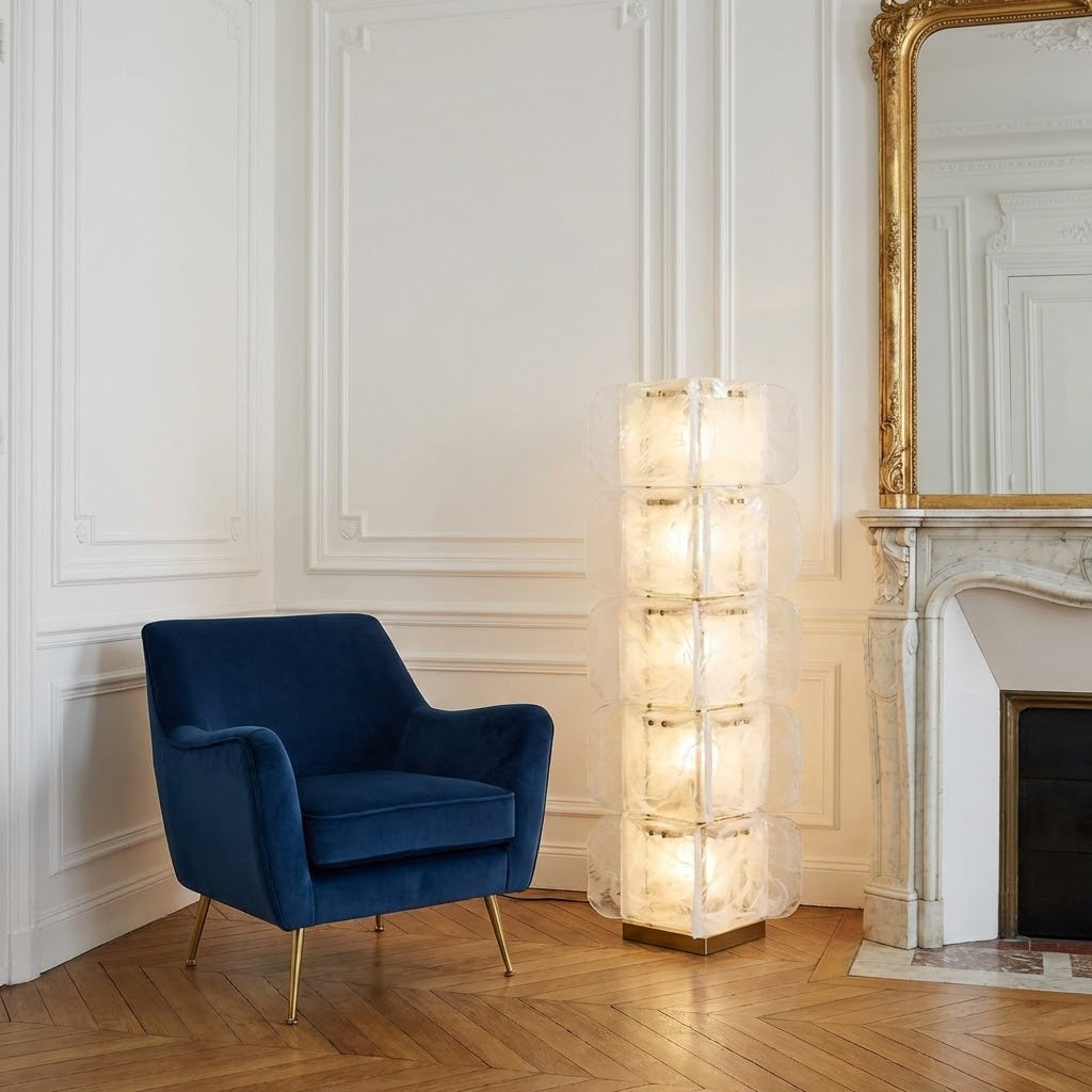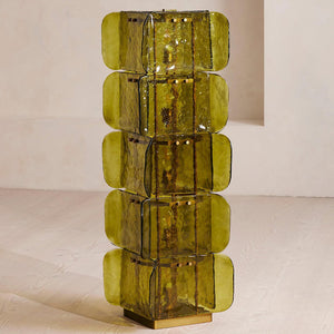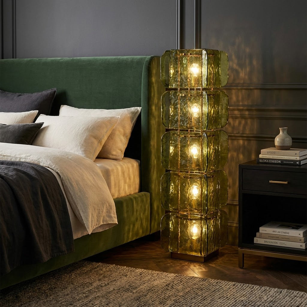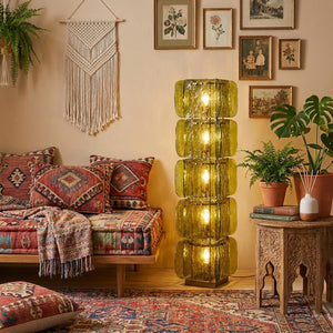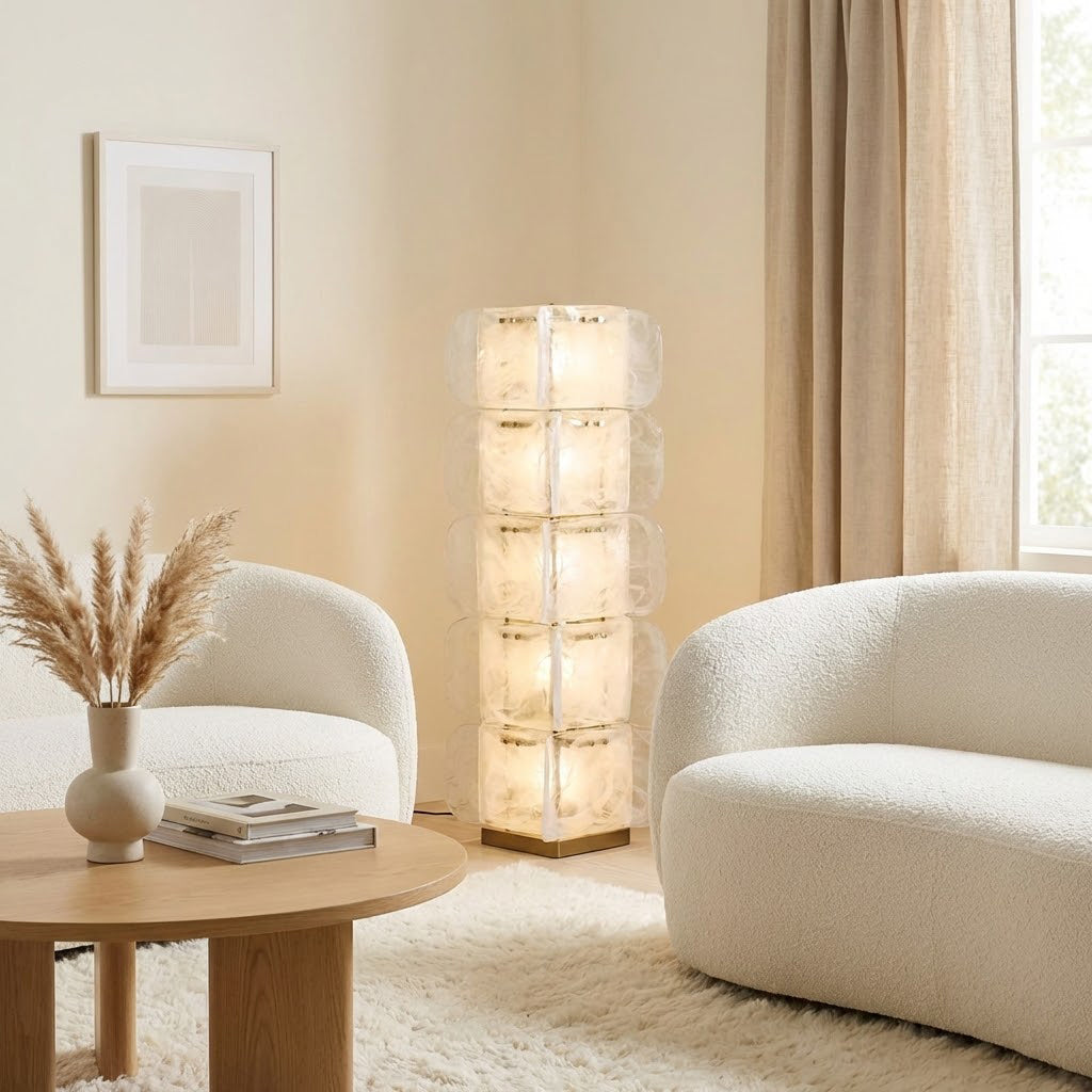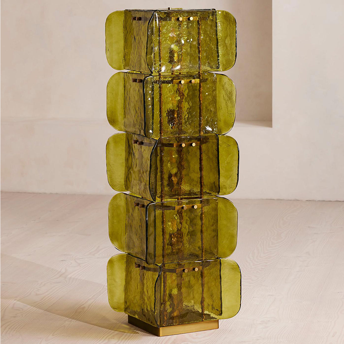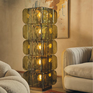 The Stacked Glass Floor Lamp features a vertical progression of layered glass sections that create a tall, elegant form with visual rhythm. Designed to stand beside sofas, in entryways, or within living areas, its stacked silhouette draws the eye upward and adds architectural interest without dominating the room’s overall design.